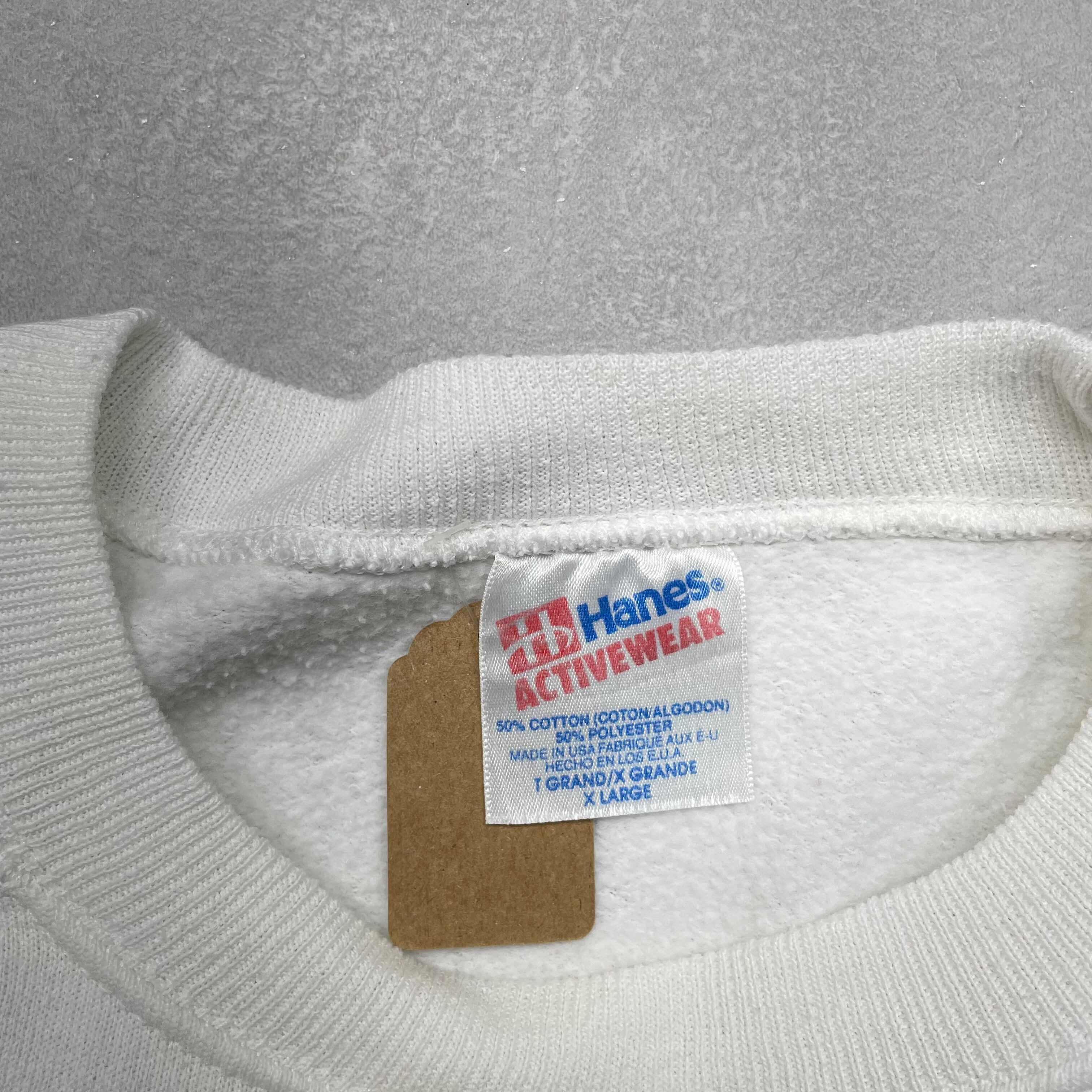 《XL》Hanes ヘインズ 袖プリント スウェット ラグランスリーブ ホワイト USA製 90年代 vintage no.6174