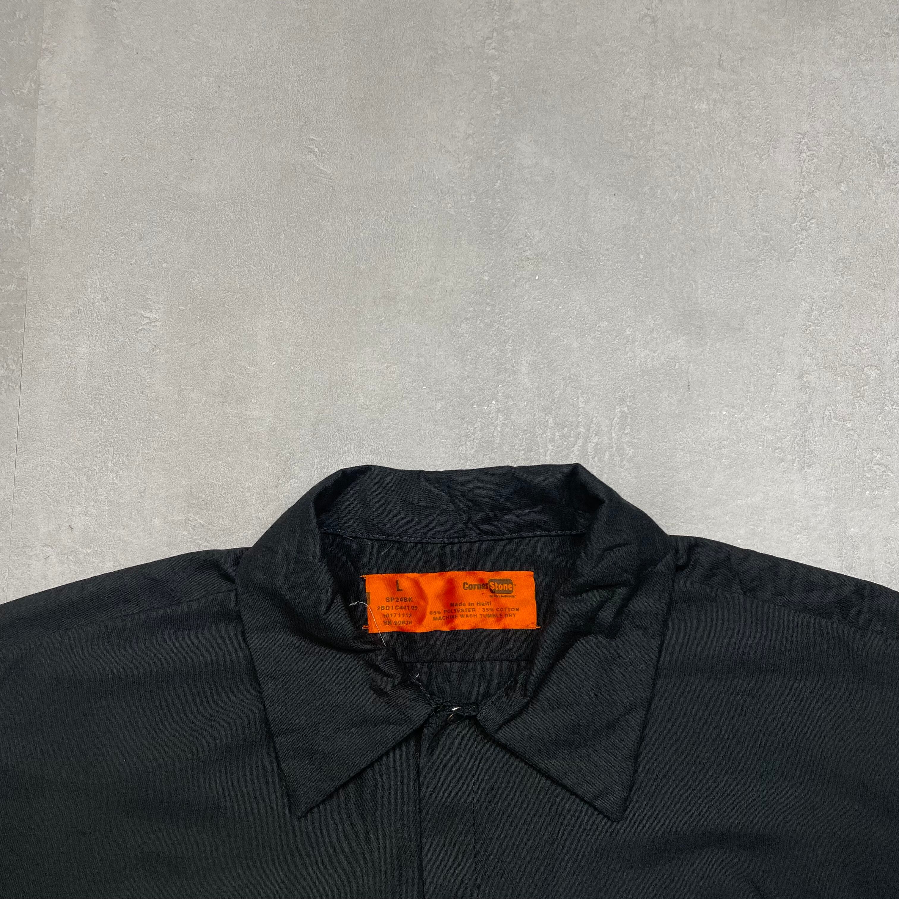 《L》Corner Stone ワークシャツ 半袖シャツ 企業ロゴ ワッペン ブラック no.6582