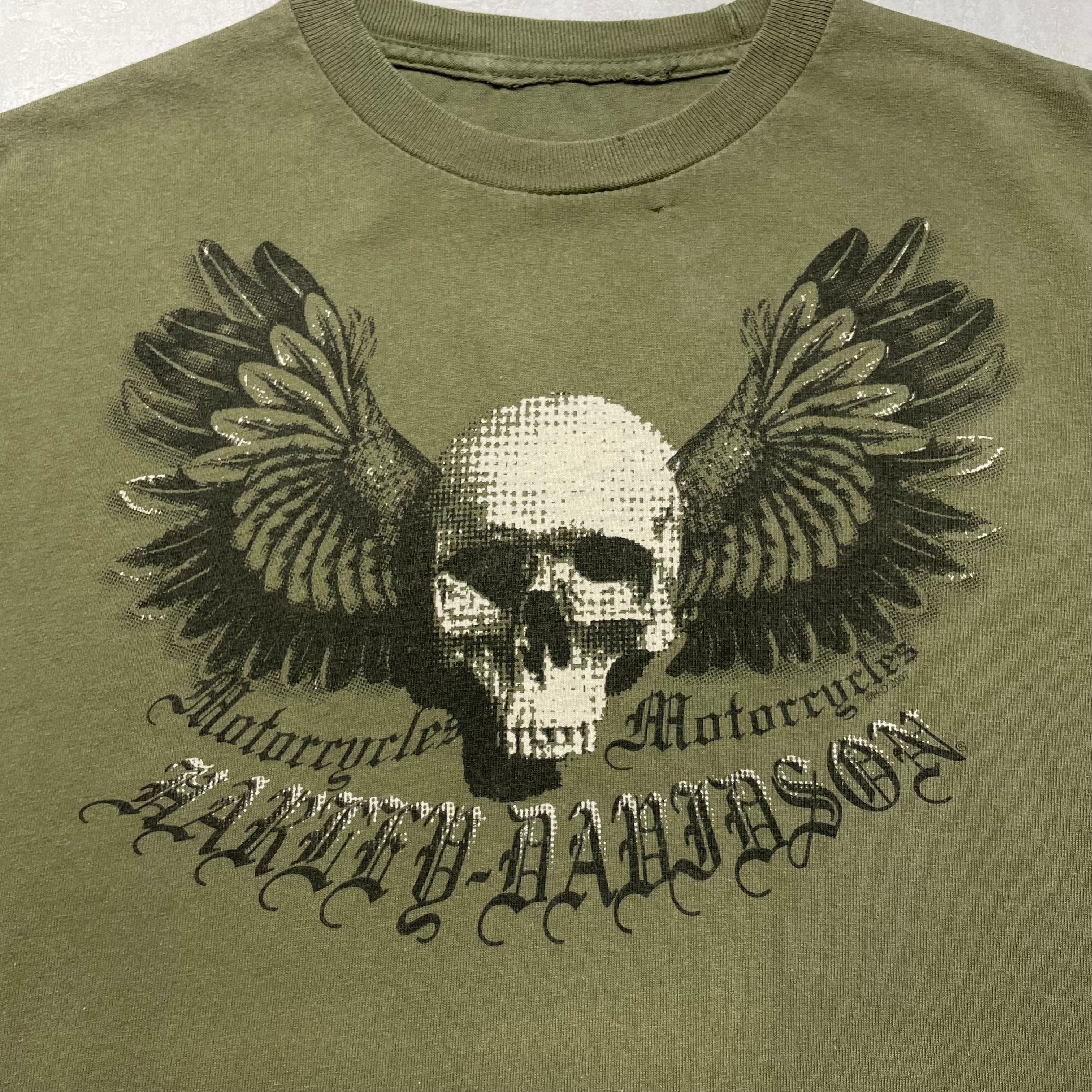 《M》 Harley-Davidson ハーレーダビッドソン Tシャツ 両面プリント スカル モスグリーン no.6619