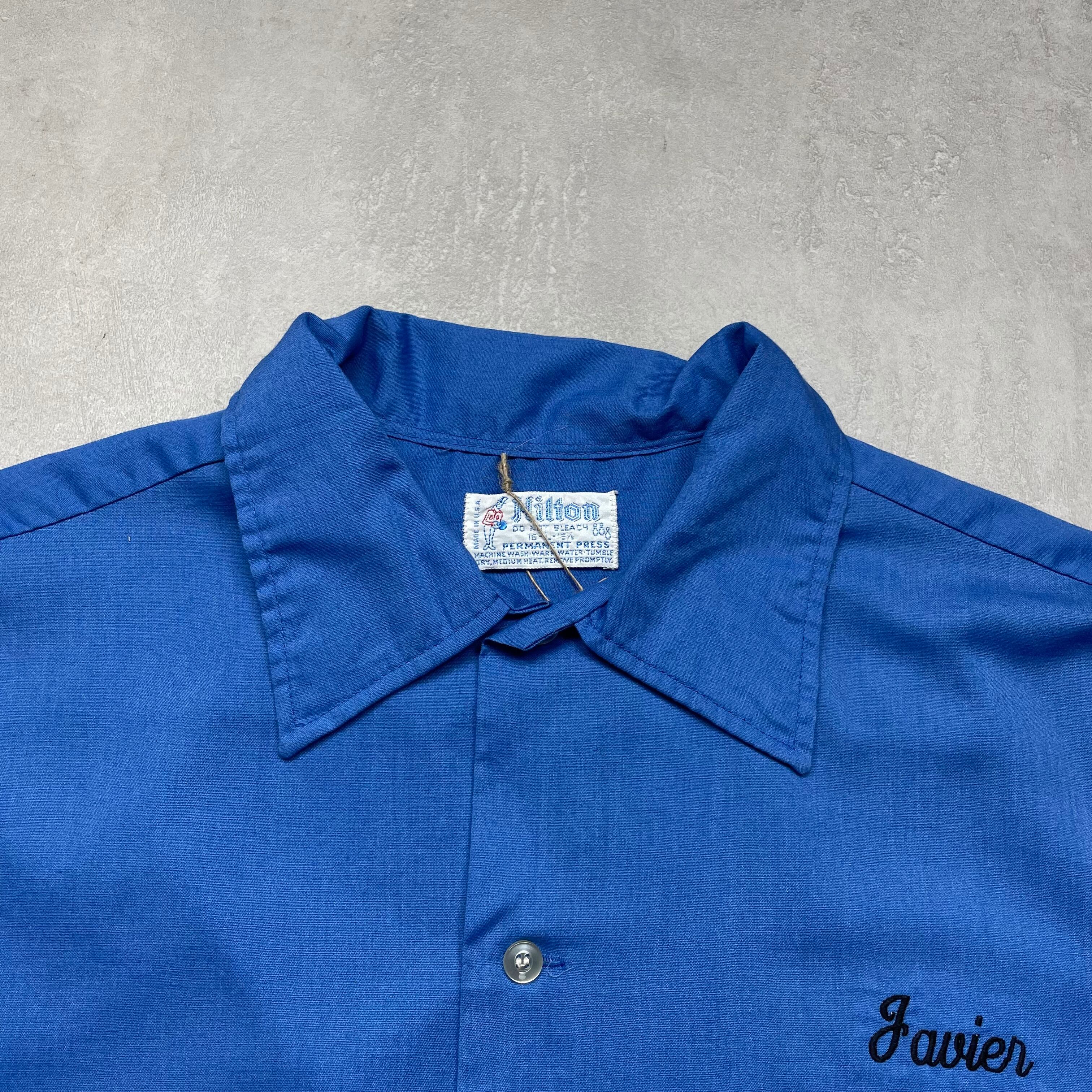 《L》 Hilton 半袖シャツ ワークシャツ 水色 ポケット 刺繍 バックプリント 企業ロゴ 石油バルブメーカー USA製 no.6639