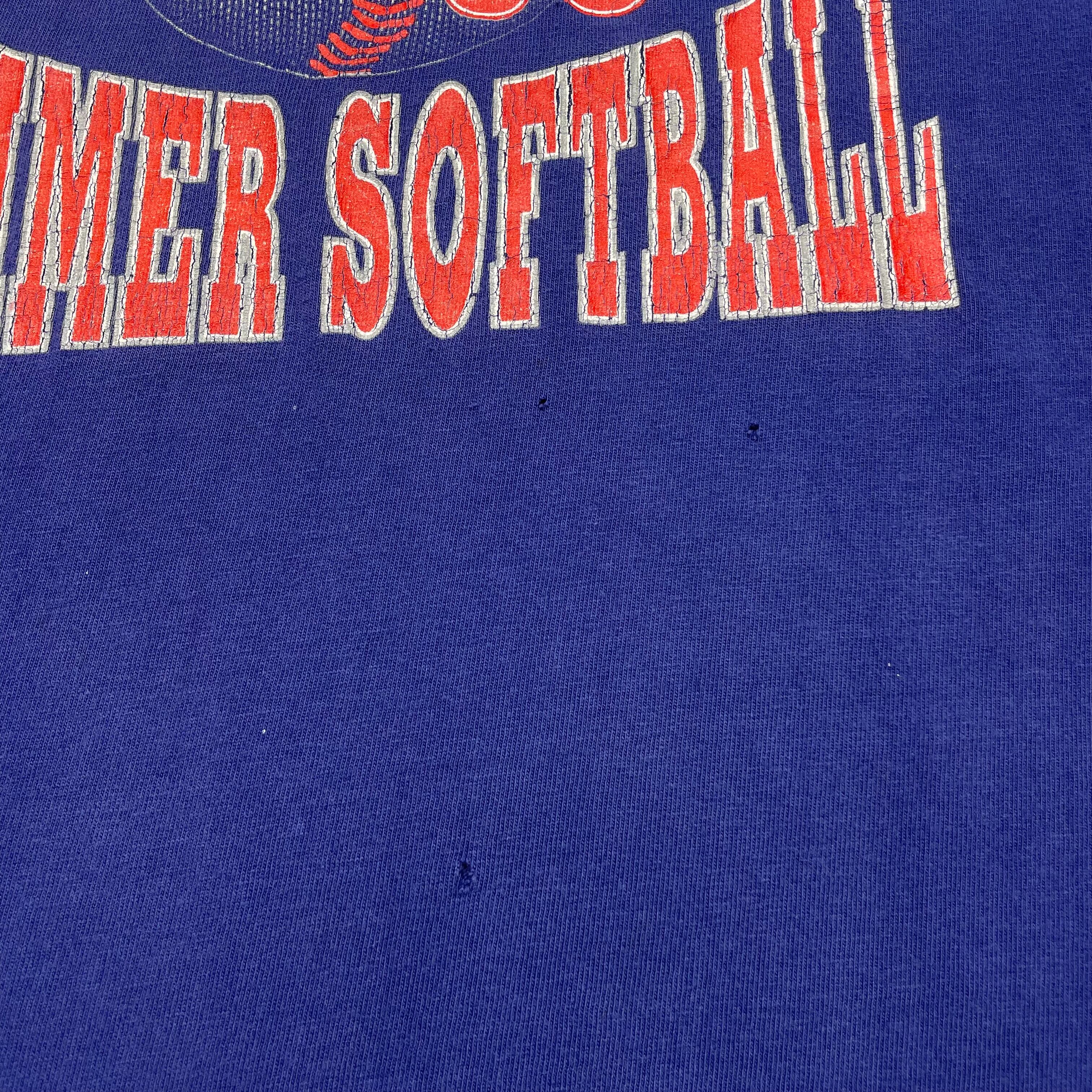 《XL》Hanes ヘインズ Tシャツ 両面プリント ソフトボール パープル シングルステッチ USA製 90年代 vintage no.7256