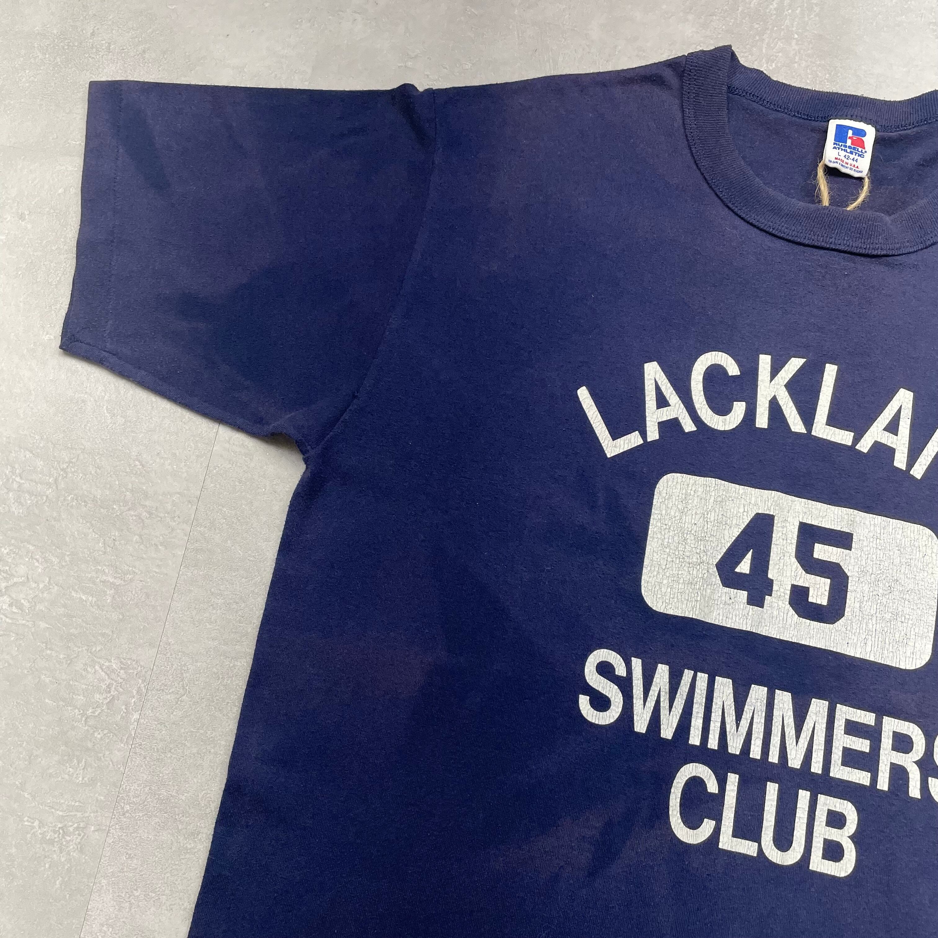 《L》russell athletic ラッセルアスレチック Tシャツ フロントプリント シングルステッチ ネイビー USA製 90年代 vintage no.7530