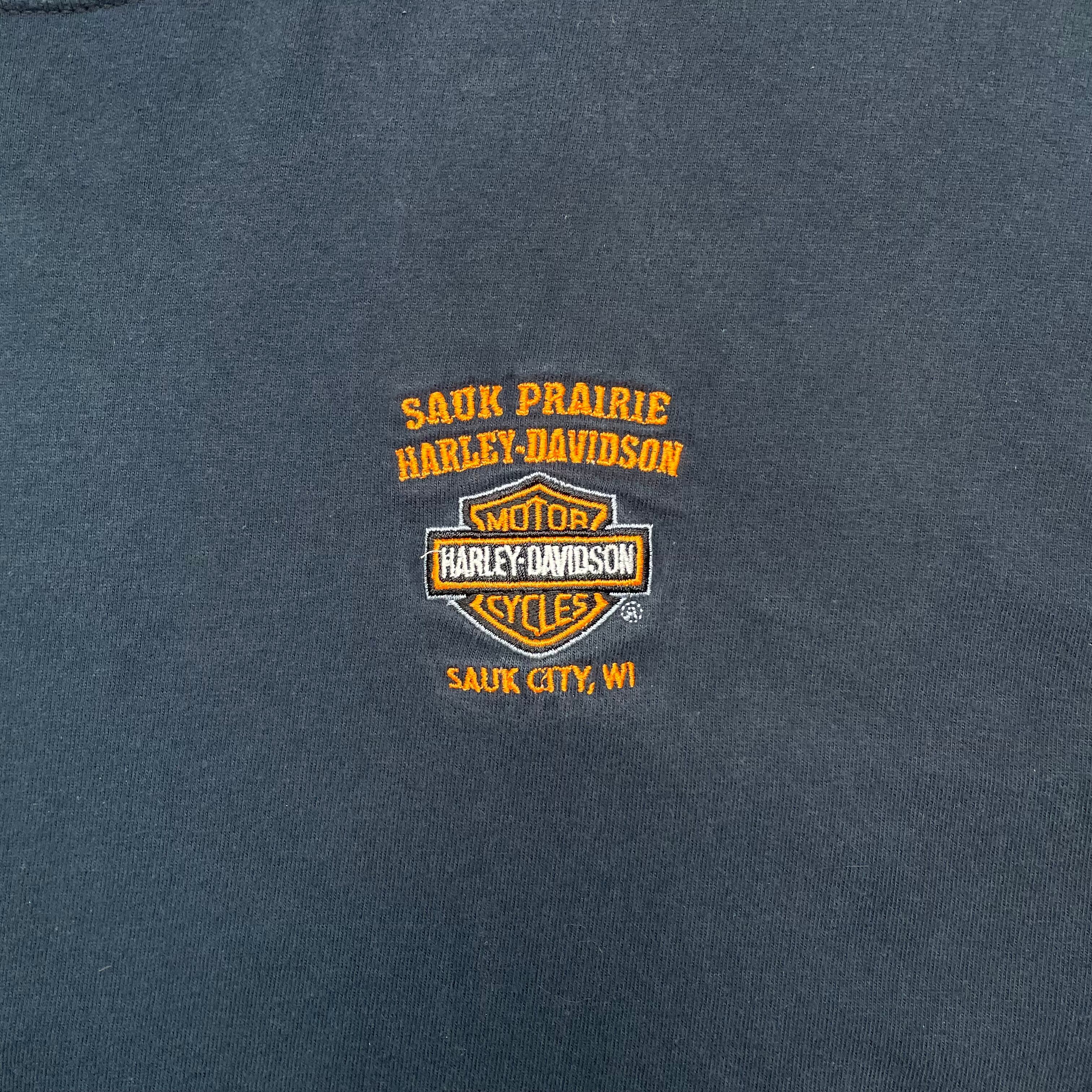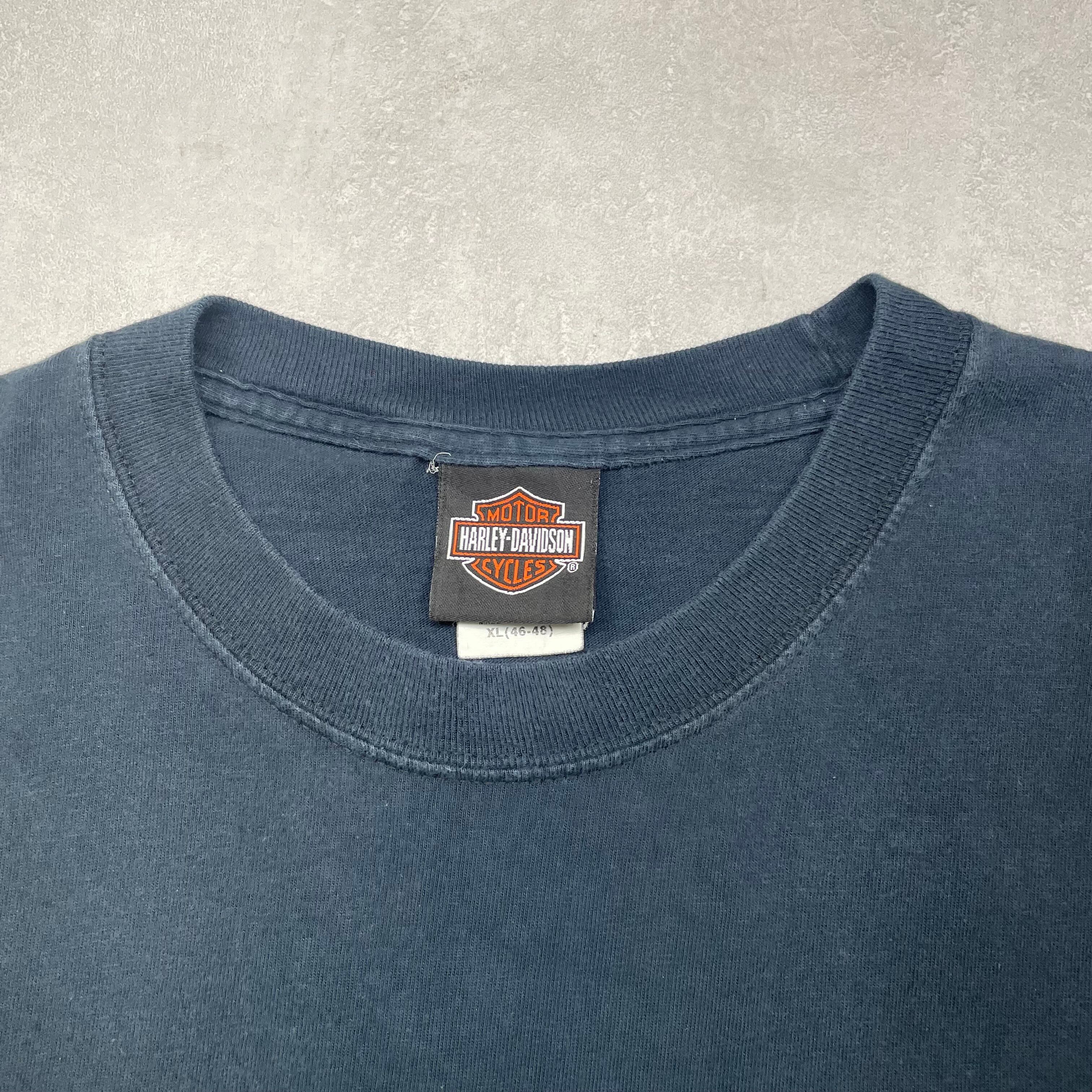 《XL》Harley-Davidson ハーレーダビッドソン Tシャツ ワンポイント ロゴ刺繍 ネイビー no.7560