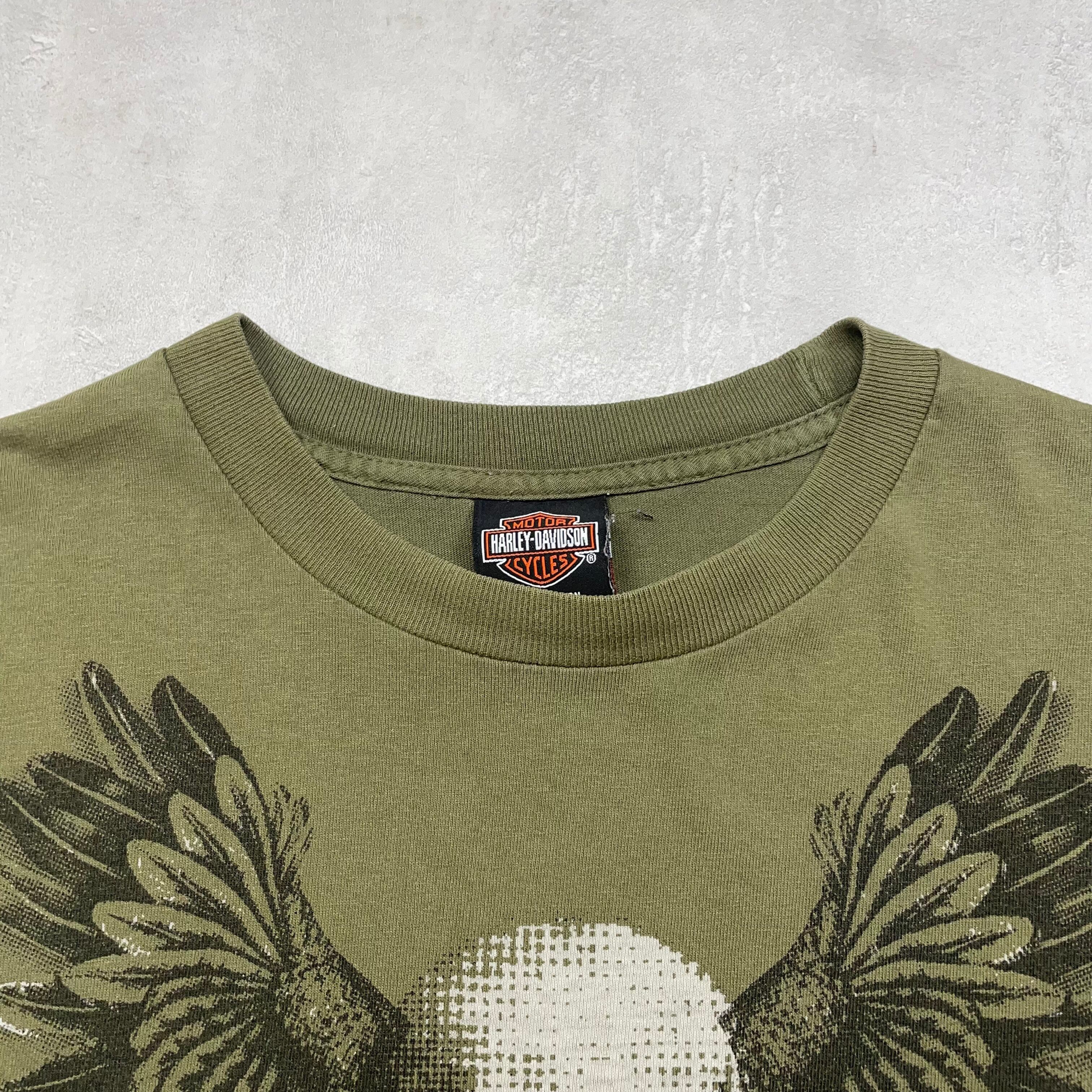 《L》 Harley-Davidson ハーレーダビッドソン Tシャツ 両面プリント スカル モスグリーン no.7588