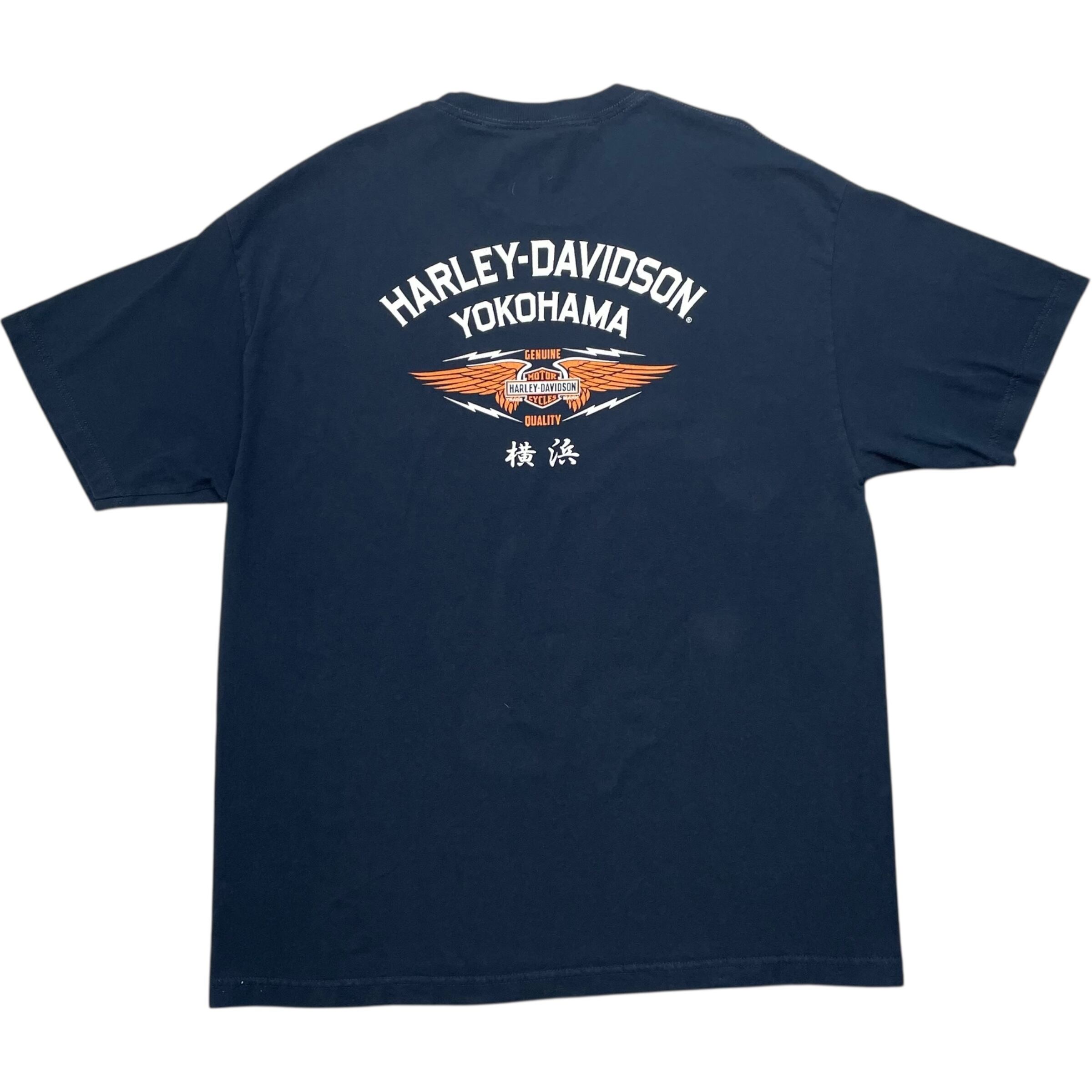 《XL》 Harley-Davidson ハーレーダビッドソン Tシャツ 横浜 両面プリント ネイビー no.7674
