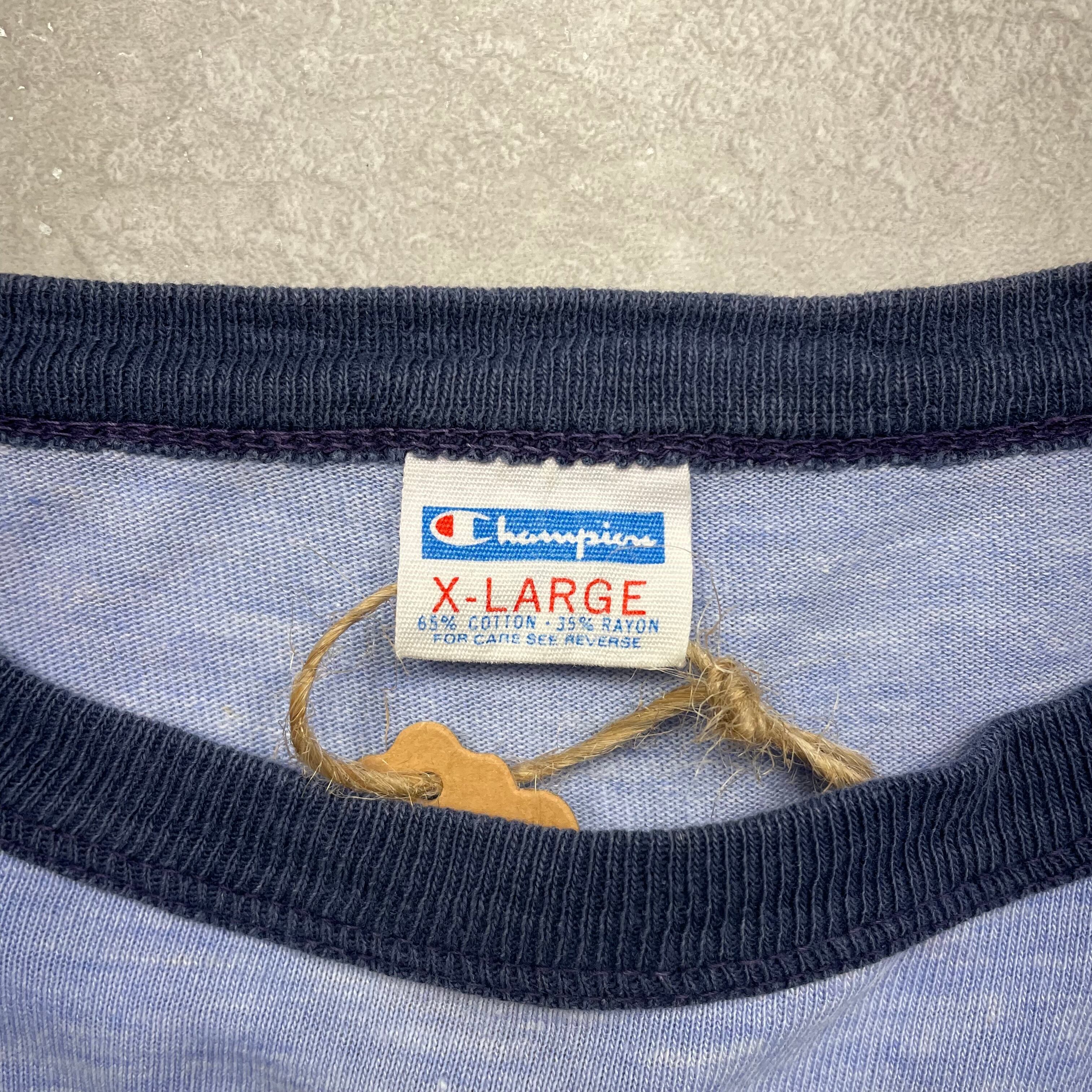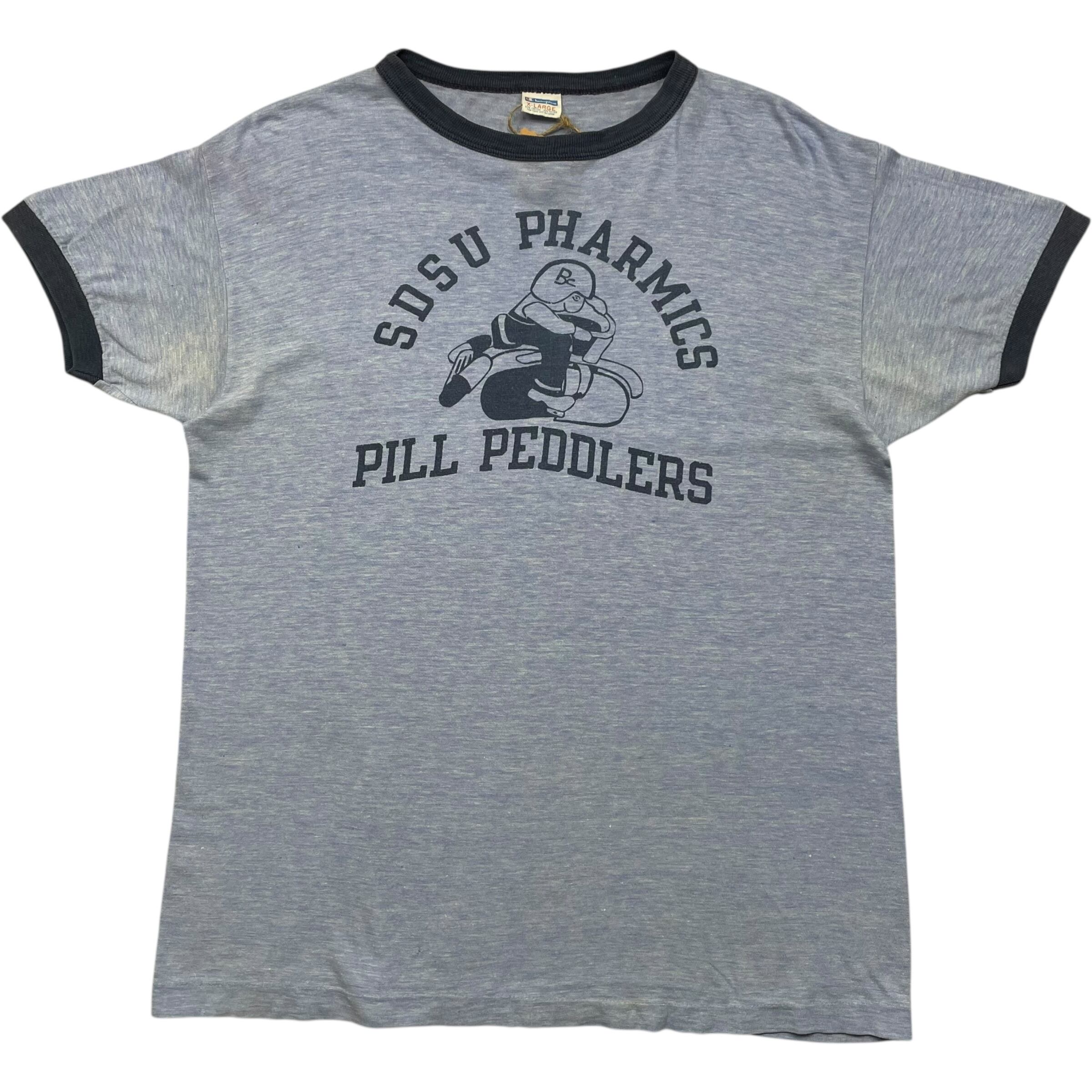 《XL》champion チャンピオン リンガーTシャツ SDSU PHARMICS PILL PEDDLERS 霜降り ライトブルー USA製 70年代 vintage no.7847