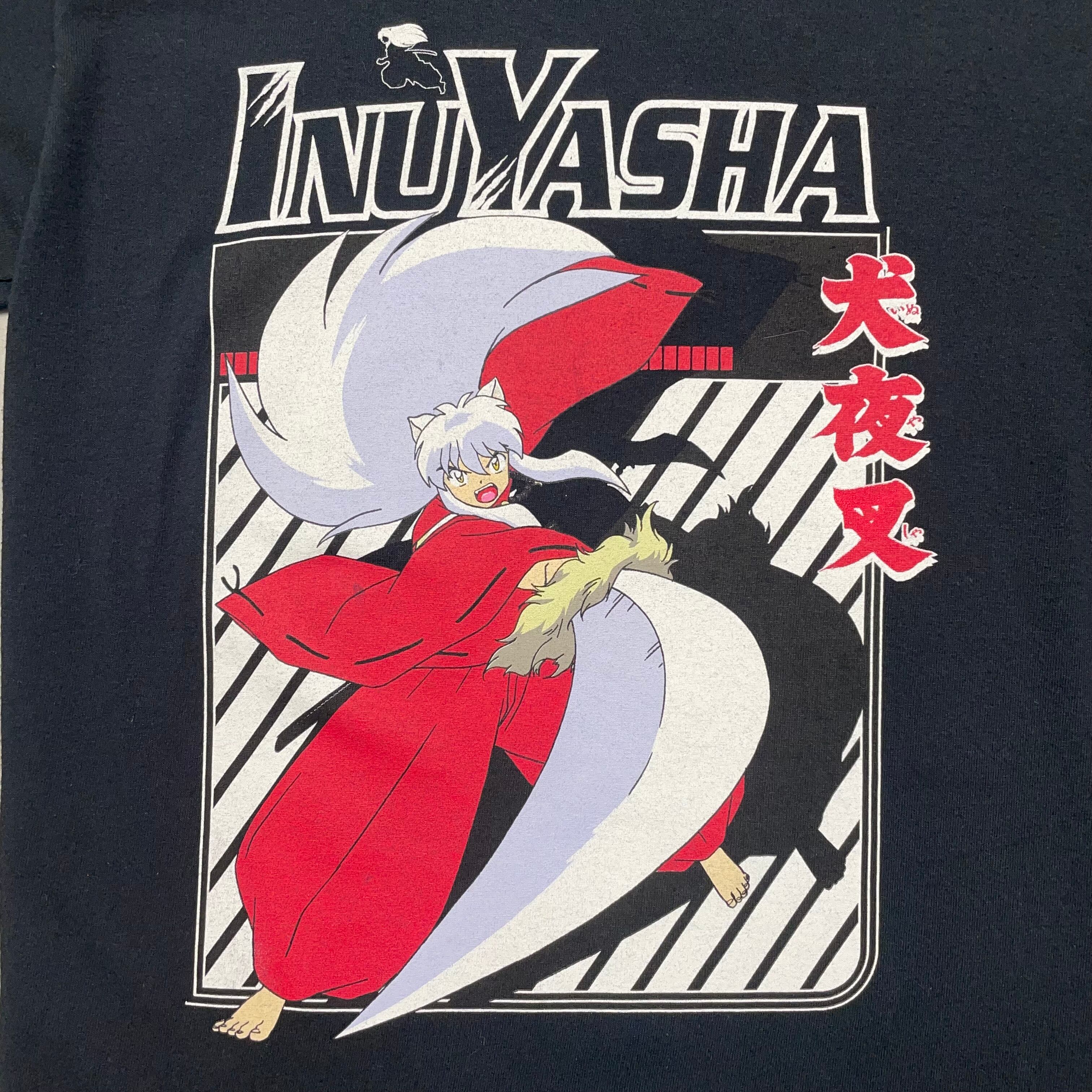 《S》 犬夜叉 アニメTシャツ プリント ブラック no.7865