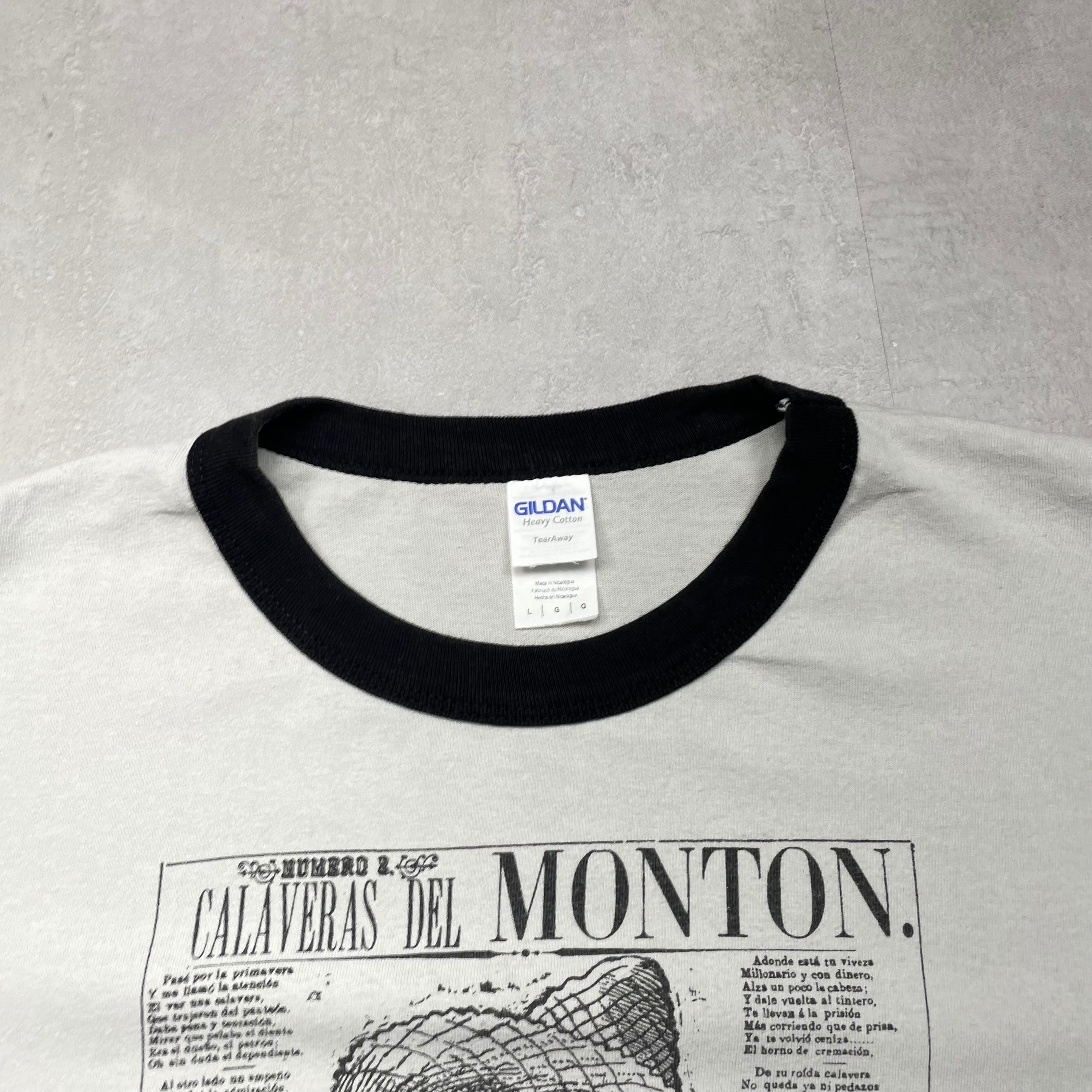 《L》GILDAN ギルダン リンガーTシャツ ホセ・グアダルーペ・ポサダ アートワーク カラベラス・デル・モントン フロントプリント no.8394