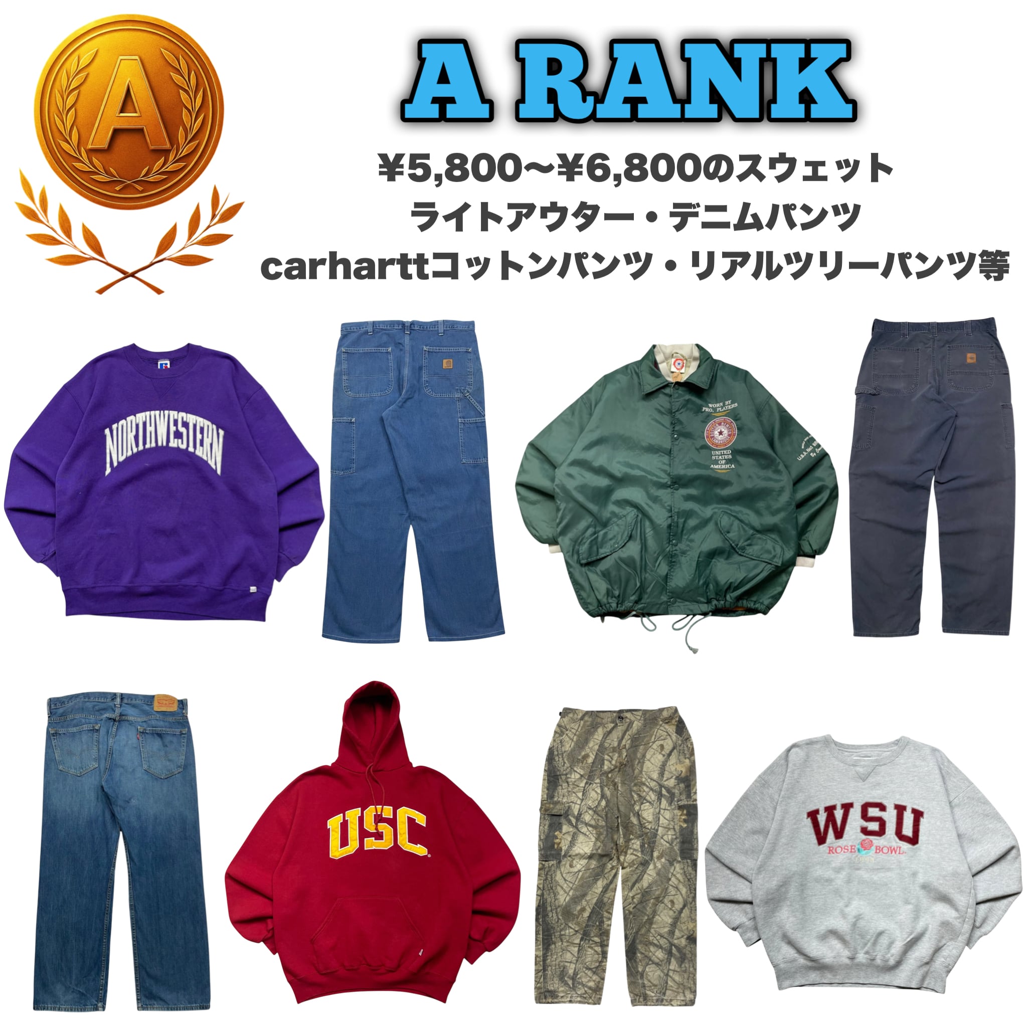 →ライトアウター・ ¥5,800〜¥6,800のスウェット・リアルツリー・デニムパンツ・carharttコットンパンツなど1点