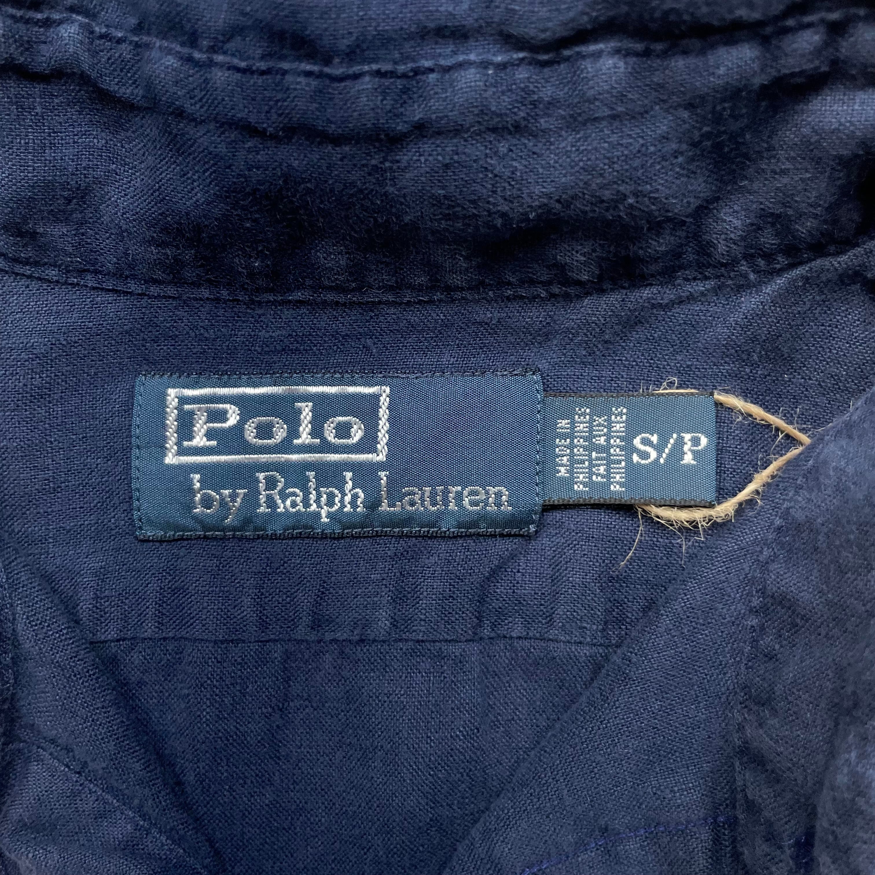 《S》Polo by Ralph Lauren ポロバイラルフローレン 長袖シャツ 胸ポケット 無地 ネイビー no.8837