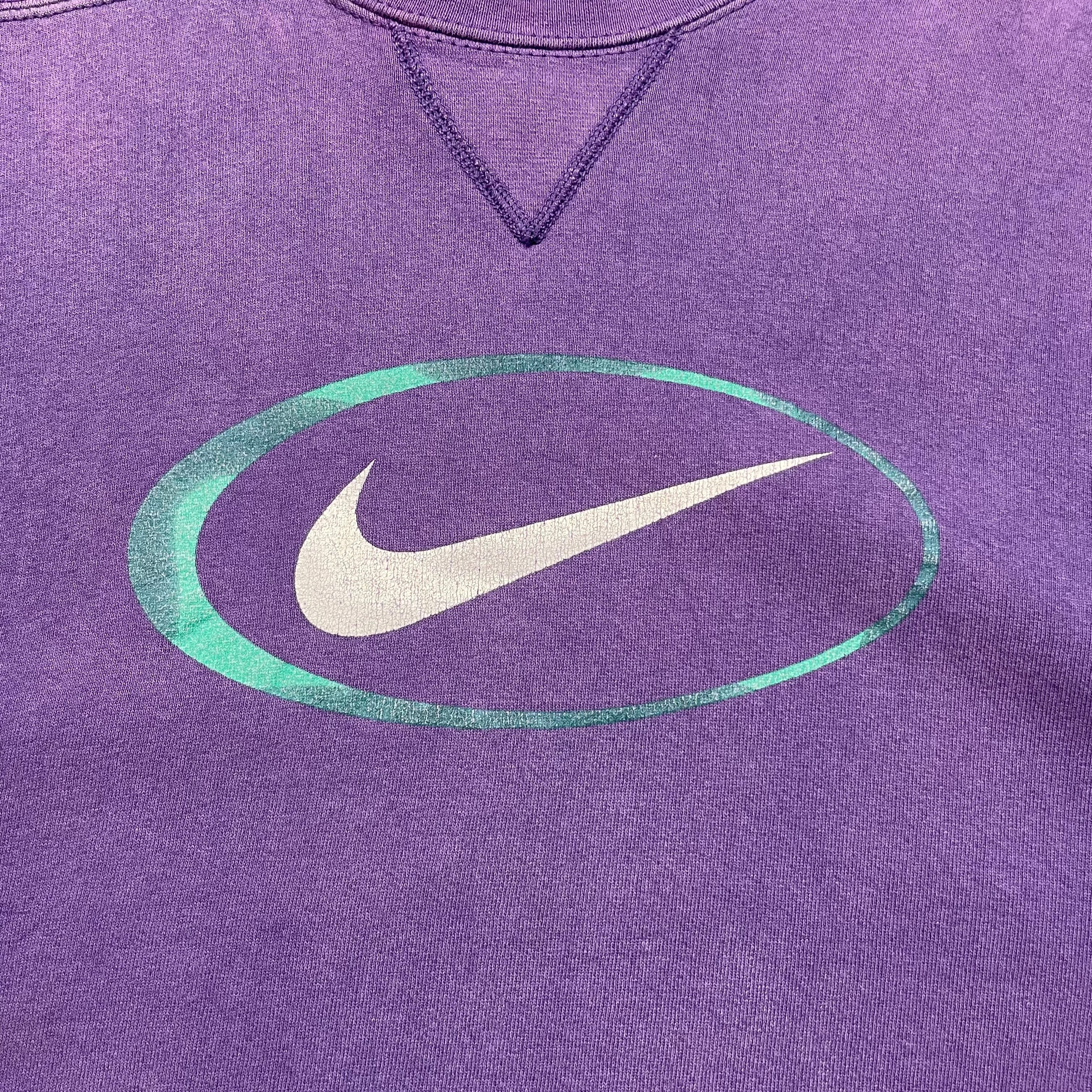 《L》 NIKE ナイキ スウェット スウッシュ プリントロゴ フェード パープル USA製 90年代 vintage no.8878