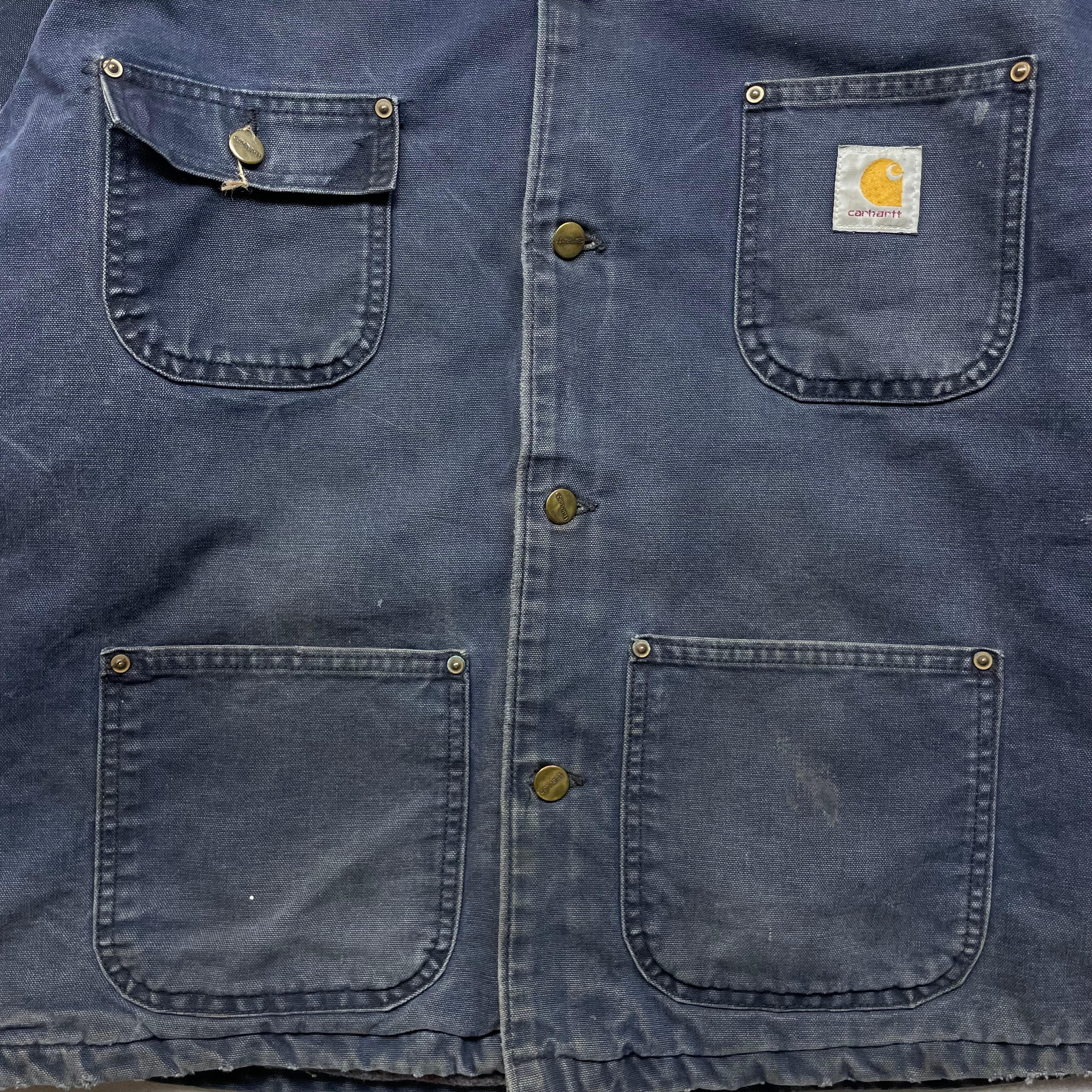 《L》 Carhartt カーハート ダックカバーオール ワークジャケット フェード ダークネイビー USA製 90年代 vintage no.8886