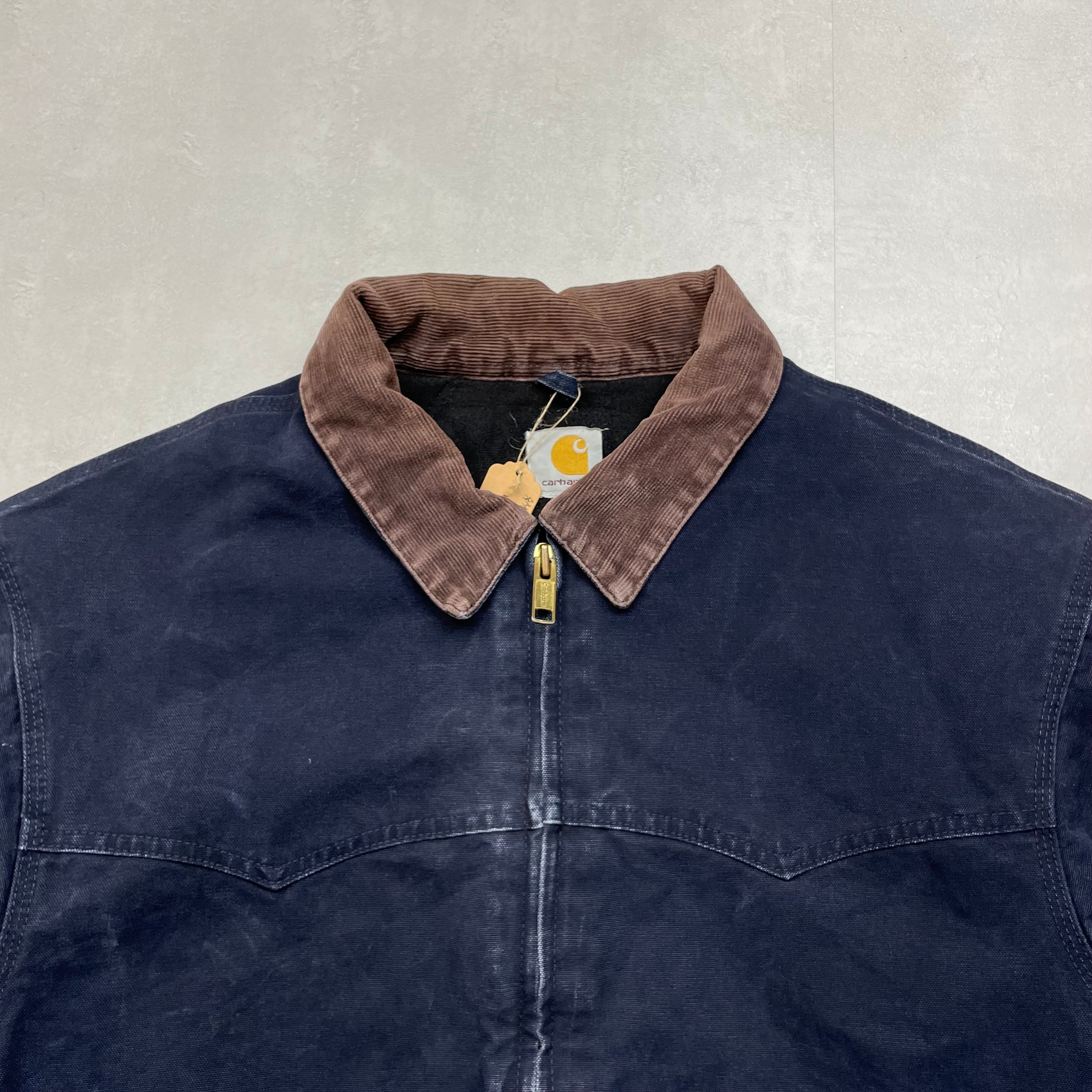 《XL》Carhartt カーハート ダックジャケット サンタフェジャケット 襟コーデュロイ 裏地キルティング 希少カラー ミッドナイトブルー no.8917
