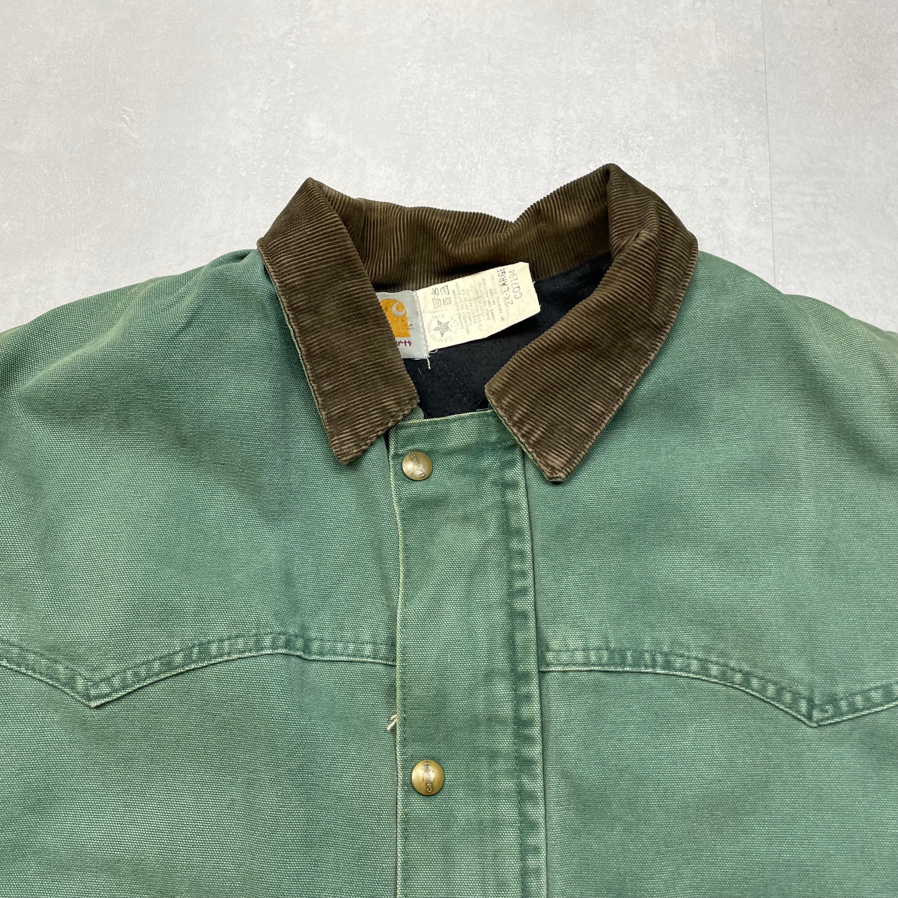 《XXL》 Carhartt カーハート ダックコード カバーオール ワークジャケット グリーン USA製 90年代 vintage no.8924