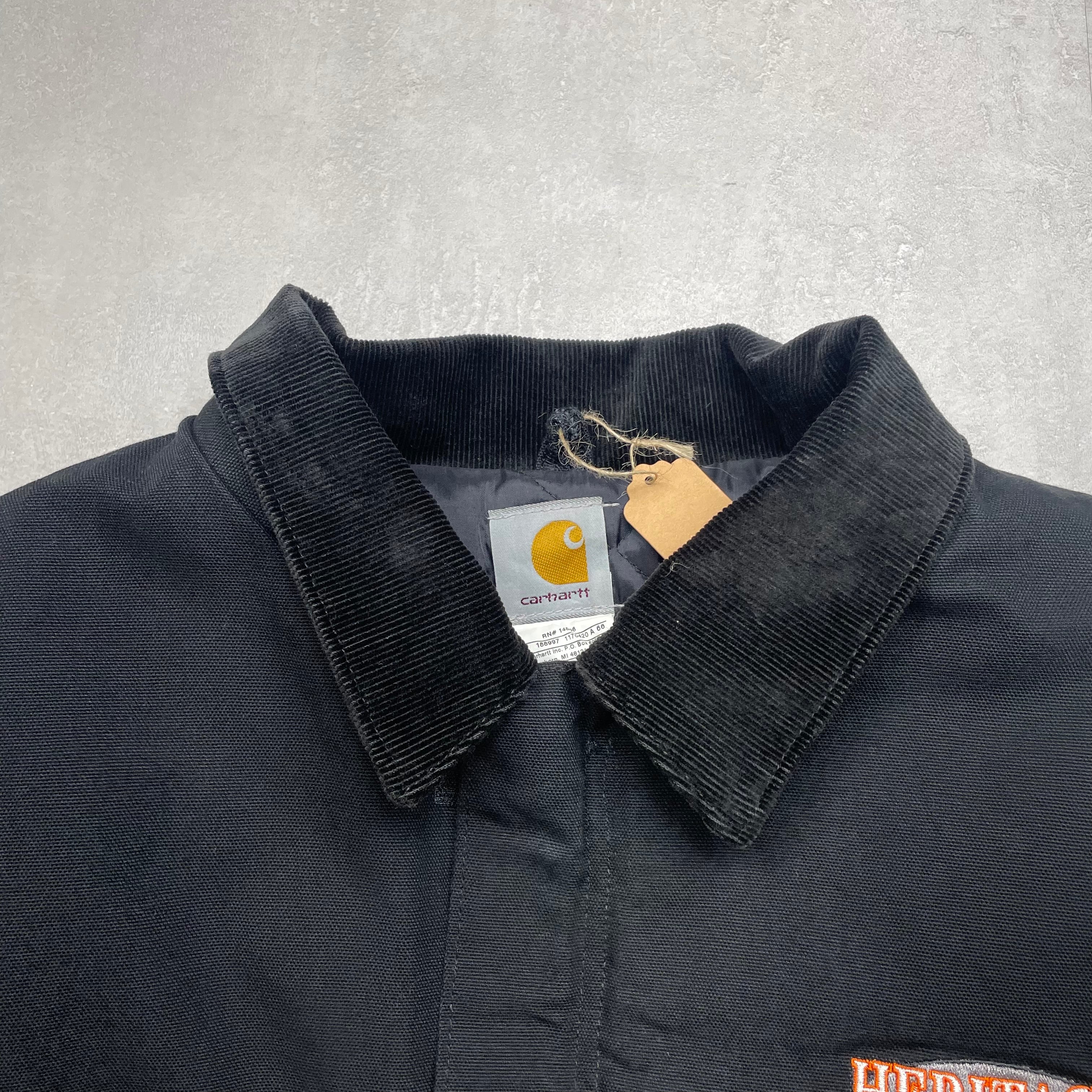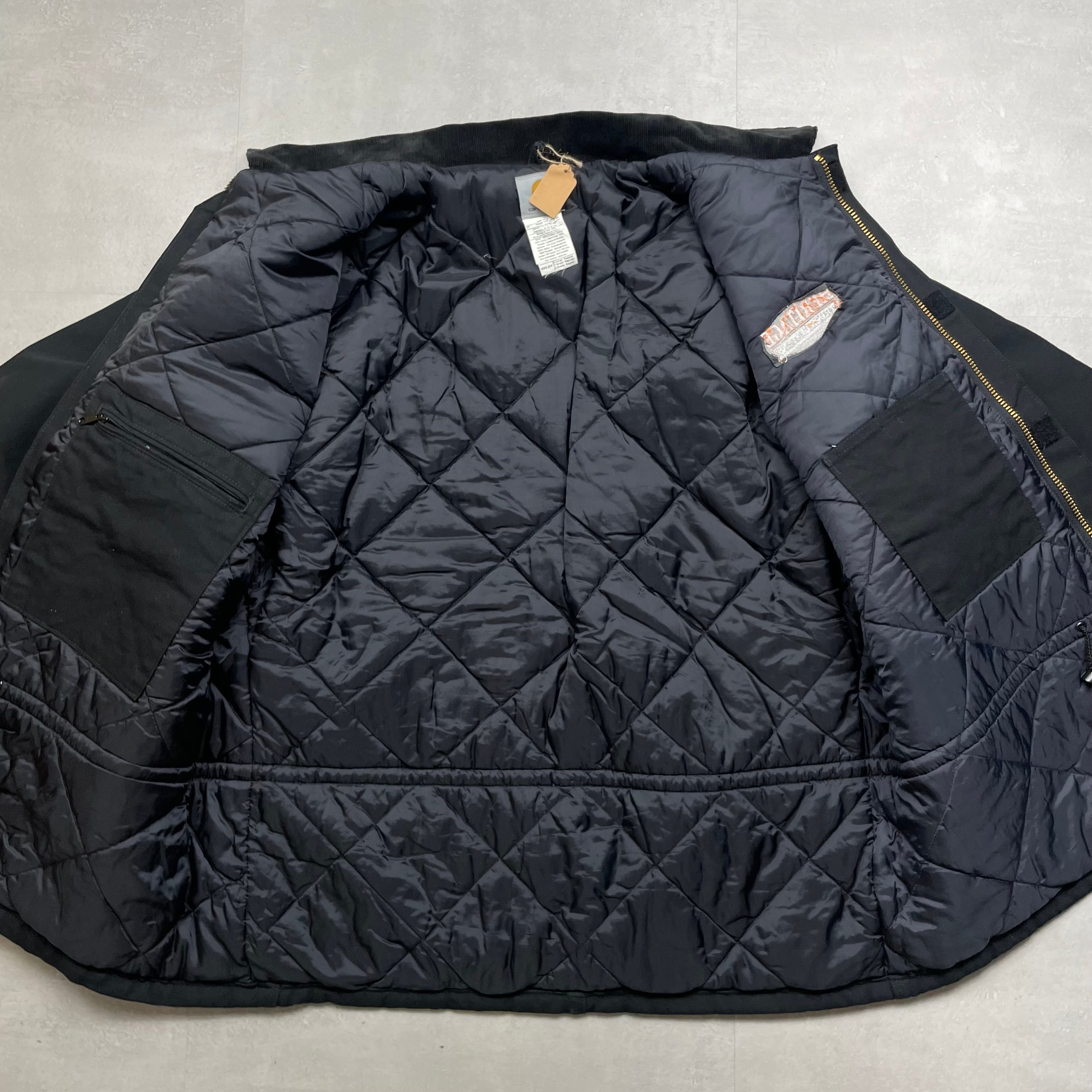 《XL》Carhartt カーハート ダックジャケット トラディショナルジャケット 襟コーデュロイ 企業ロゴ 刺繍 裏地キルティング ブラック no.8764