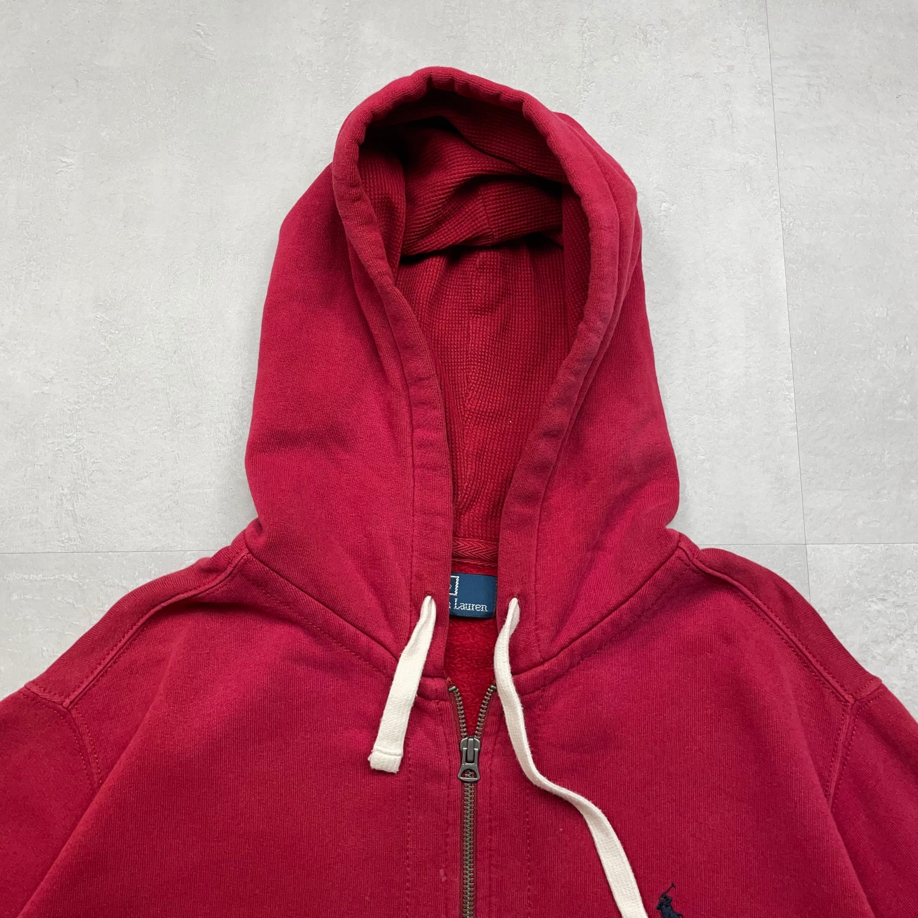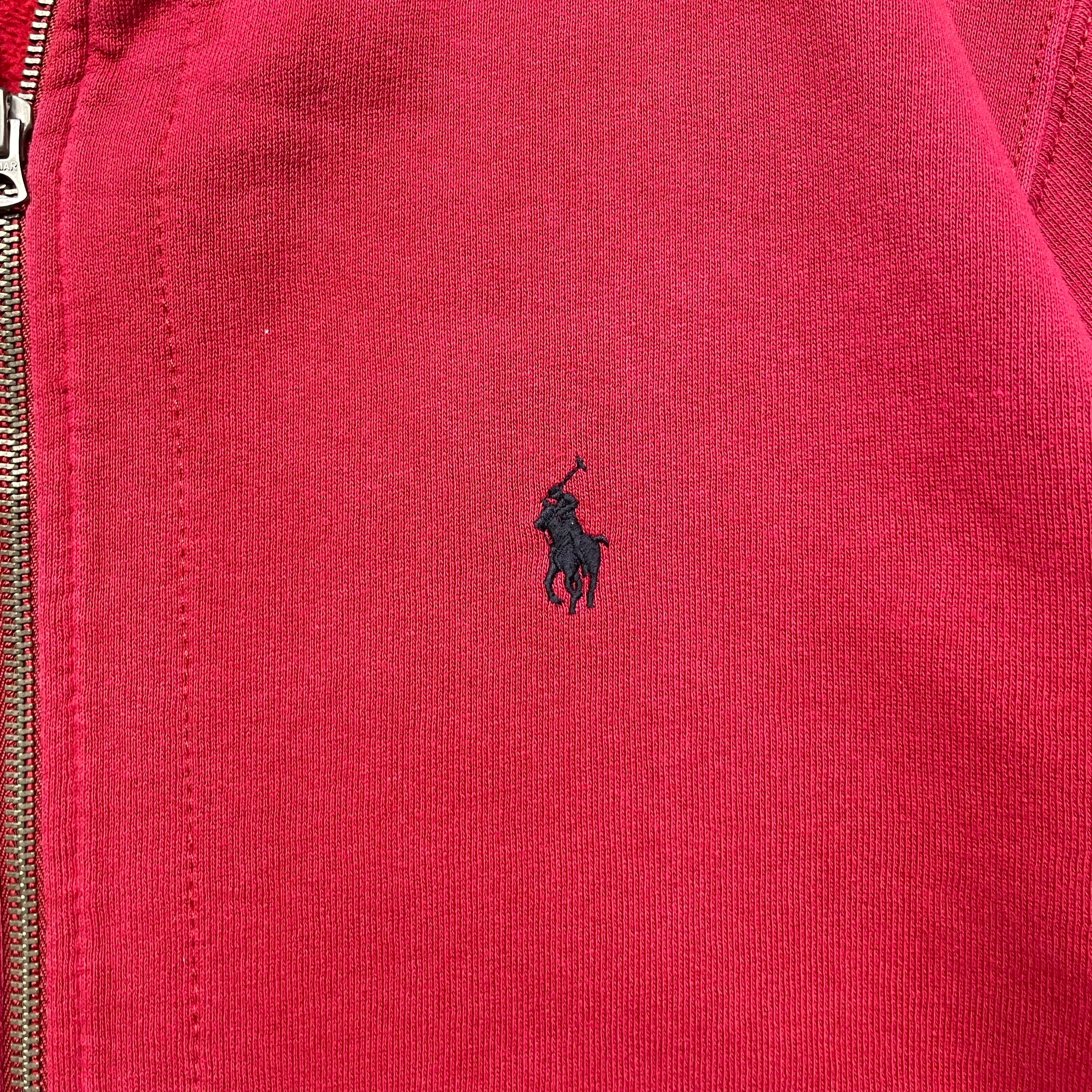 《L》 Polo by Ralph Lauren ポロバイラルフローレン ジップパーカー ポニー ワンポイント レッド 90年代 vintage no.9007