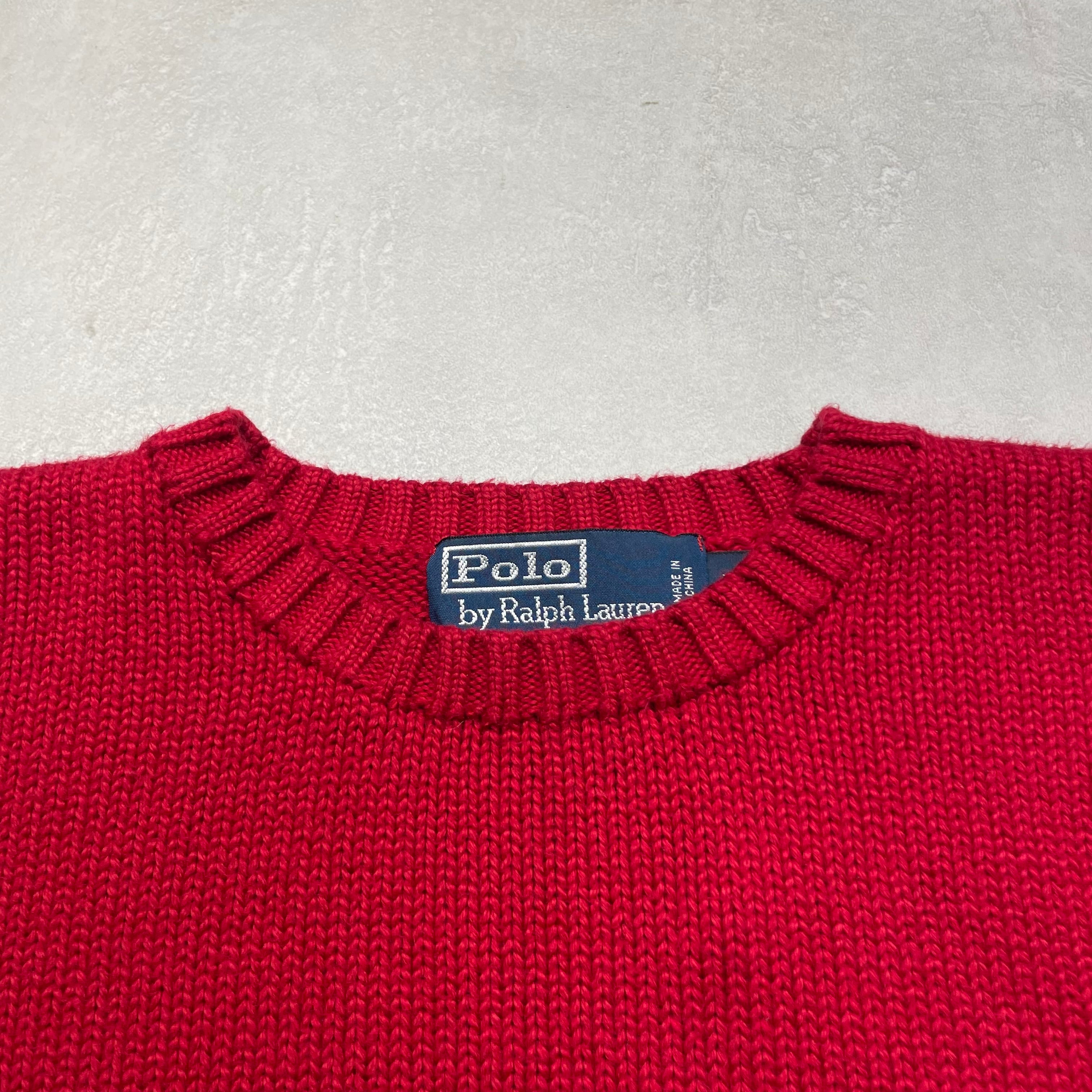 《L》 Polo by Ralph Lauren ポロバイラルフローレン ニット ポニー ワンポイント レッド 90年代〜 no.9087