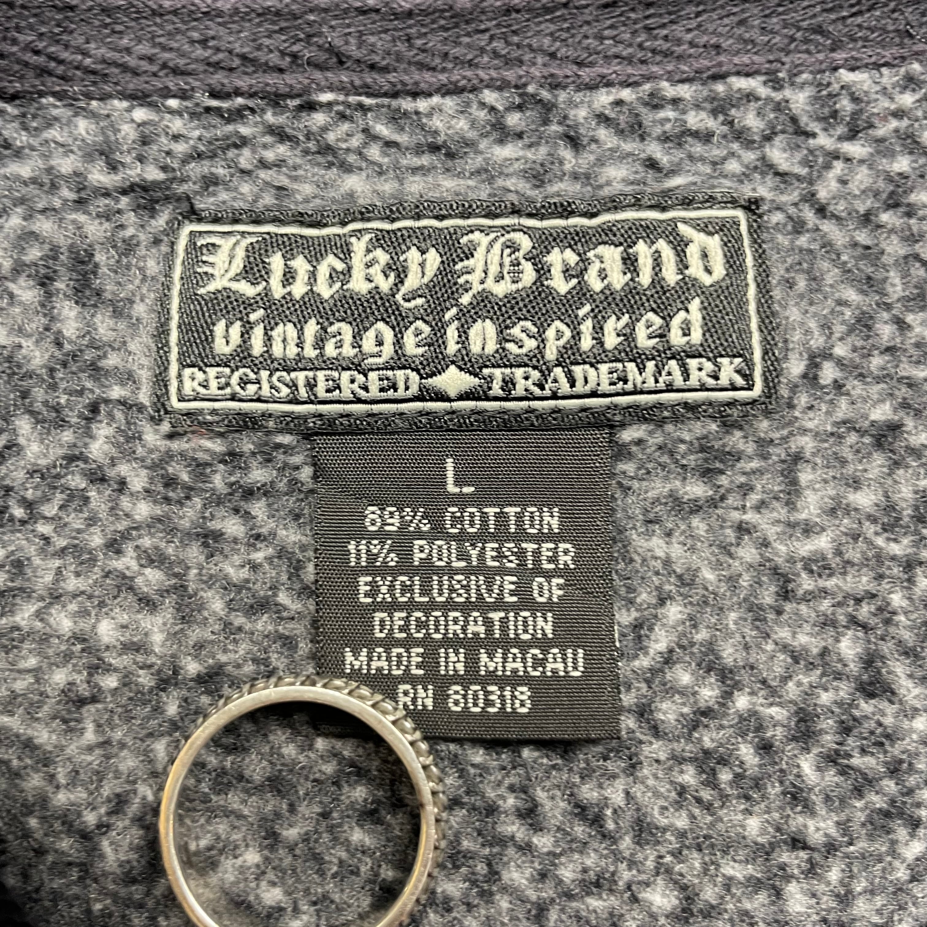 《L》 Lucky Brand ジップパーカー スウェット 刺繍デザイン ブラック no.9441