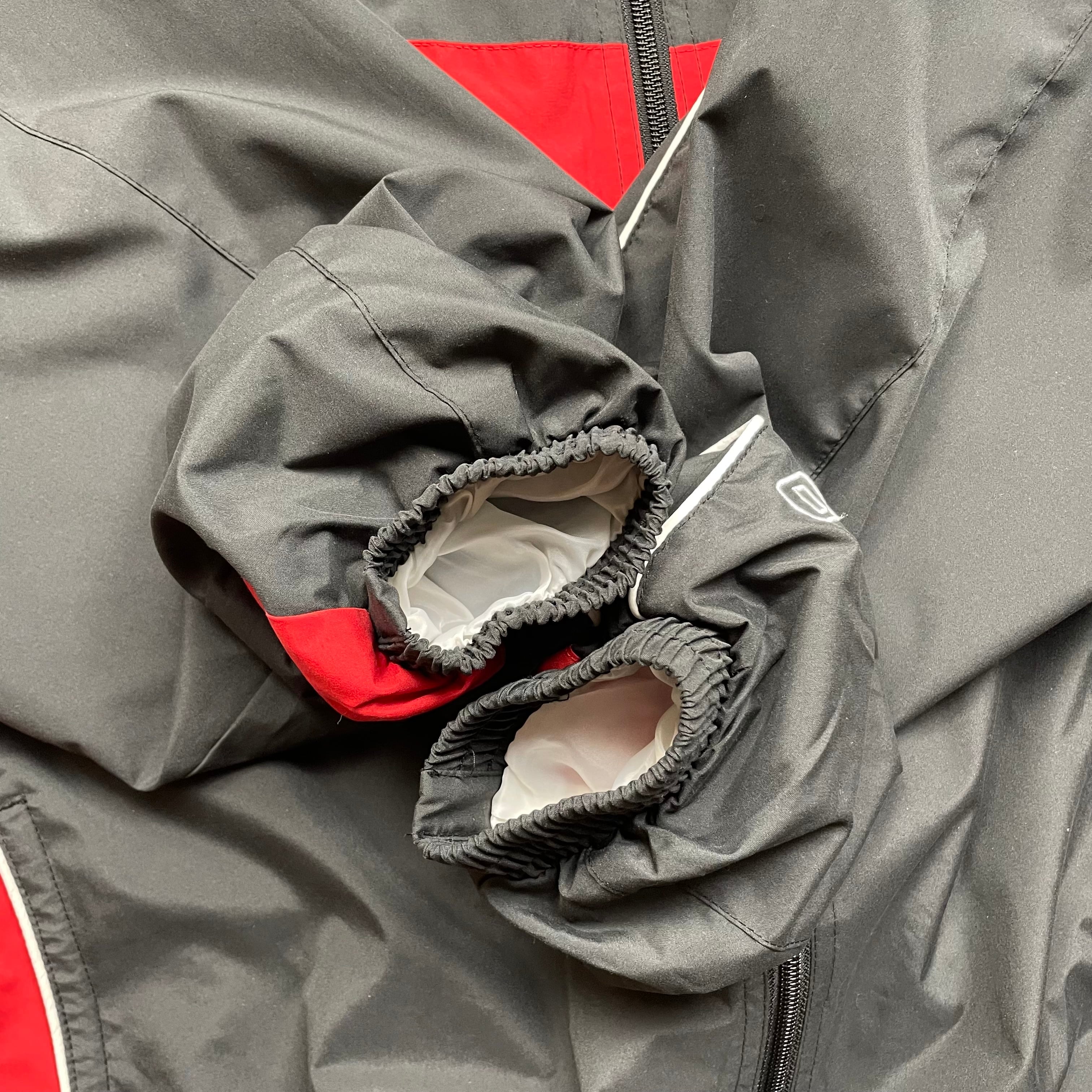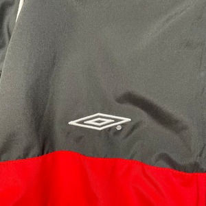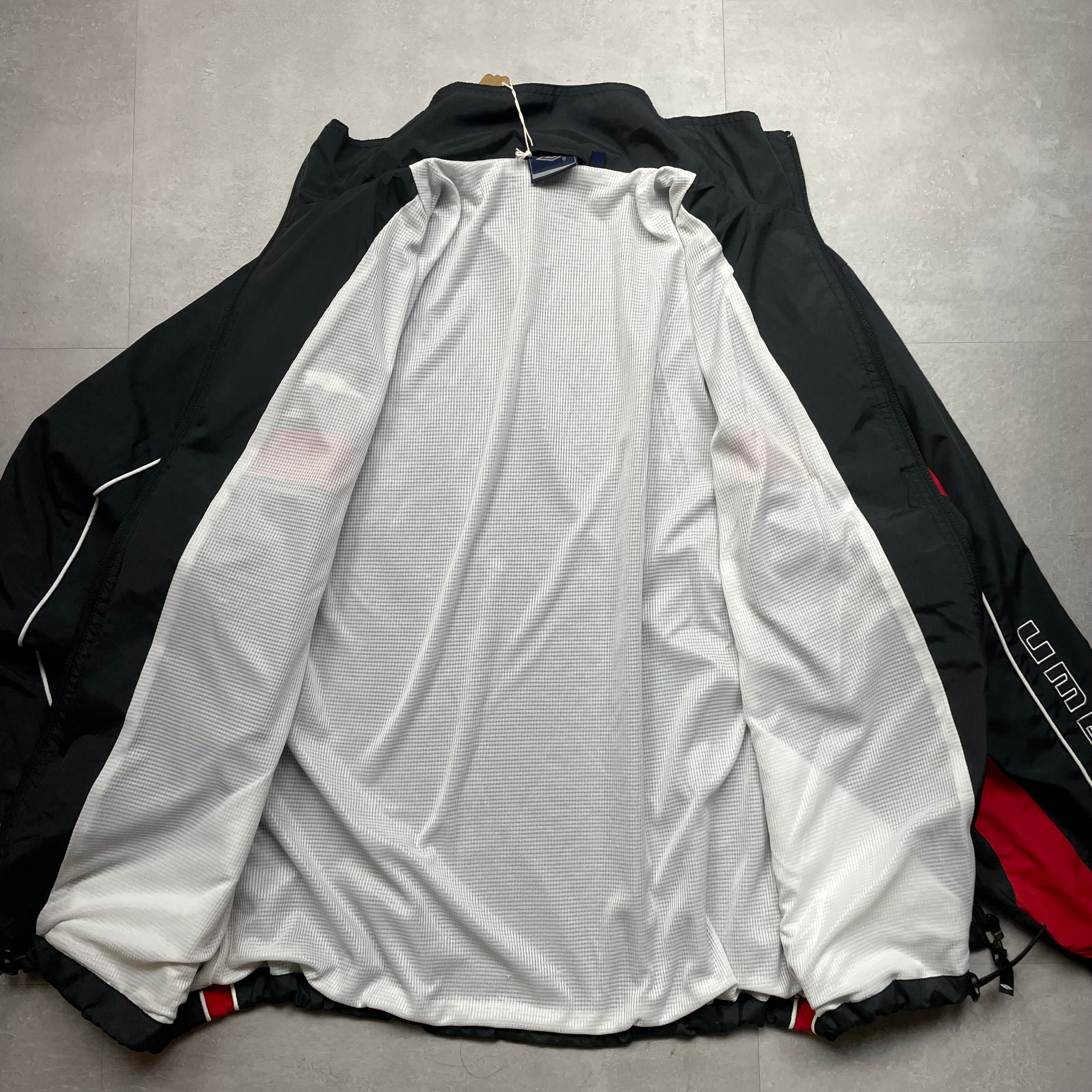 《M》UMBRO ナイロンジャケット ブラック&レッド 袖リブ ドローコード no.6458