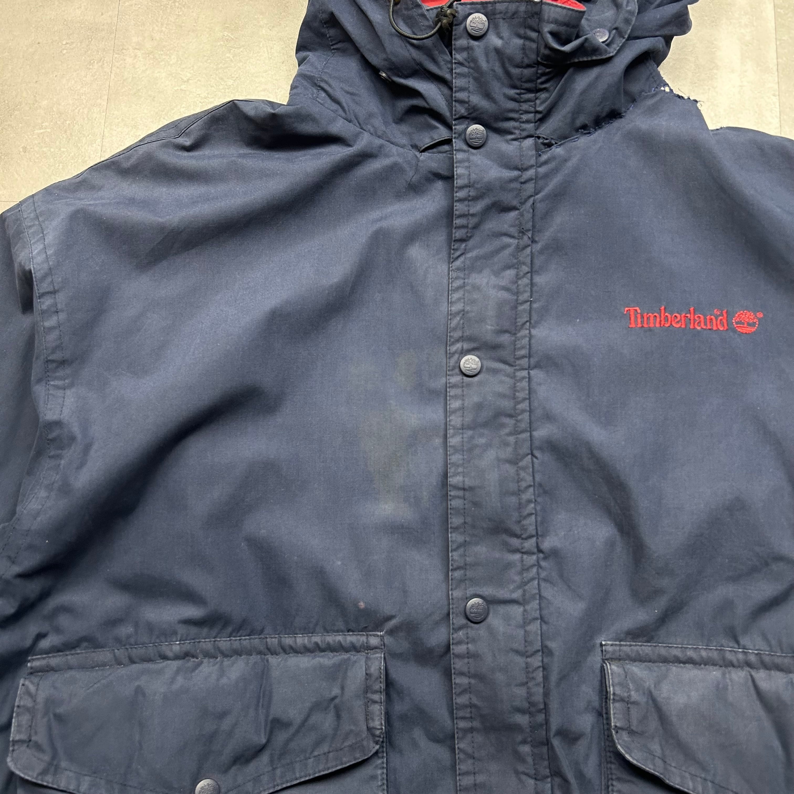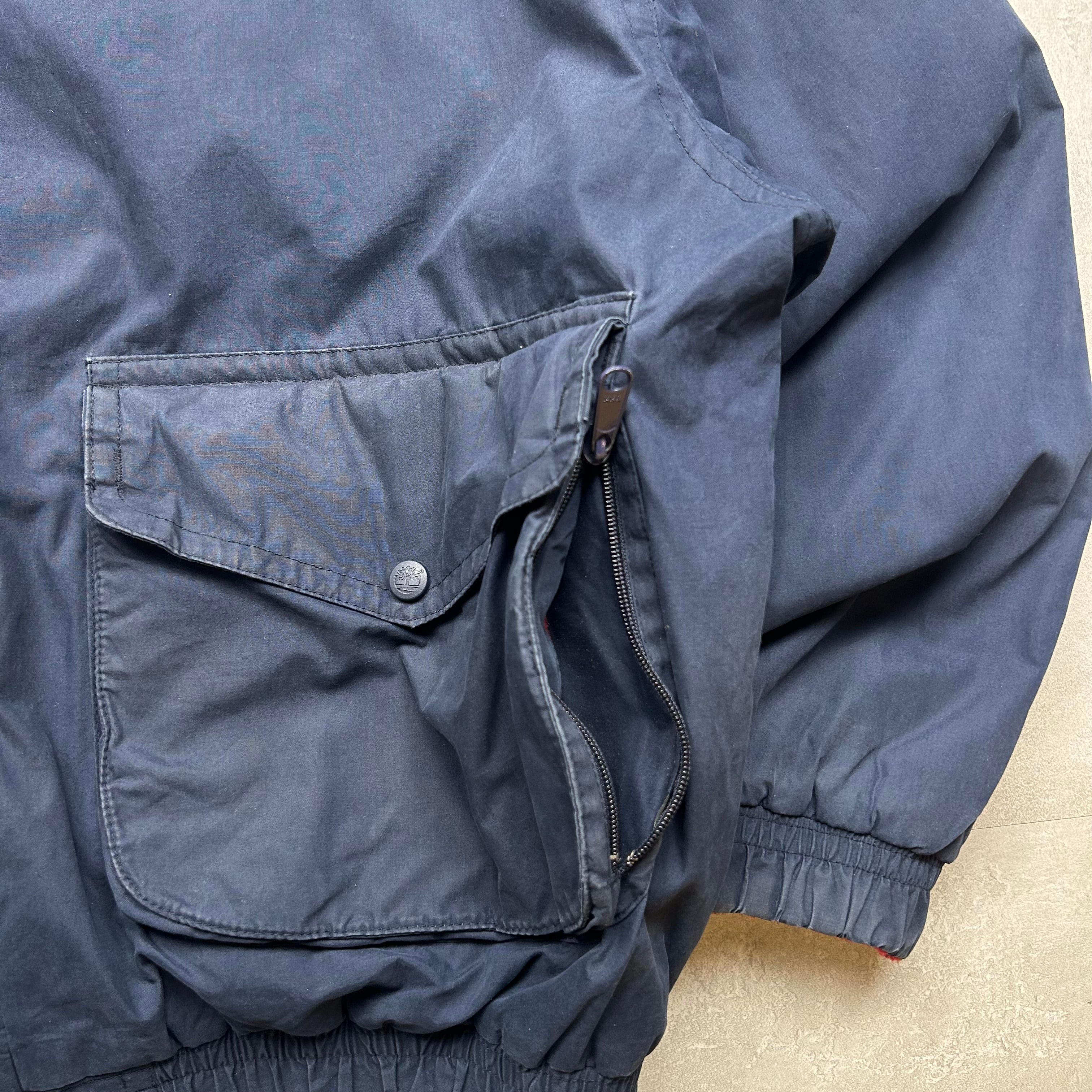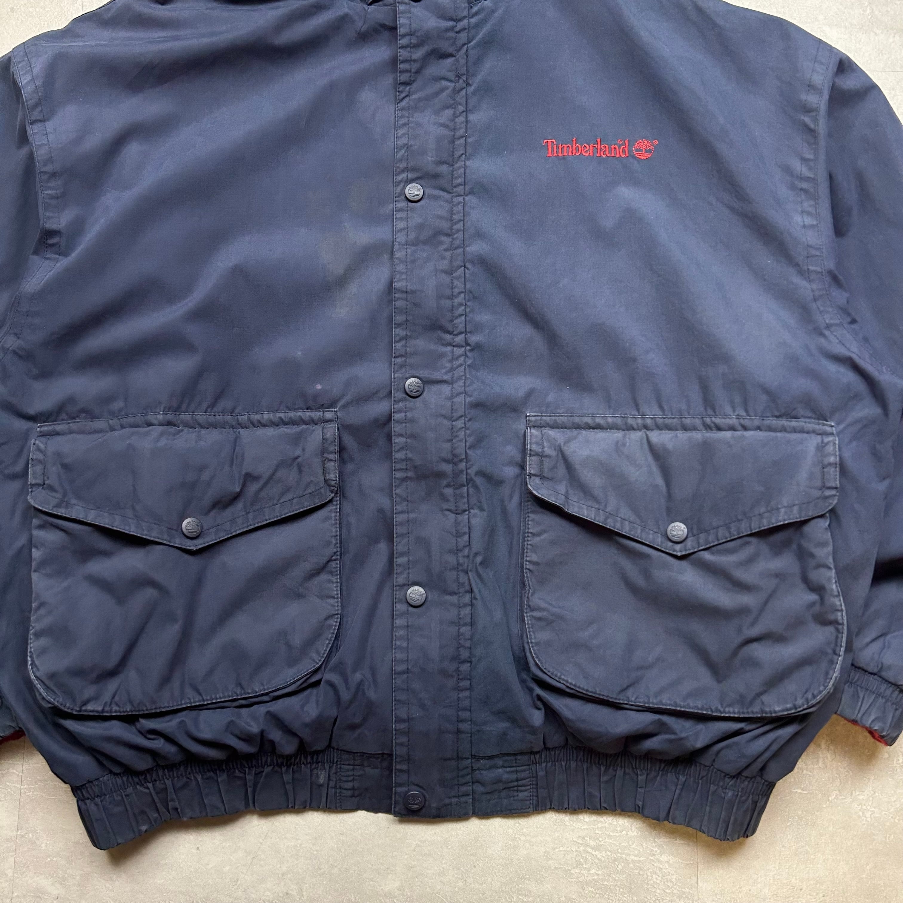 《L》Timberland ティンバーランド ロクヨンクロス ナイロンジャケット 裏地フリース ネイビー 90年代 vintage no.6470