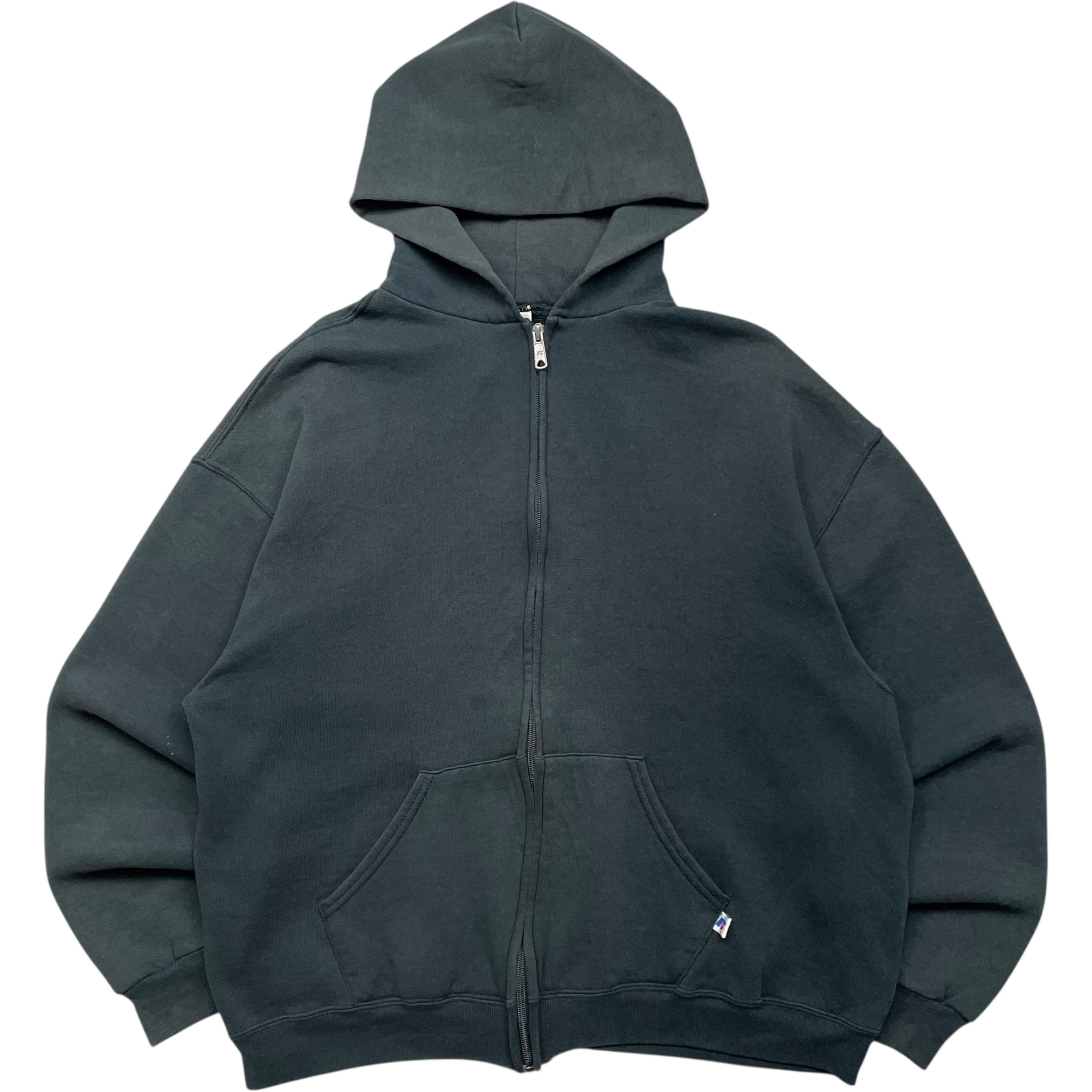 《L》russell athletic ラッセルアスレチック ジップアップパーカー 無地 短丈 ブラック no.9461