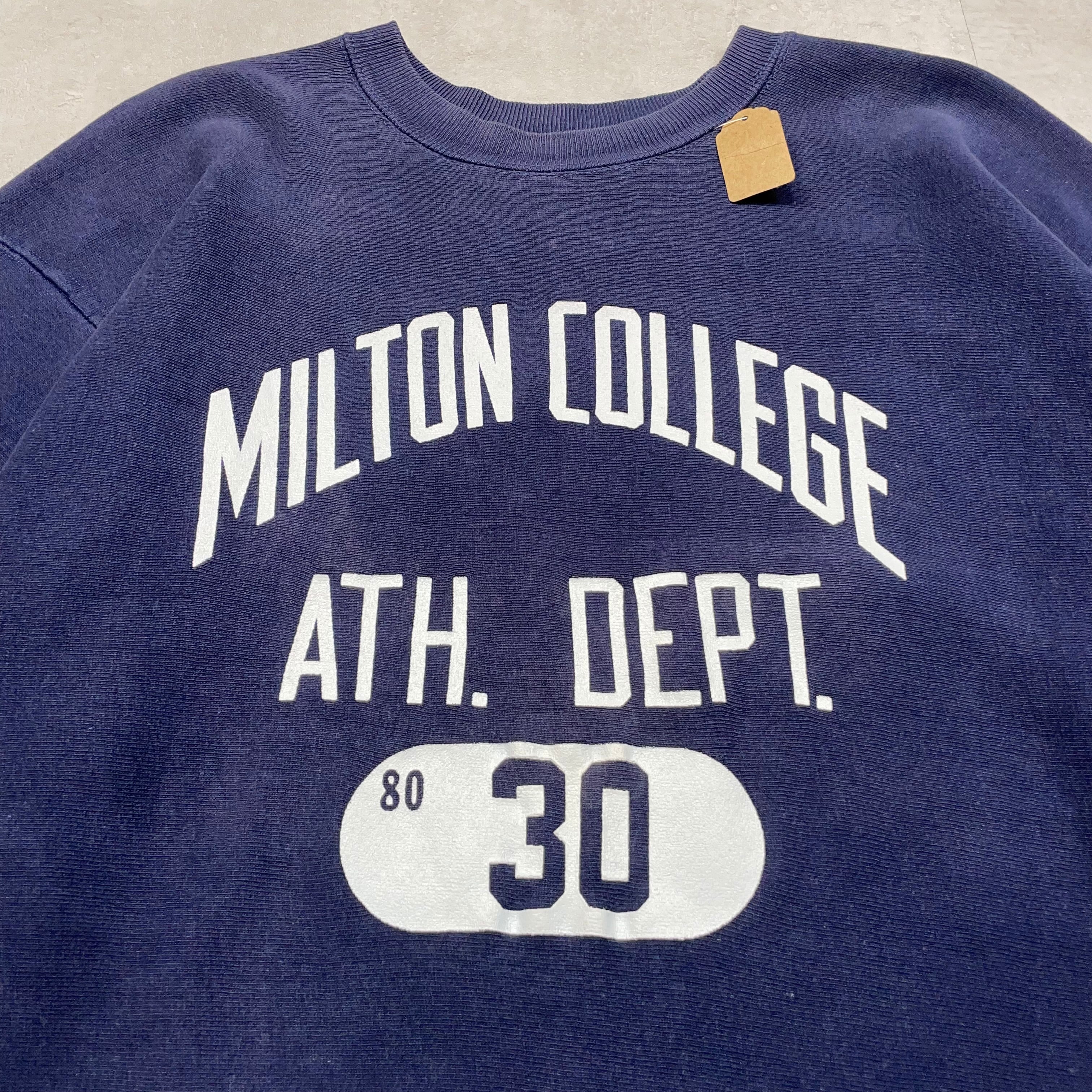 《XL》 champion チャンピオン reverse weaveリバースウィーブ カレッジプリント 3段プリント ミルトン大学 単色タグ後期 USA製 70年代 vintage no.9564