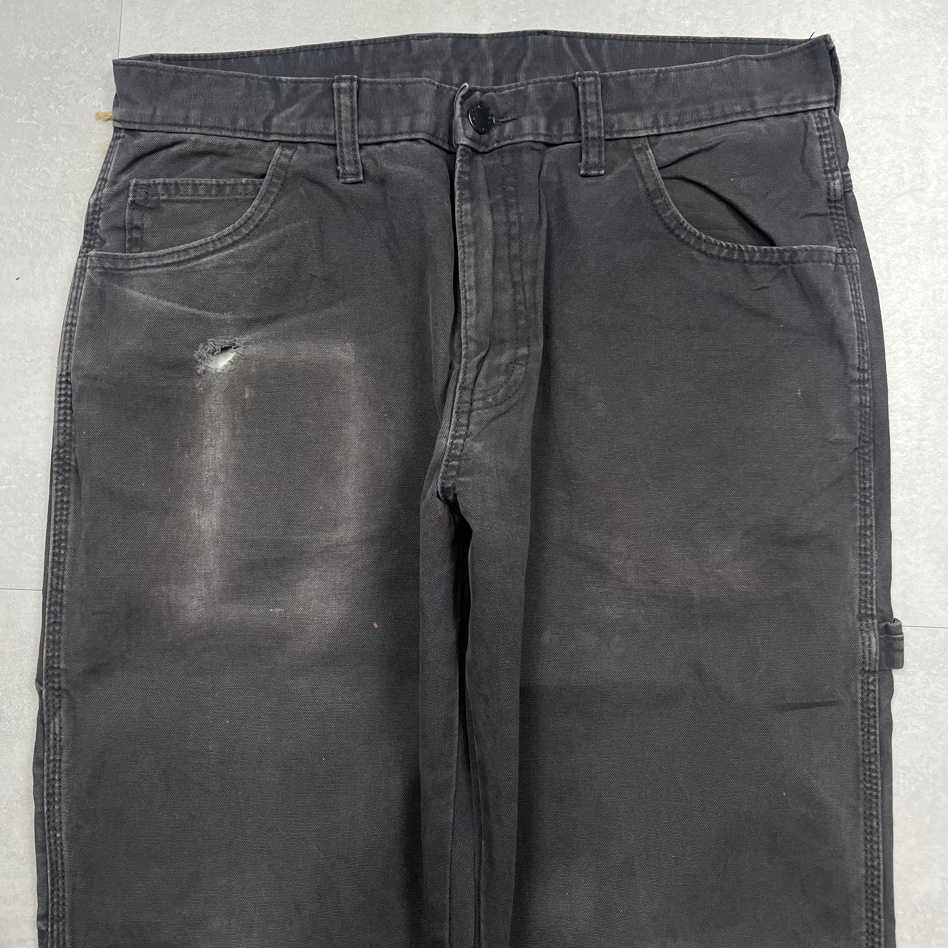 《実寸W32L31》 Dickies ディッキーズ ワークパンツ ペインターパンツ ダメージ 色落ち ブラック no.9612