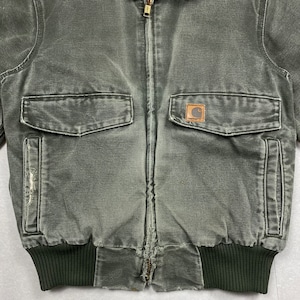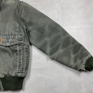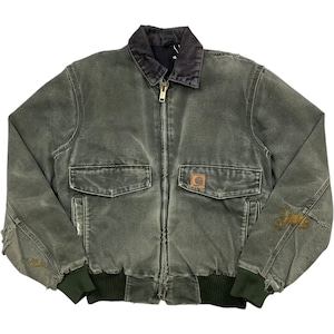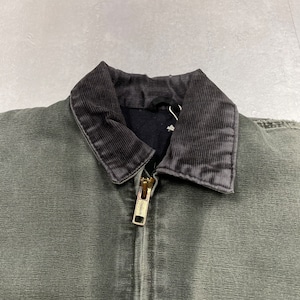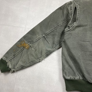 《S》Carhartt カーハート サンドストーン・ボンバージャケット 襟コーデュロイ ダメージ フェード モスグリーン no.9685