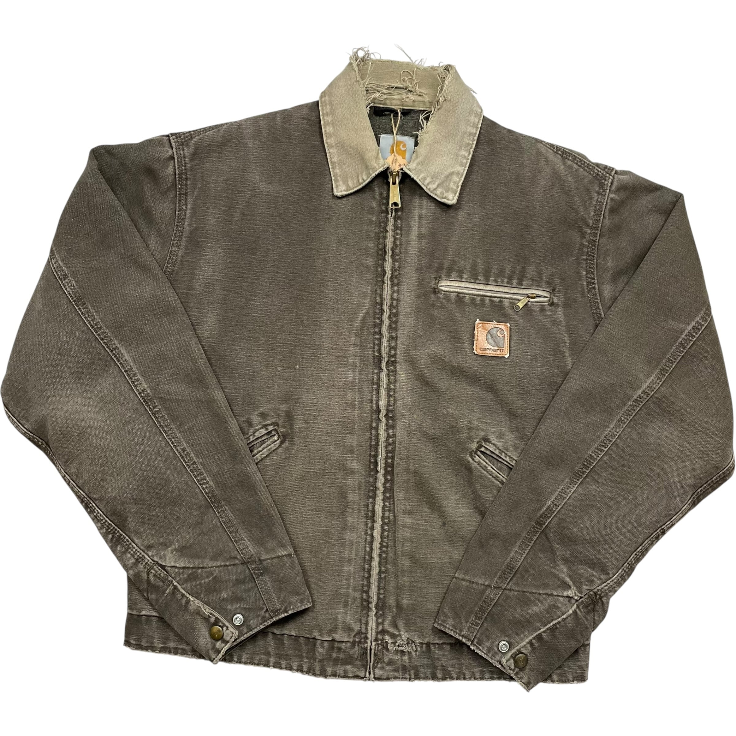 《M》Carhartt カーハート デトロイトジャケット ダックジャケット タンブルウィード 希少サイズ ワンポイントロゴ 刺繍企業ロゴ ハチノス フェード USA製 no.9736