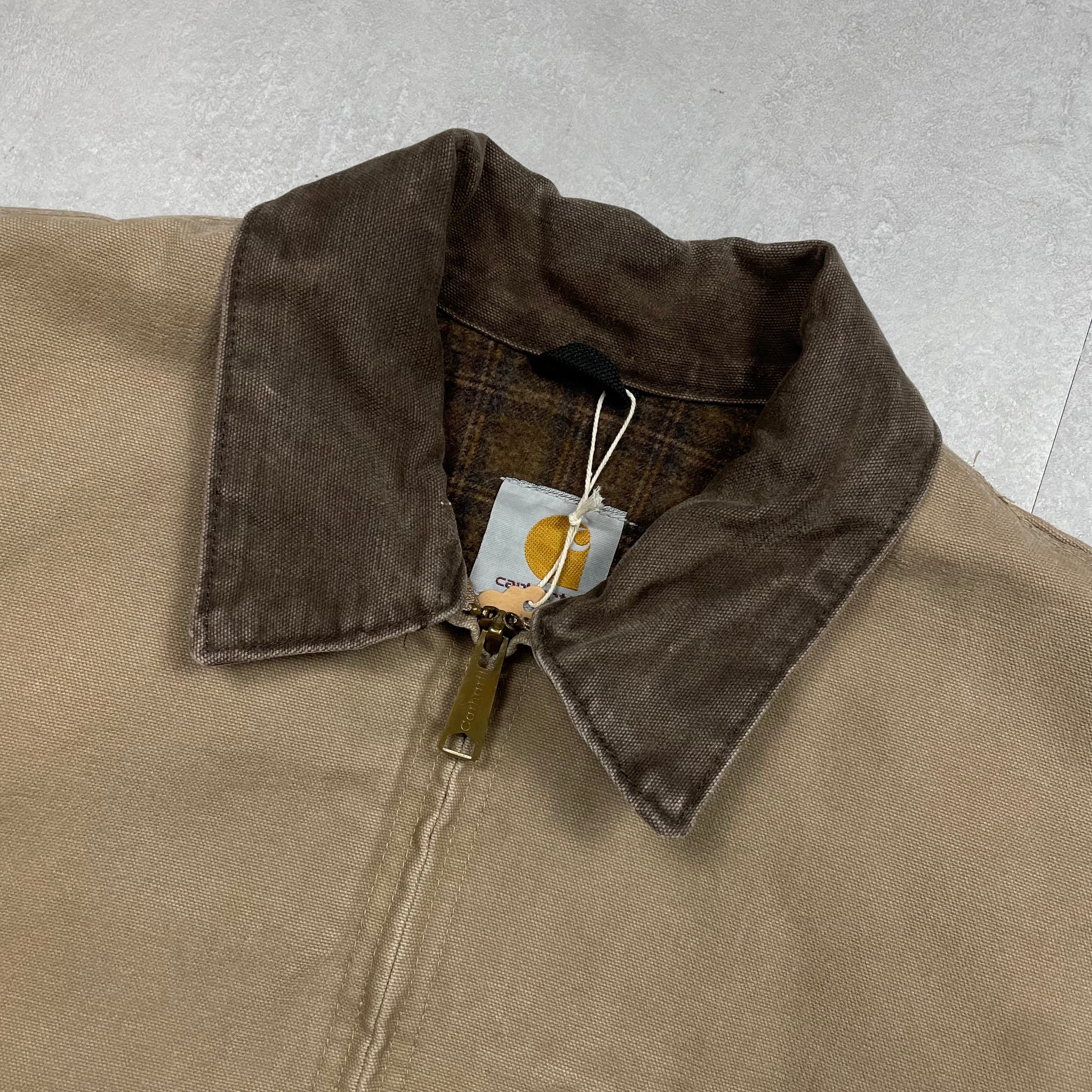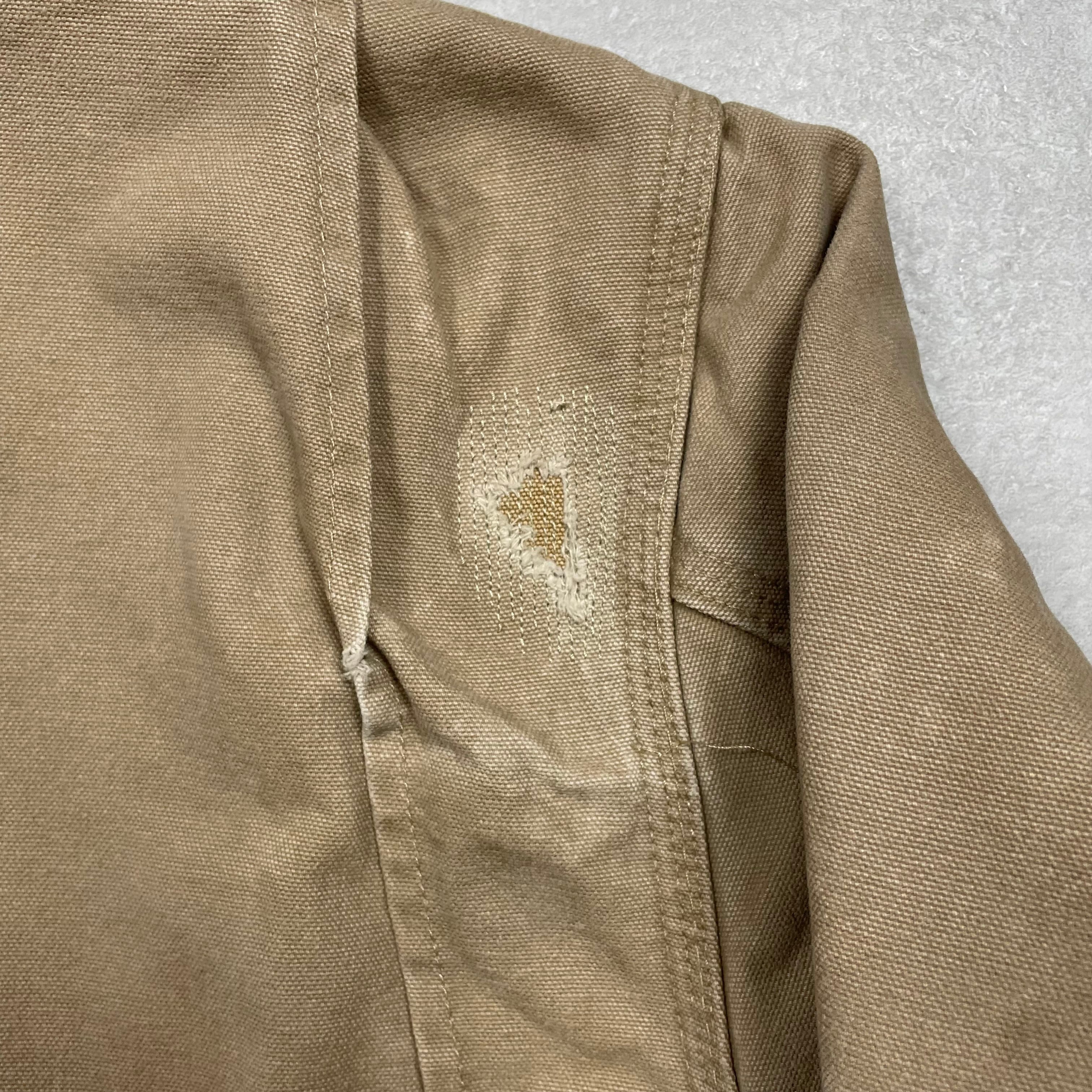 《L》Carhartt カーハート デトロイトジャケット ダックジャケット サンドダラー ワンポイントロゴ リペア有 裏地ブランケット USA製 no.9743