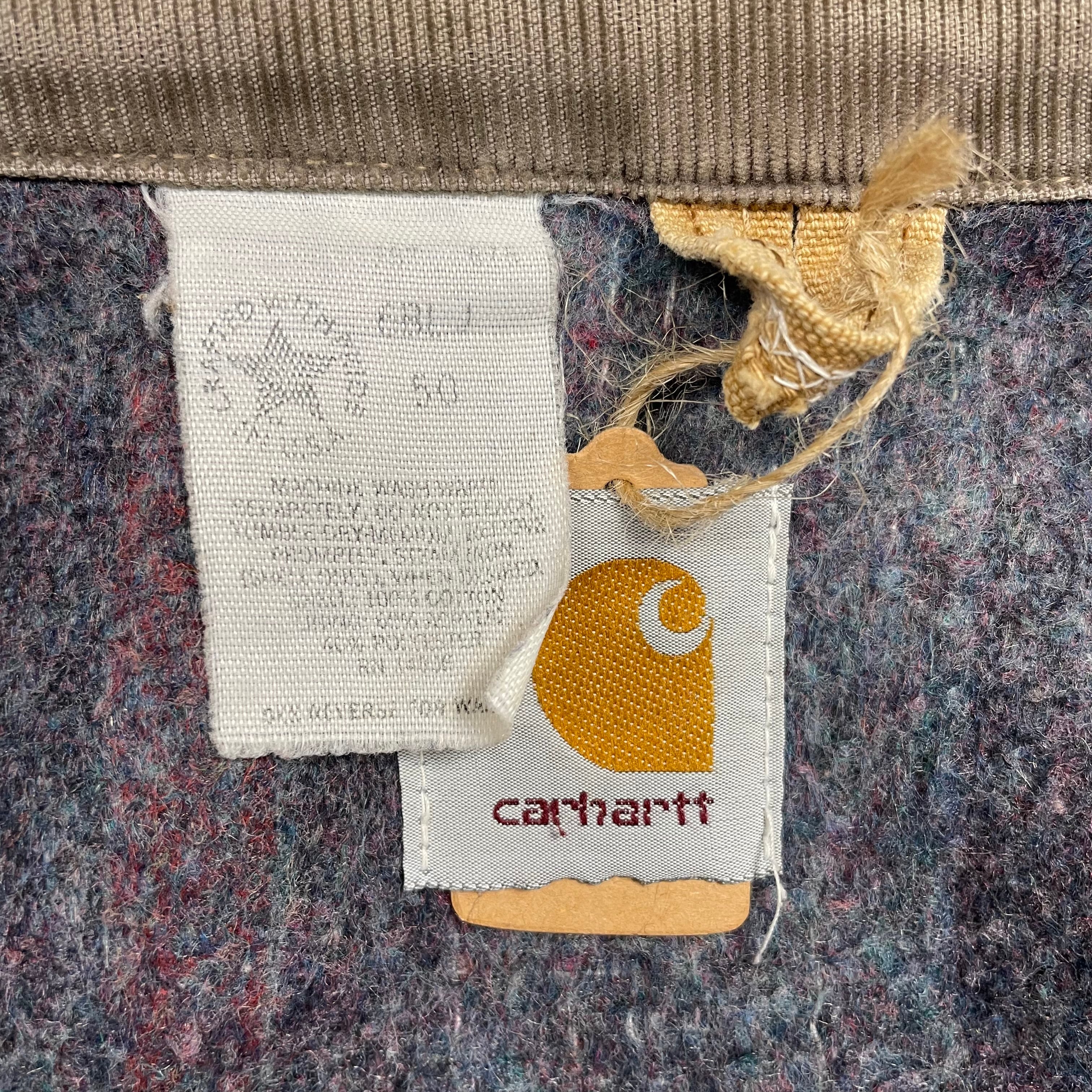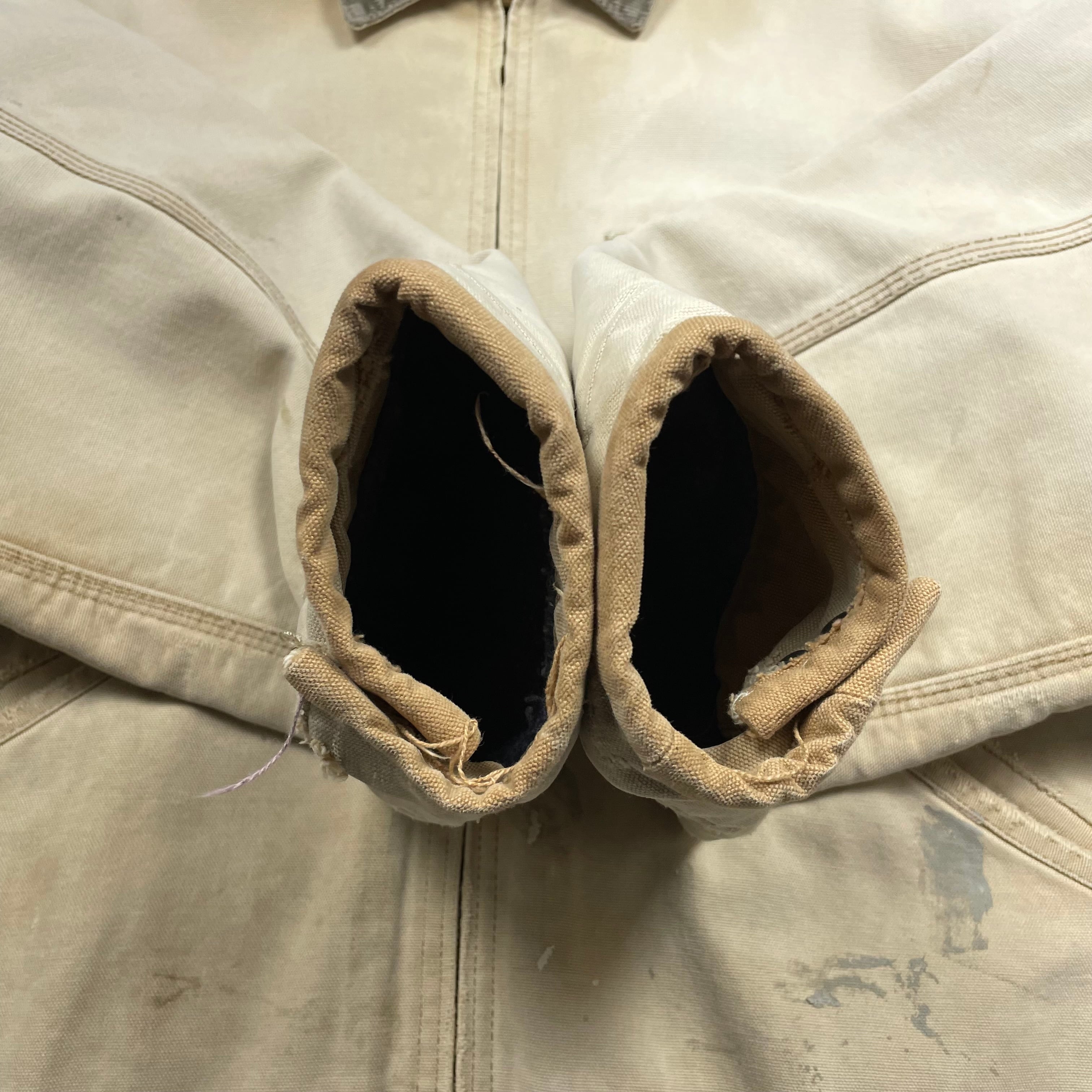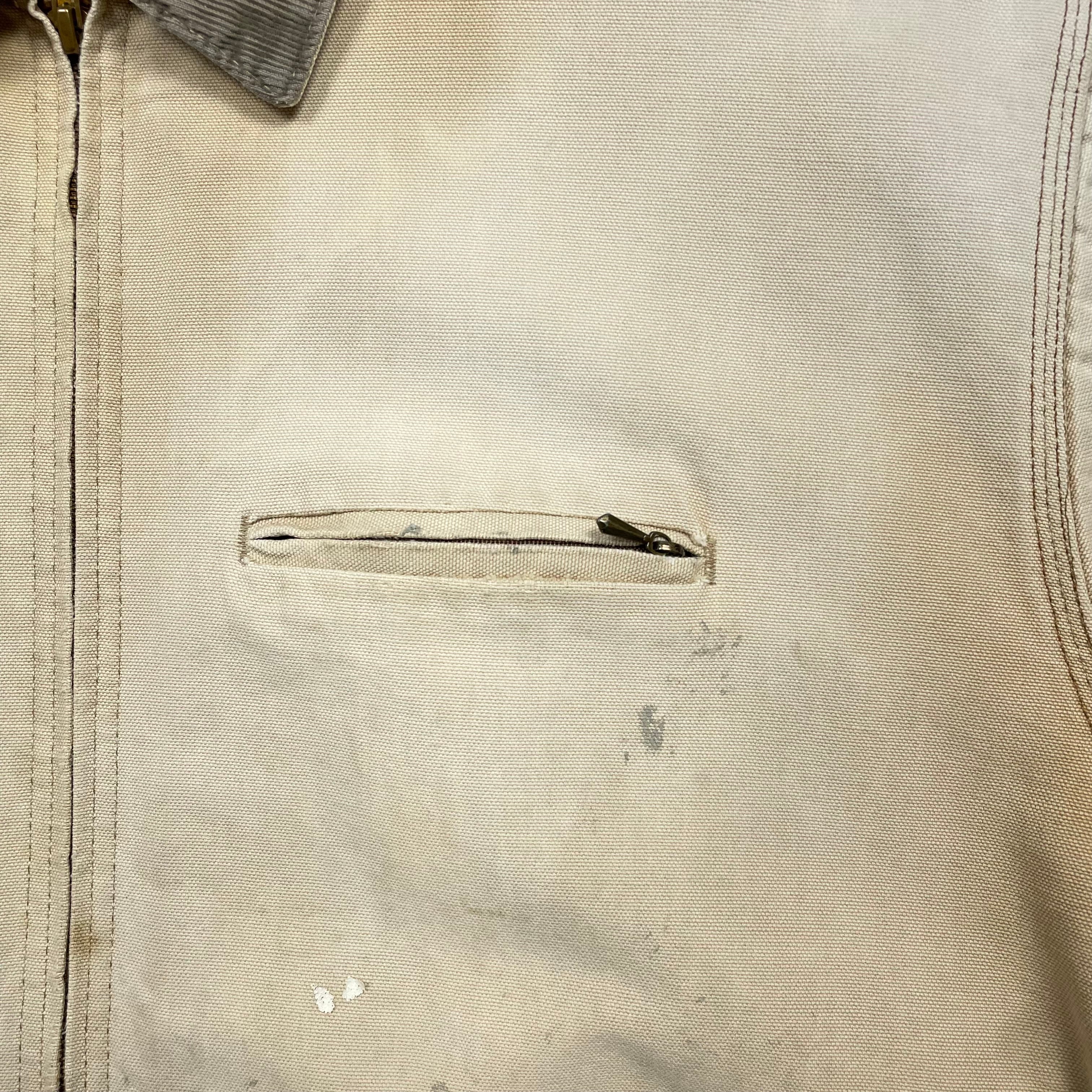 《XL》Carhartt カーハート デトロイトジャケット ダックジャケット ブラウン 色落ち ペイント ダメージ リペア有 襟コーデュロイ 裏地ブランケット USA製 80年代〜 no.9744