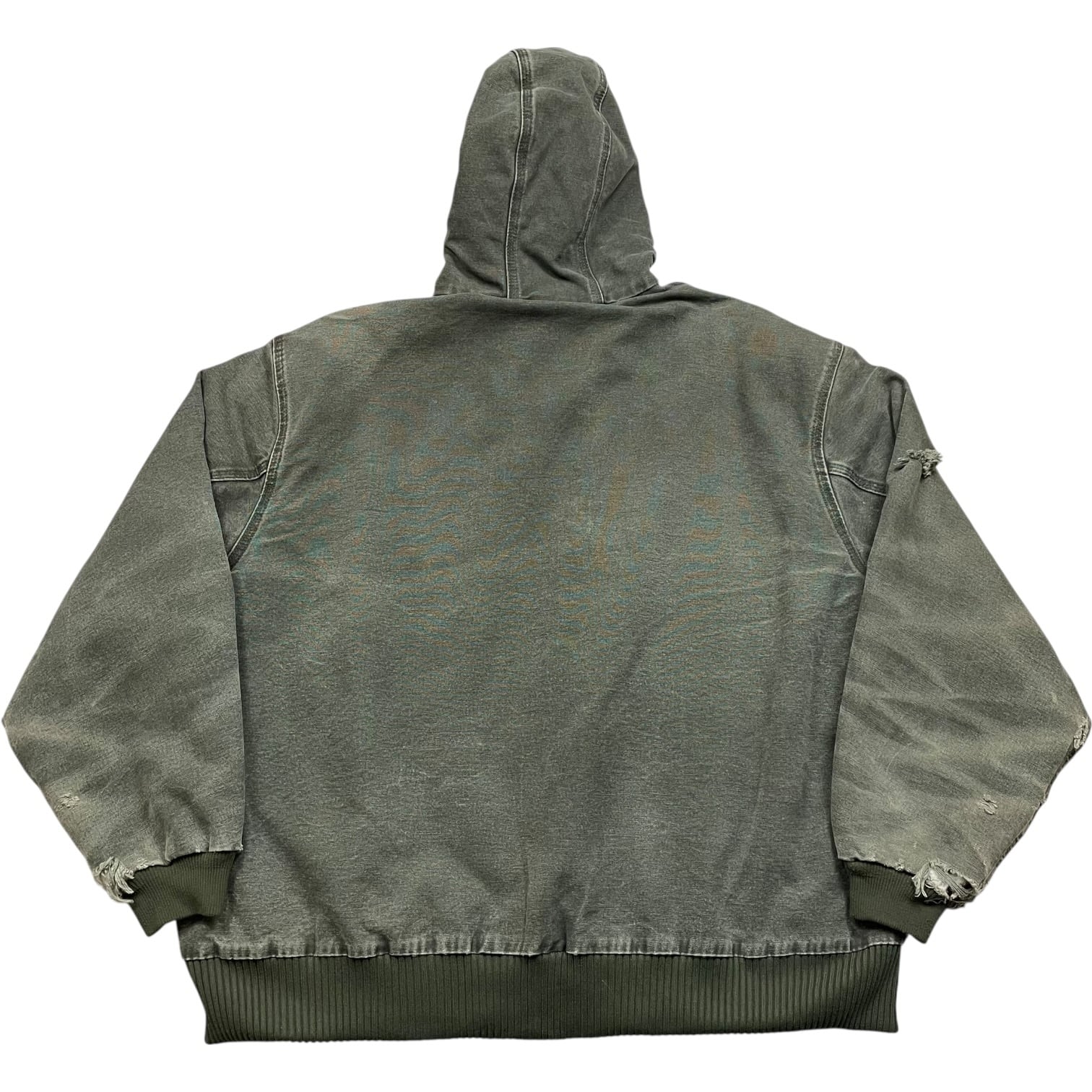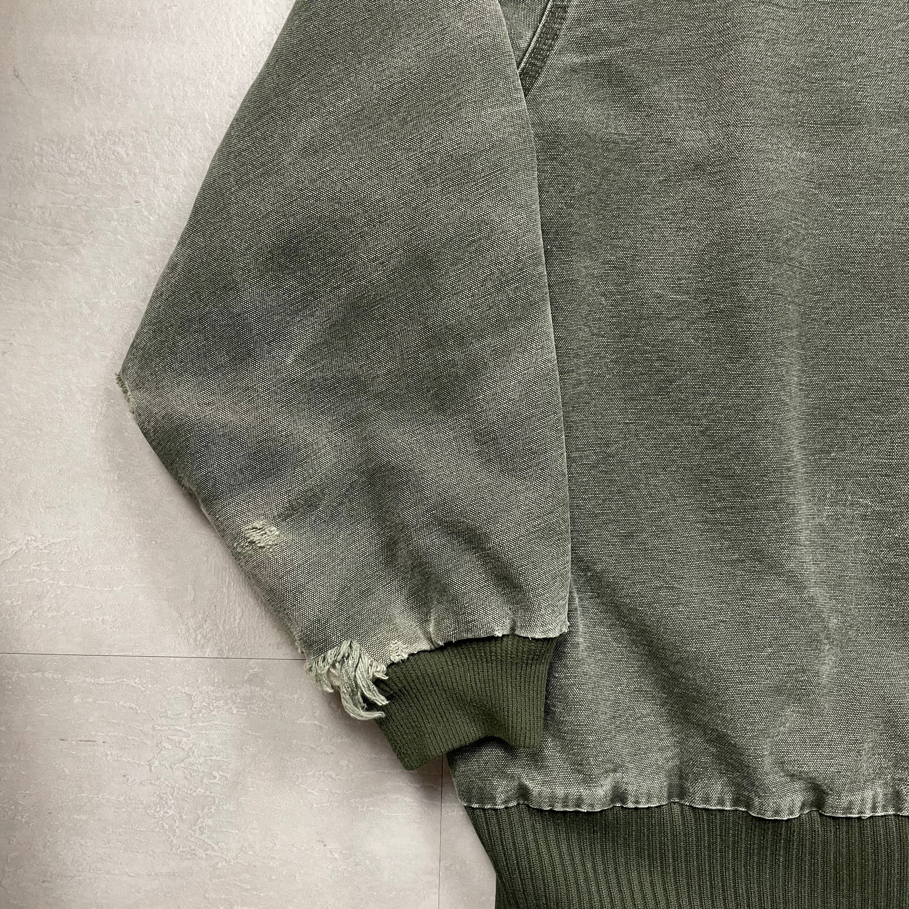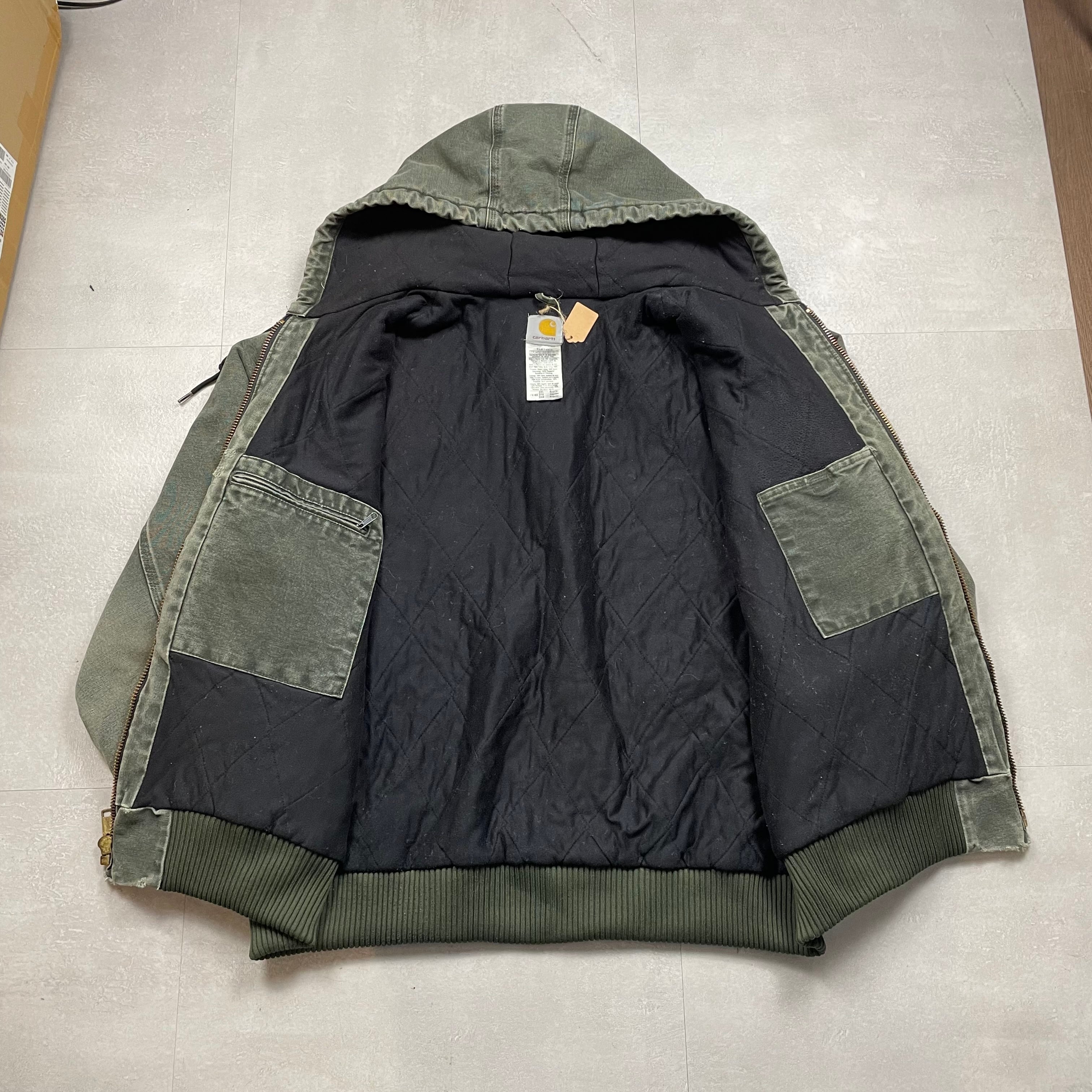 《XXL》Carhartt カーハート アクティブジャケット フェード ダメージ ワンポイントロゴ 革パッチ フード モスグリーン no.9764