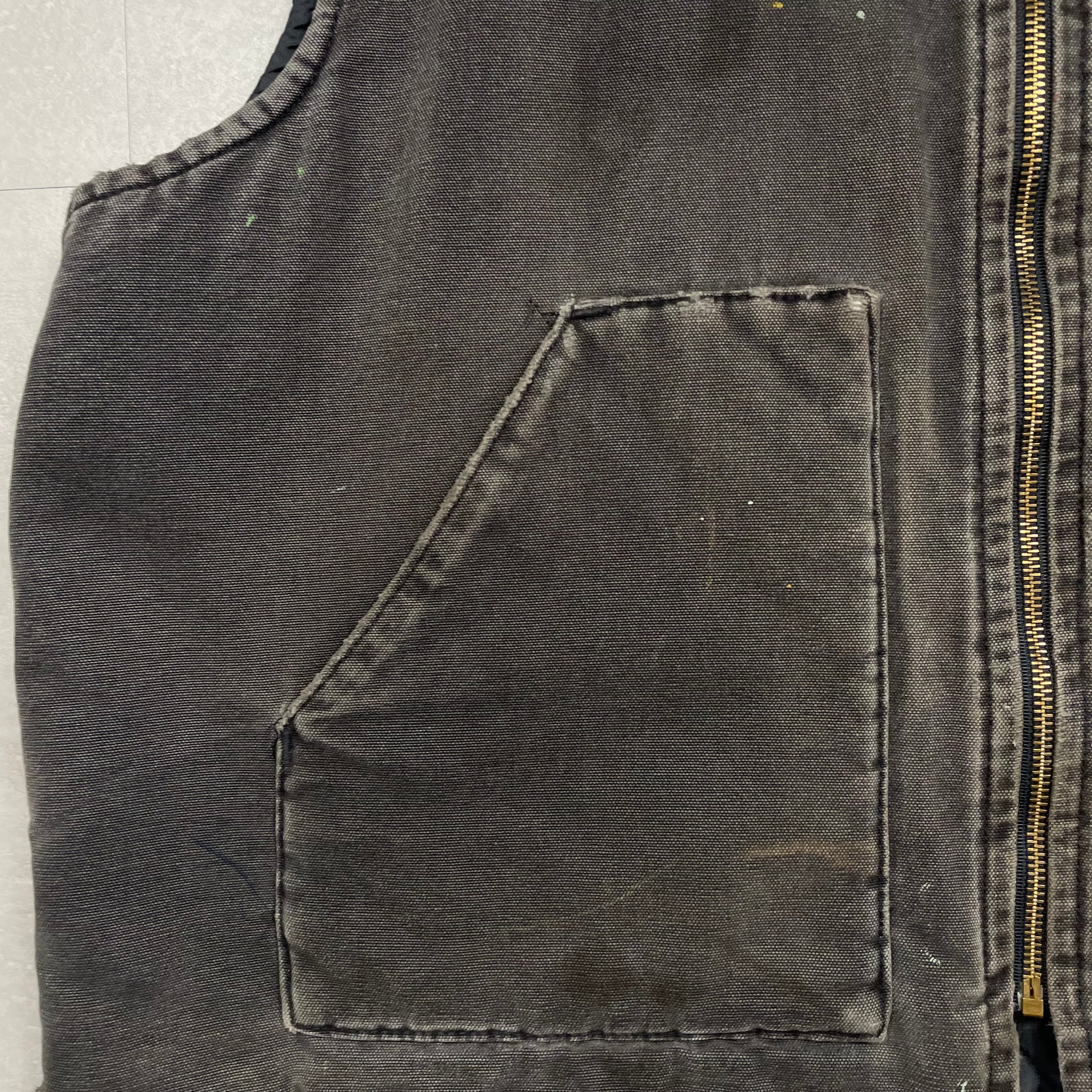 《XL》Carhartt カーハート ダックベスト 企業ロゴ 刺繍 革パッチ フェード ペイント no.9788