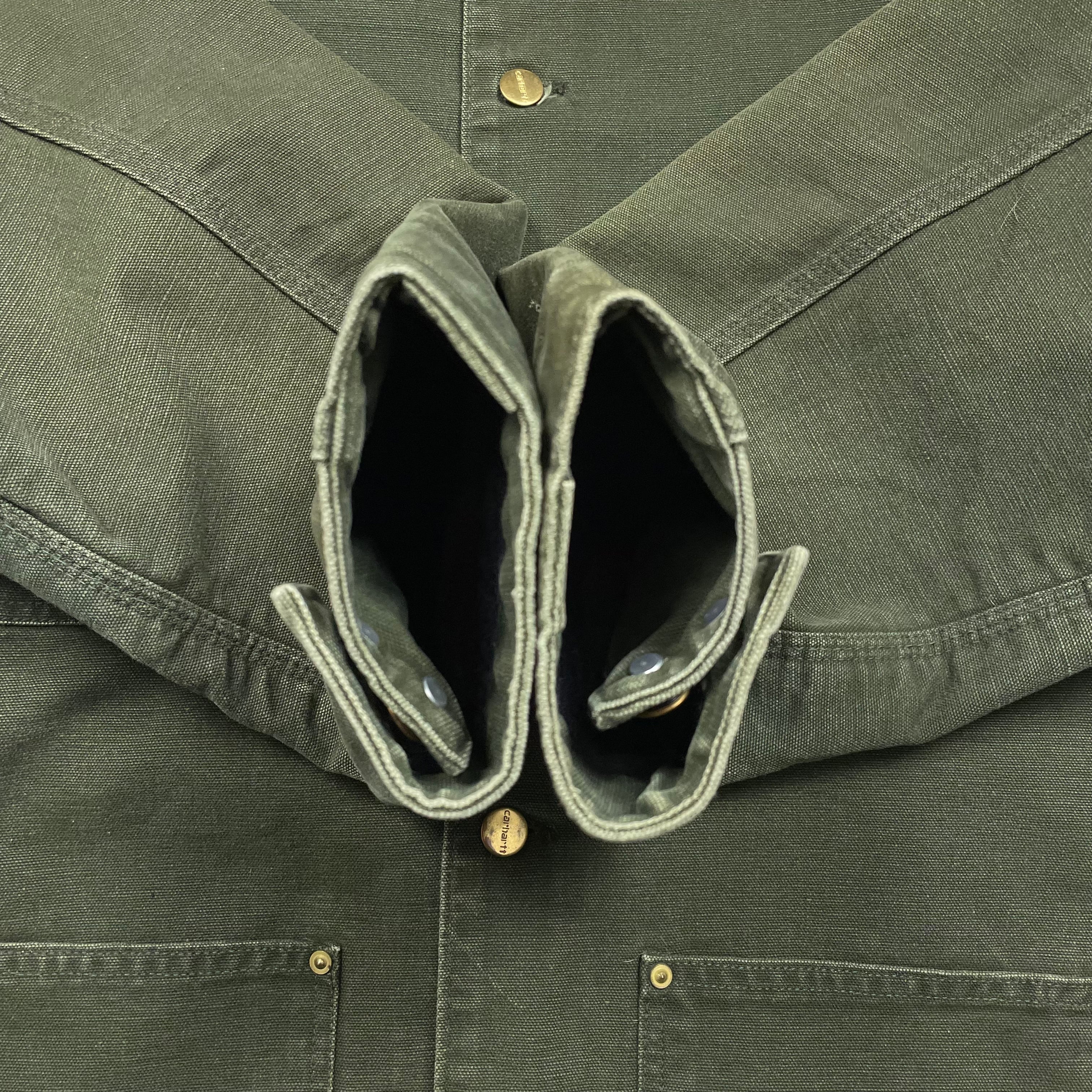 《XL》Carhartt カーハート チョアコート 希少カラー ワンポイントロゴ 襟コーデュロイ グリーン USA製 80年代〜 no.9799