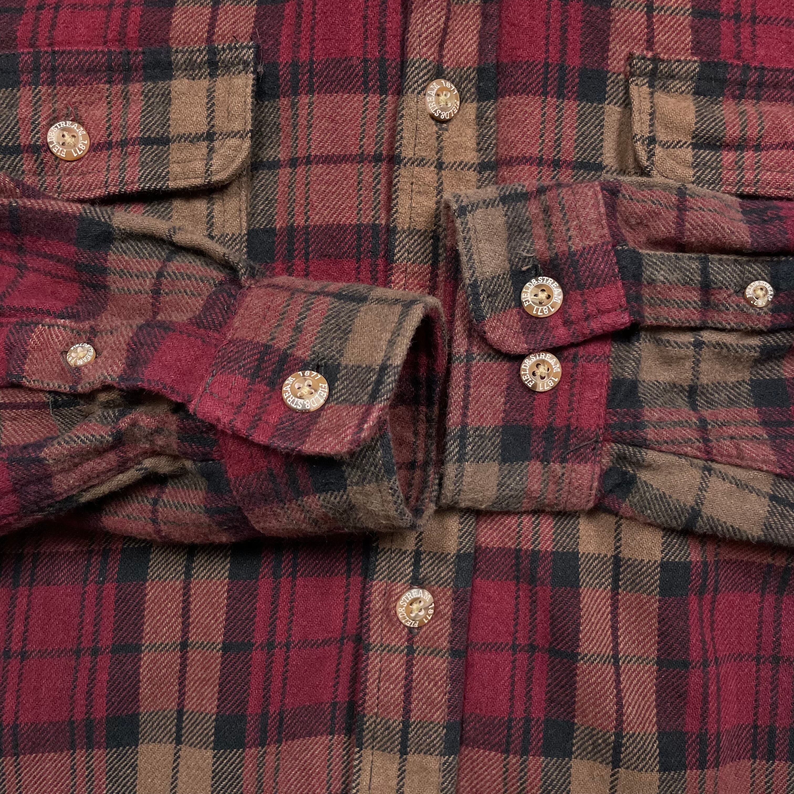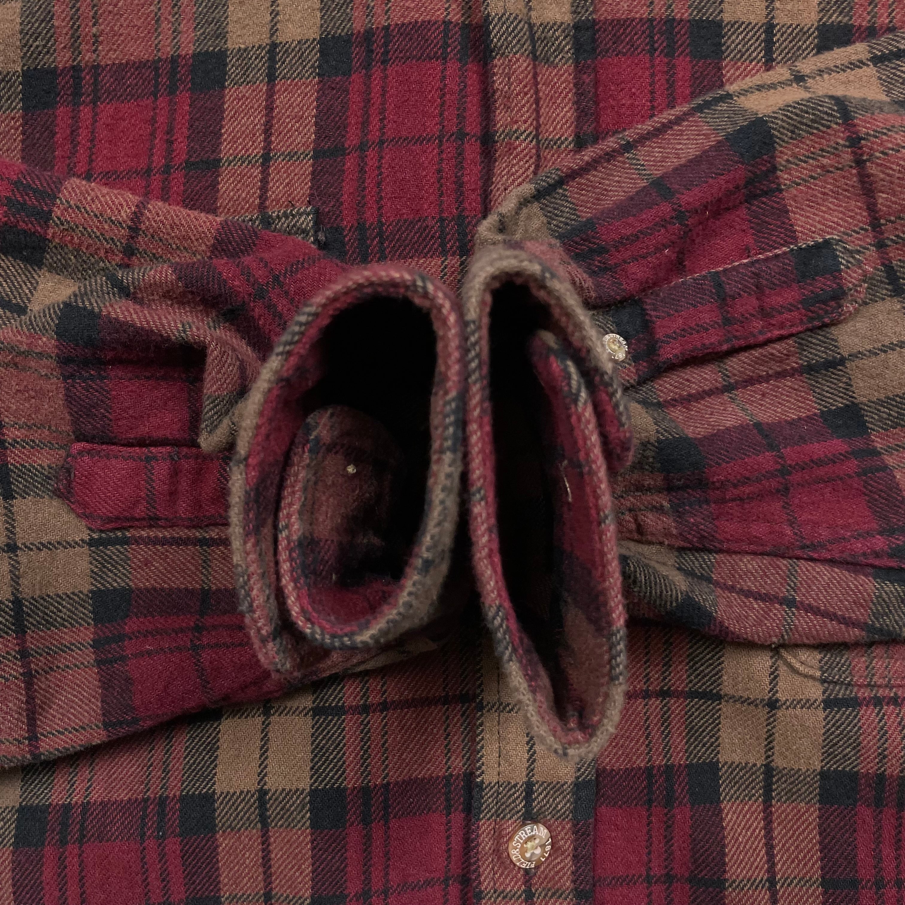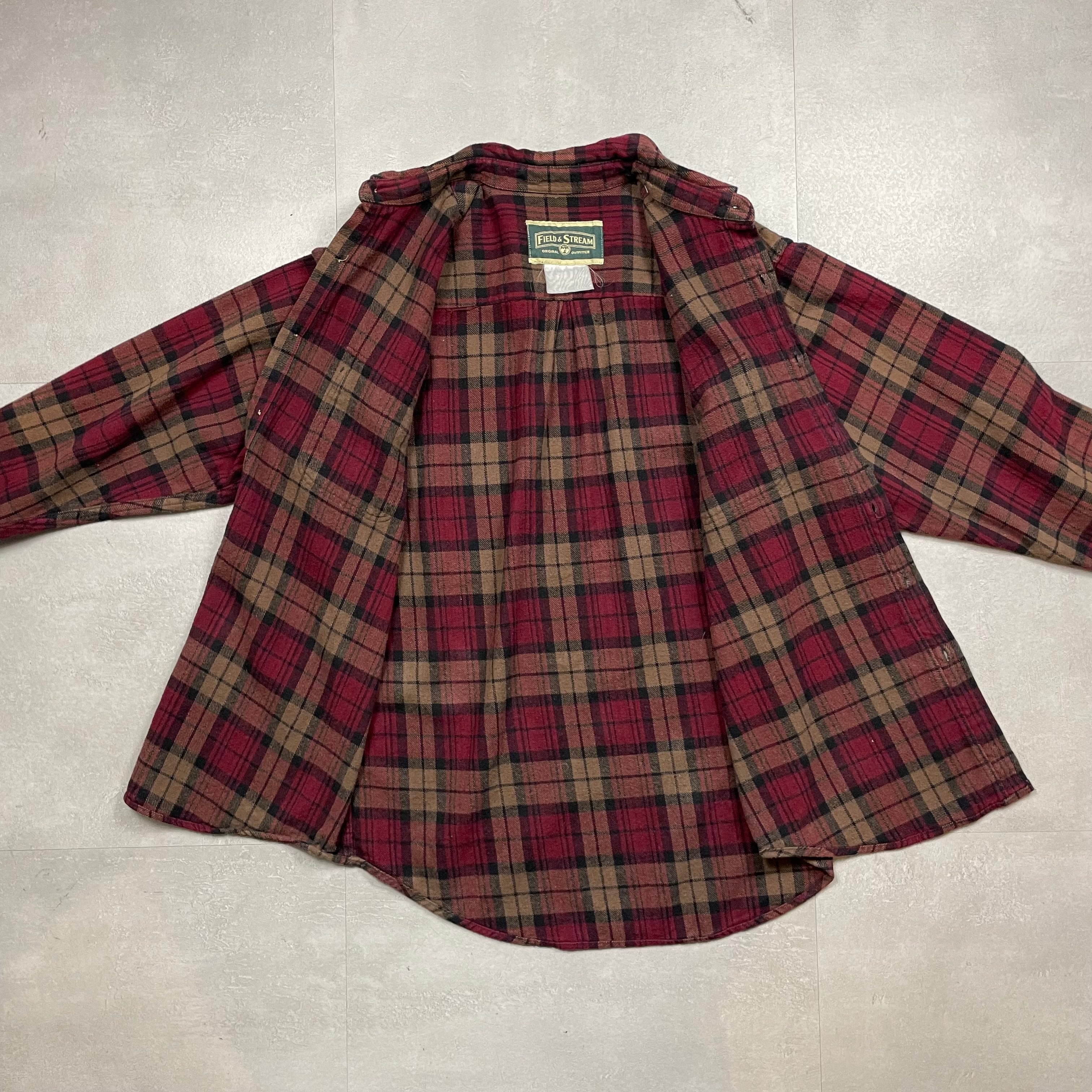 《L》FIELD & STREAM フィールド&ストリーム ヘビーネルシャツ 袖ボタン右欠品 レッド×ブラウン チェック no.9905