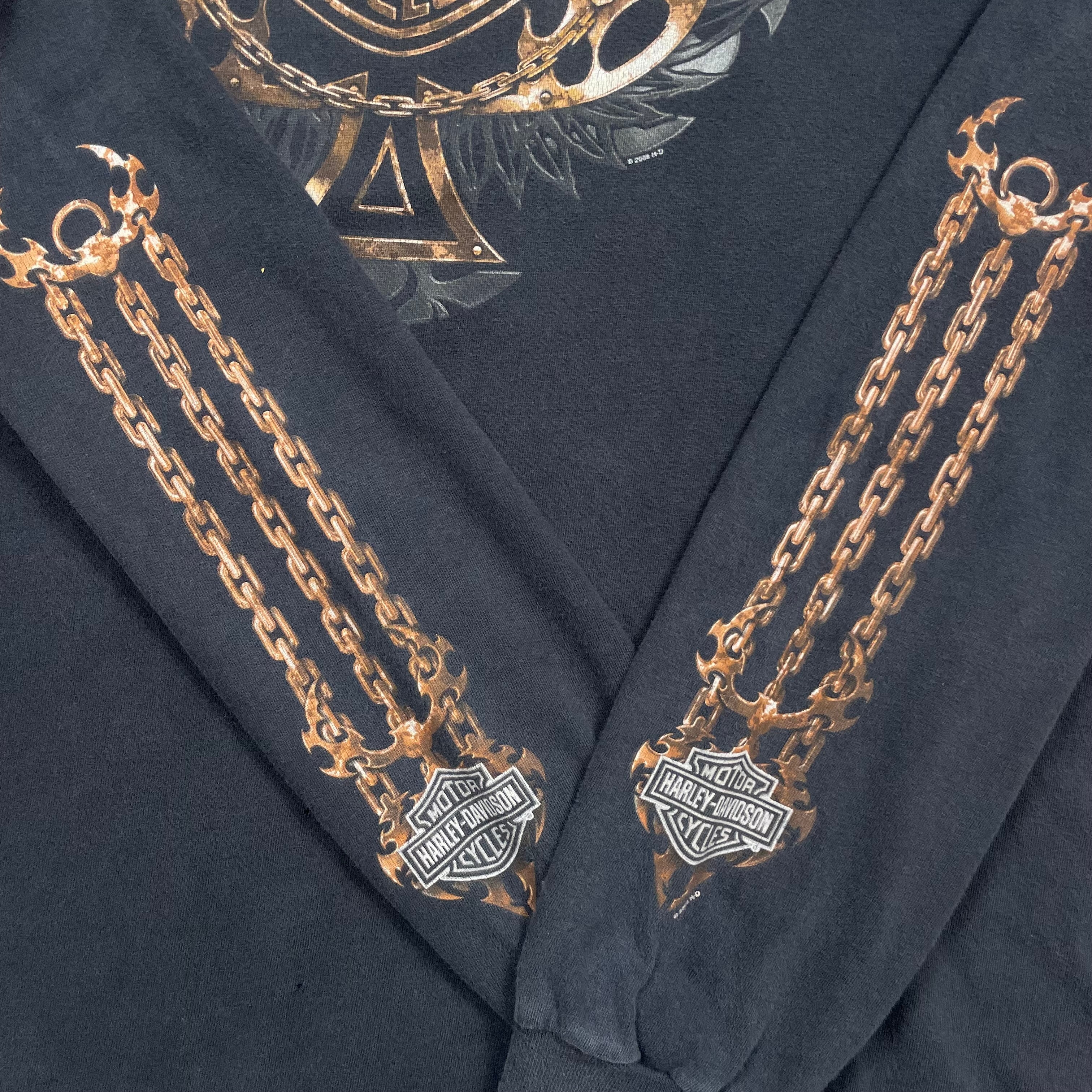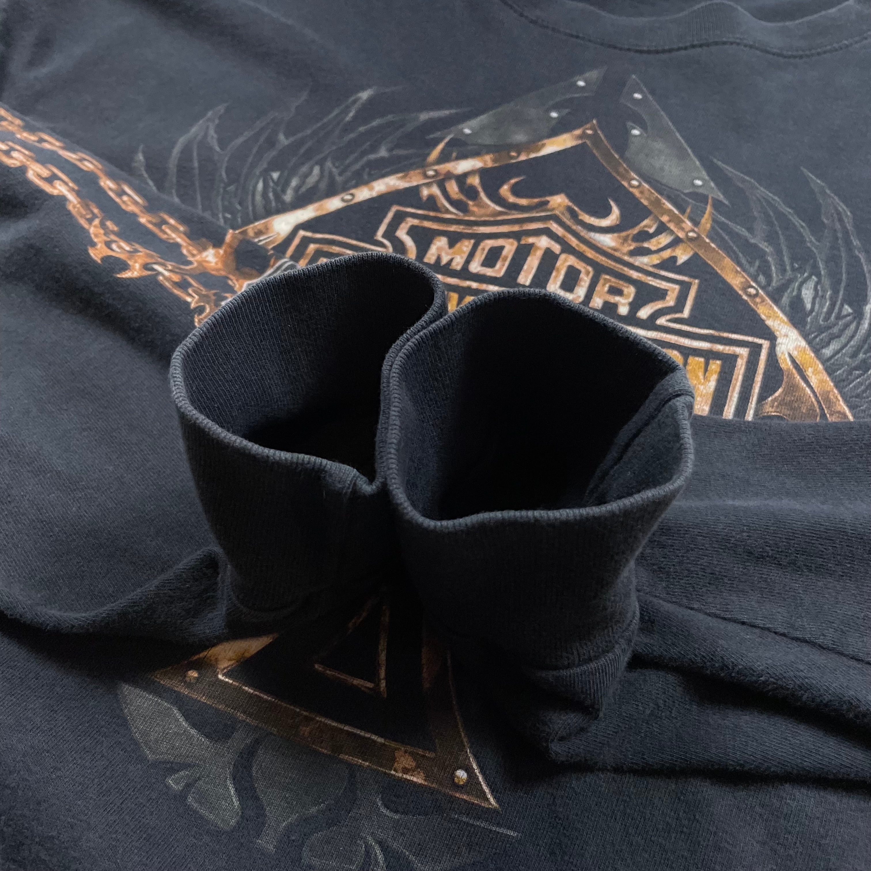 《XL》Harley-Davidson ハーレーダビッドソン ロンT フレイム フロントプリント バックプリント ブラック no.9946