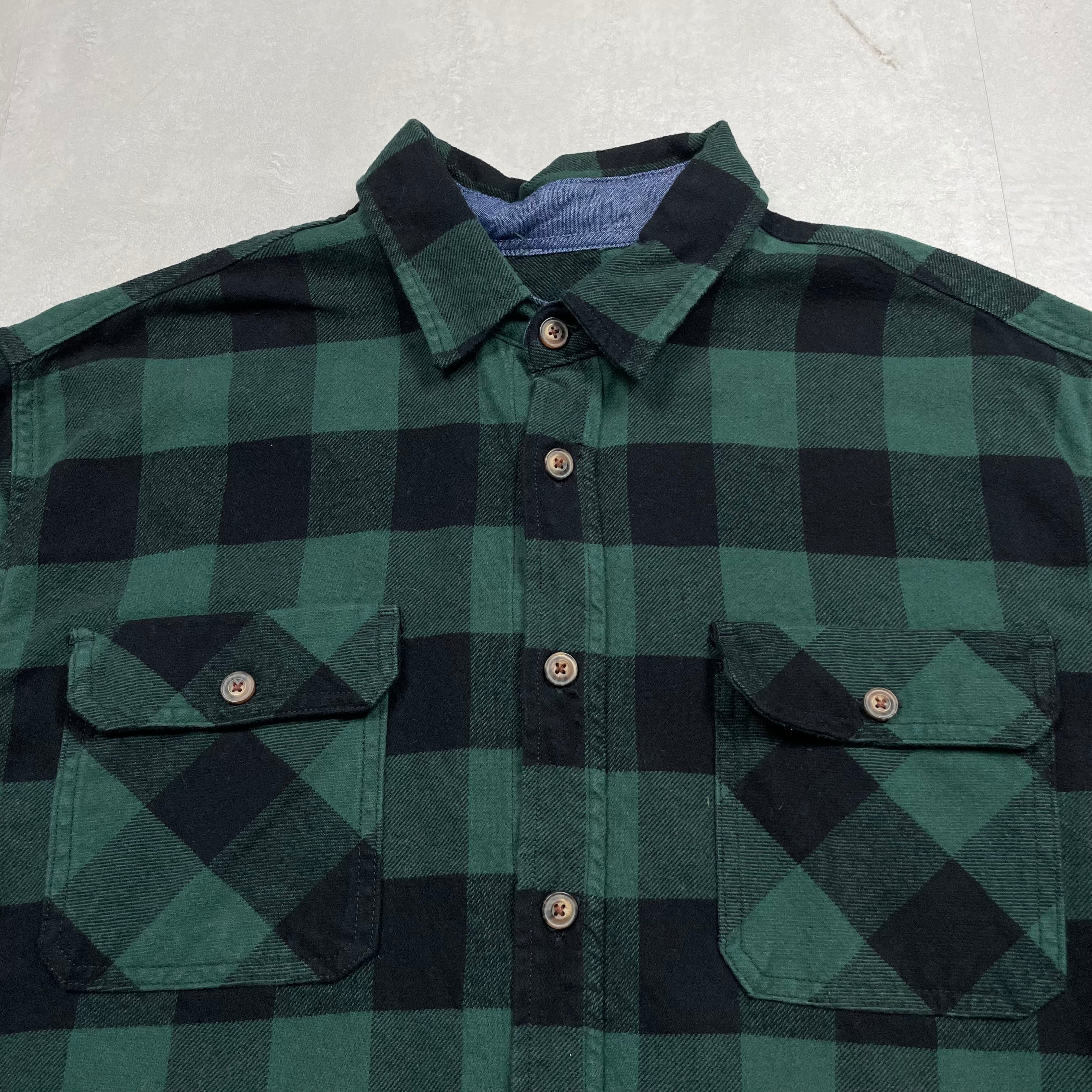《XL》 JACHS ジャックス ヘビーネルシャツ ブラックチェック マチ付き グリーン ブラック no.9951