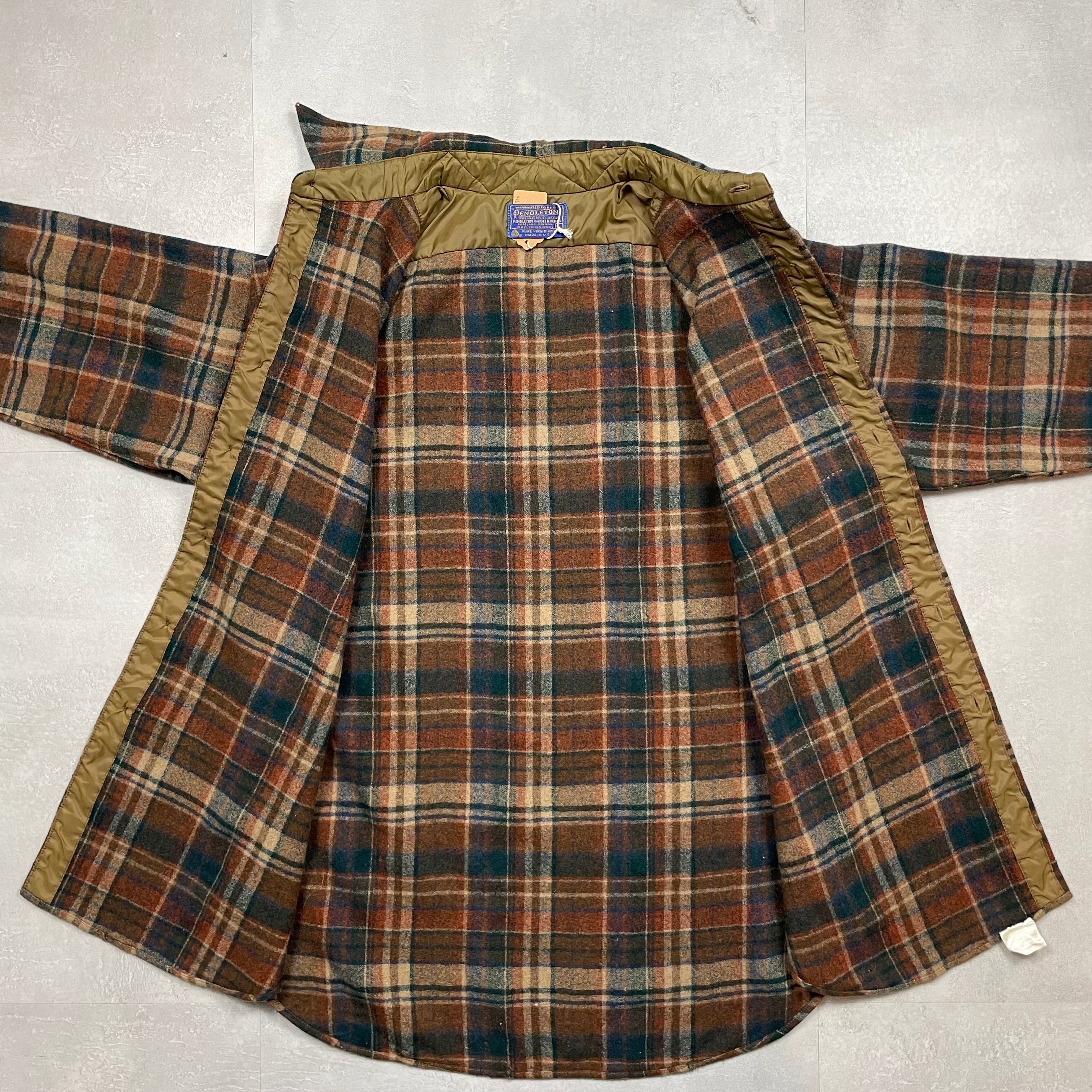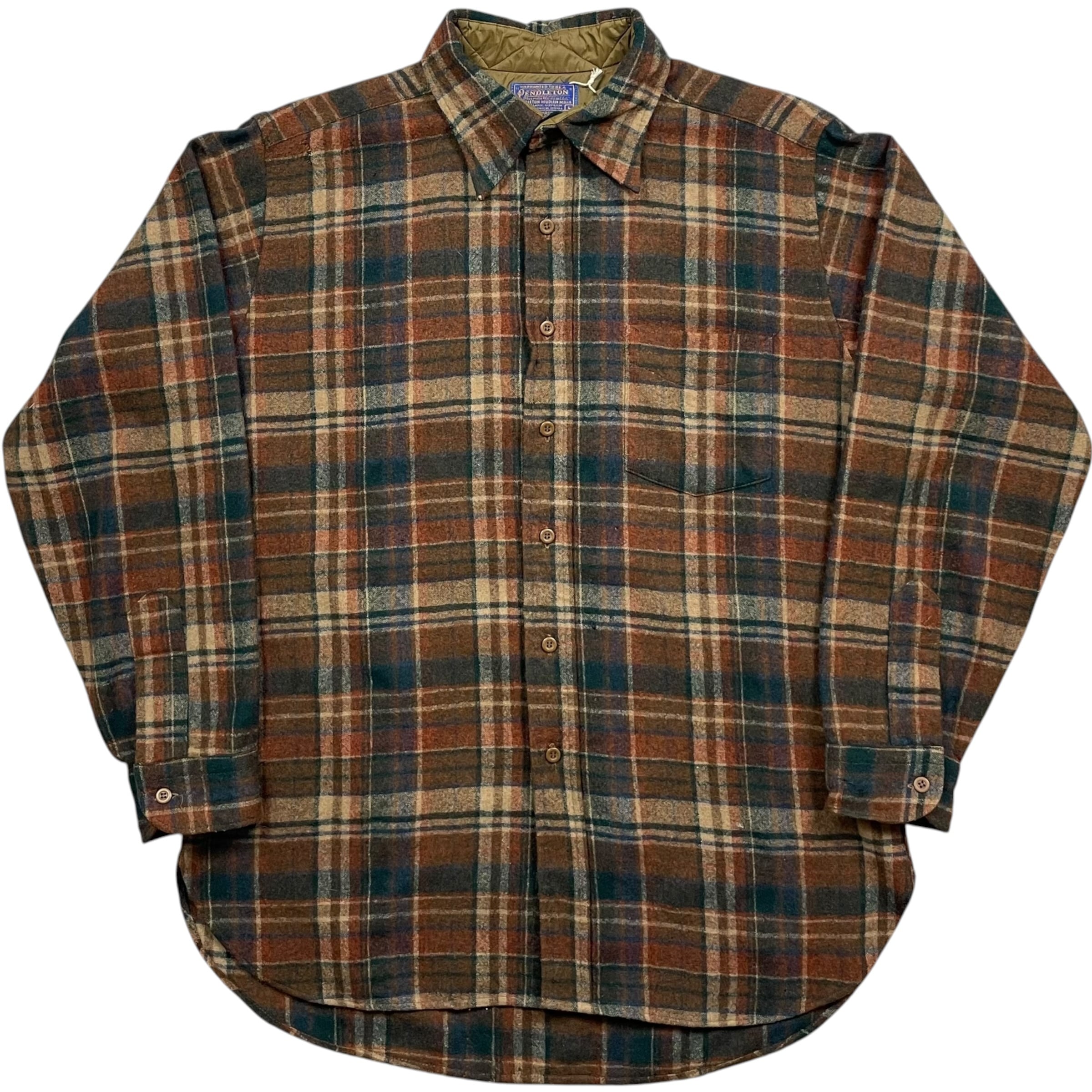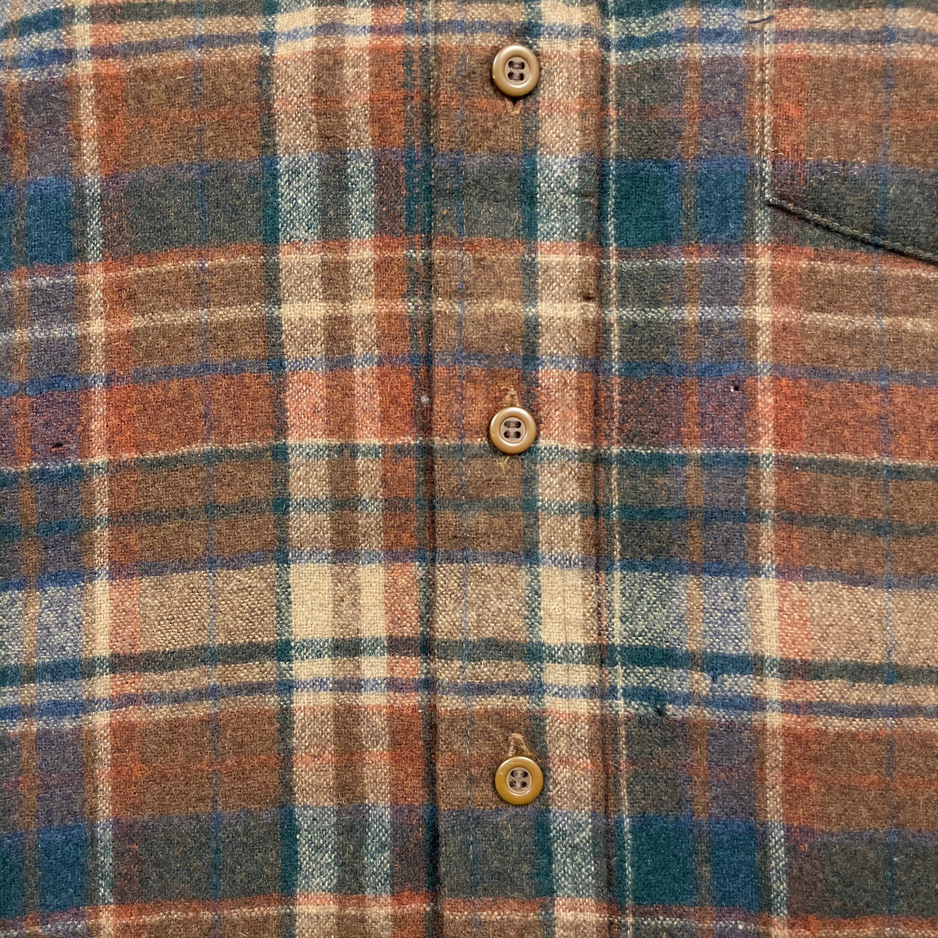 《L》 PENDLETON ペンドルトン チェック柄 ウールシャツ 数箇所穴あり ブラウン×ブルー×バーガンディ USA製 70年代 vintage no.9969
