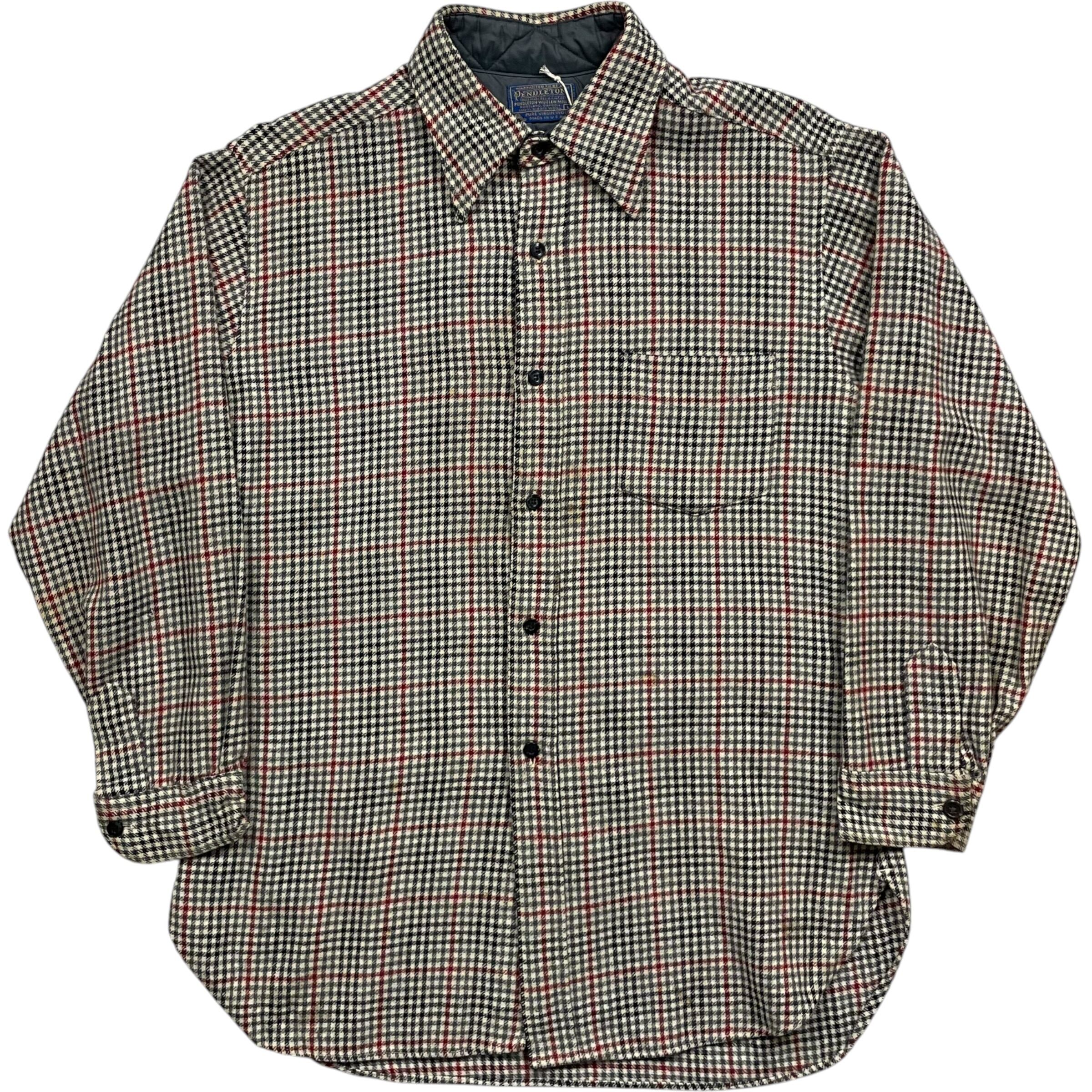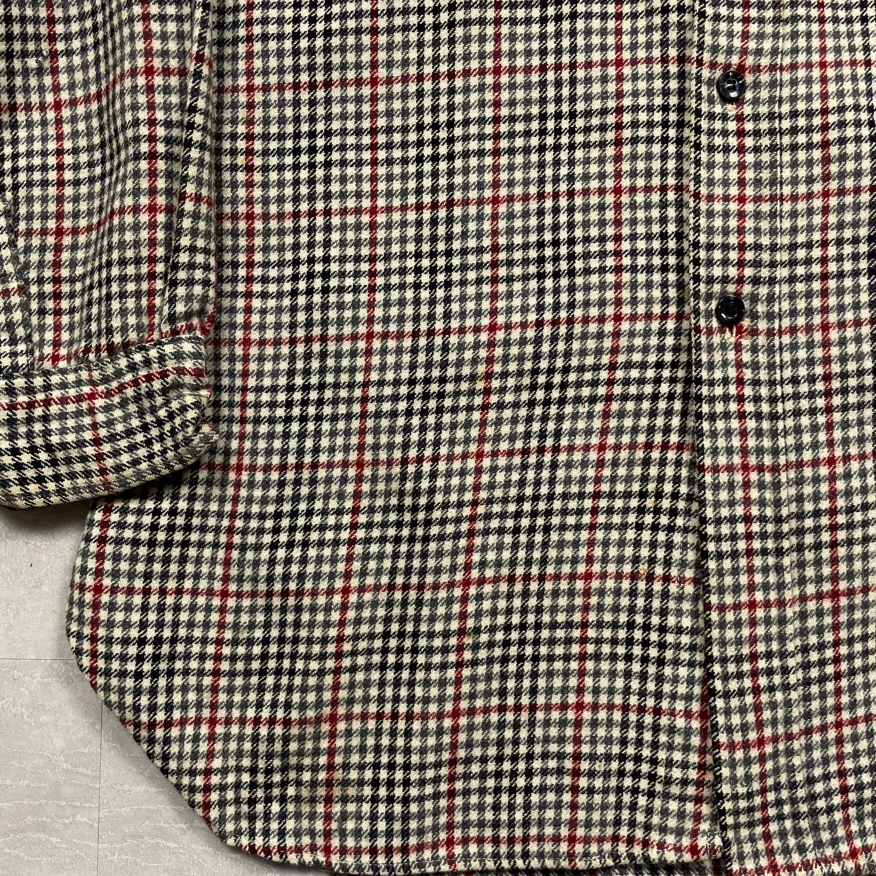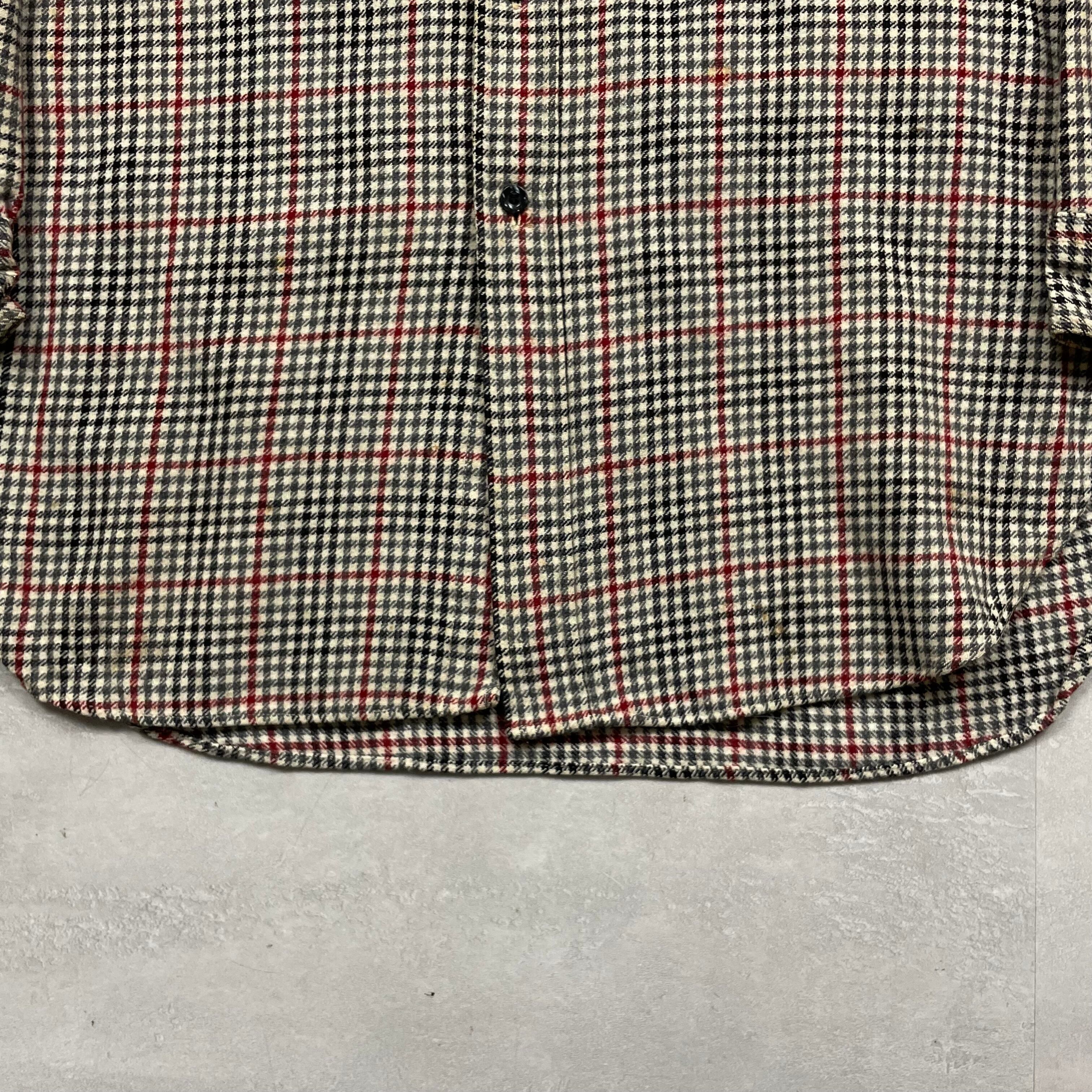 《L》 PENDLETON ペンドルトン ウールシャツ ガンクラブチェック 左胸ポケット 数箇所シミ有 USA製 70年代 vintage no.9981