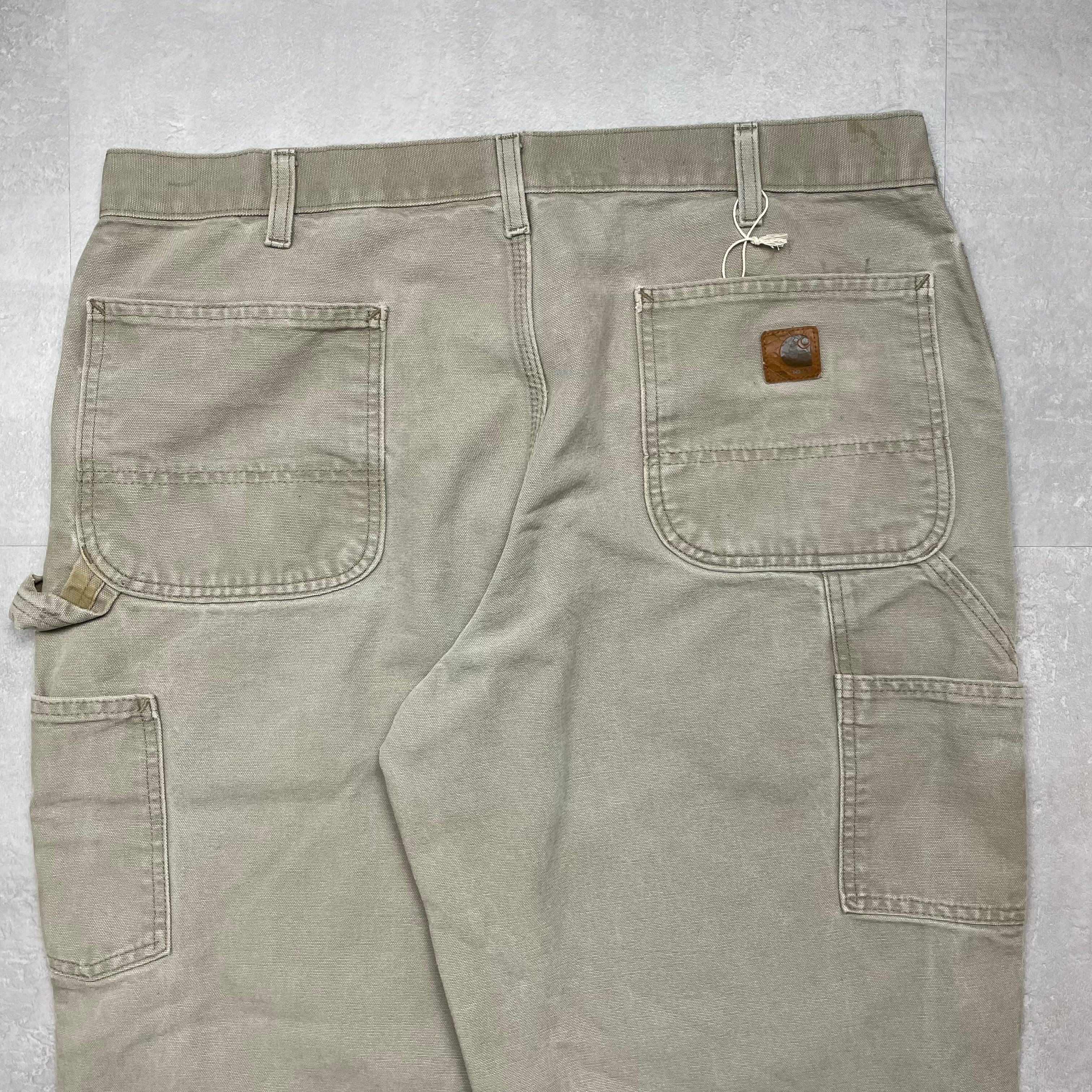 《実寸 W36 L28》 Carhartt カーハート ペインターパンツ ワークパンツ ベージュ ペイント有 フェード ロゴパッチ タグ欠品 no.10029