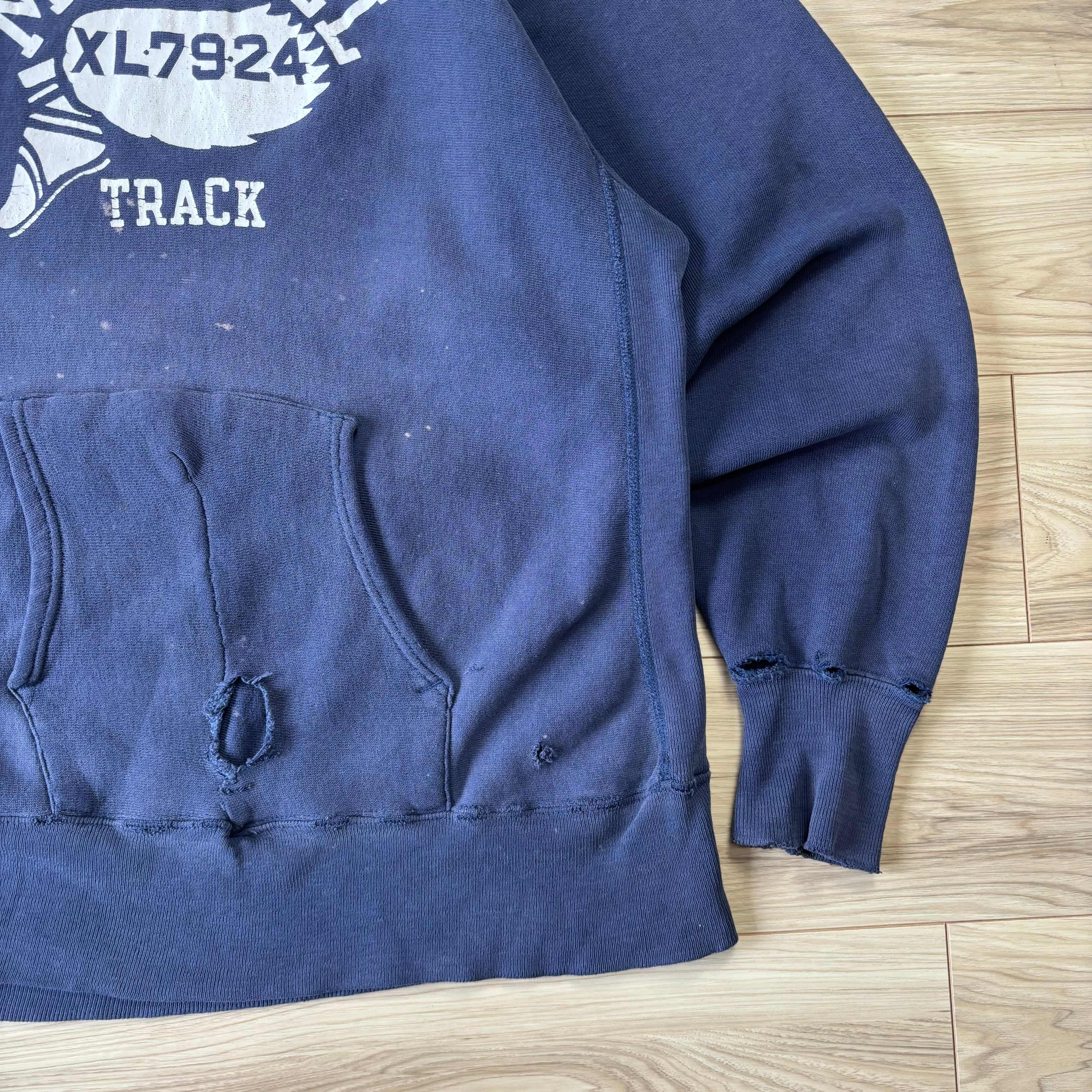 70's 青単色タグ champion チャンピオン リバースウィーブ ウイングフット 3段プリント ボロ