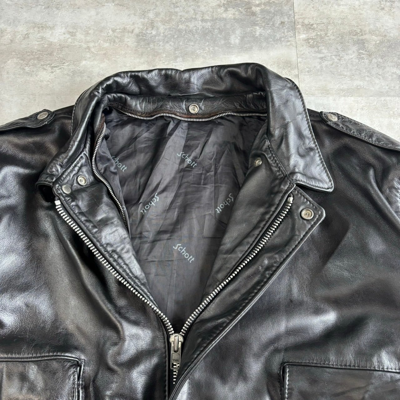 SCHOTT ブラックレザー フライトジャケット