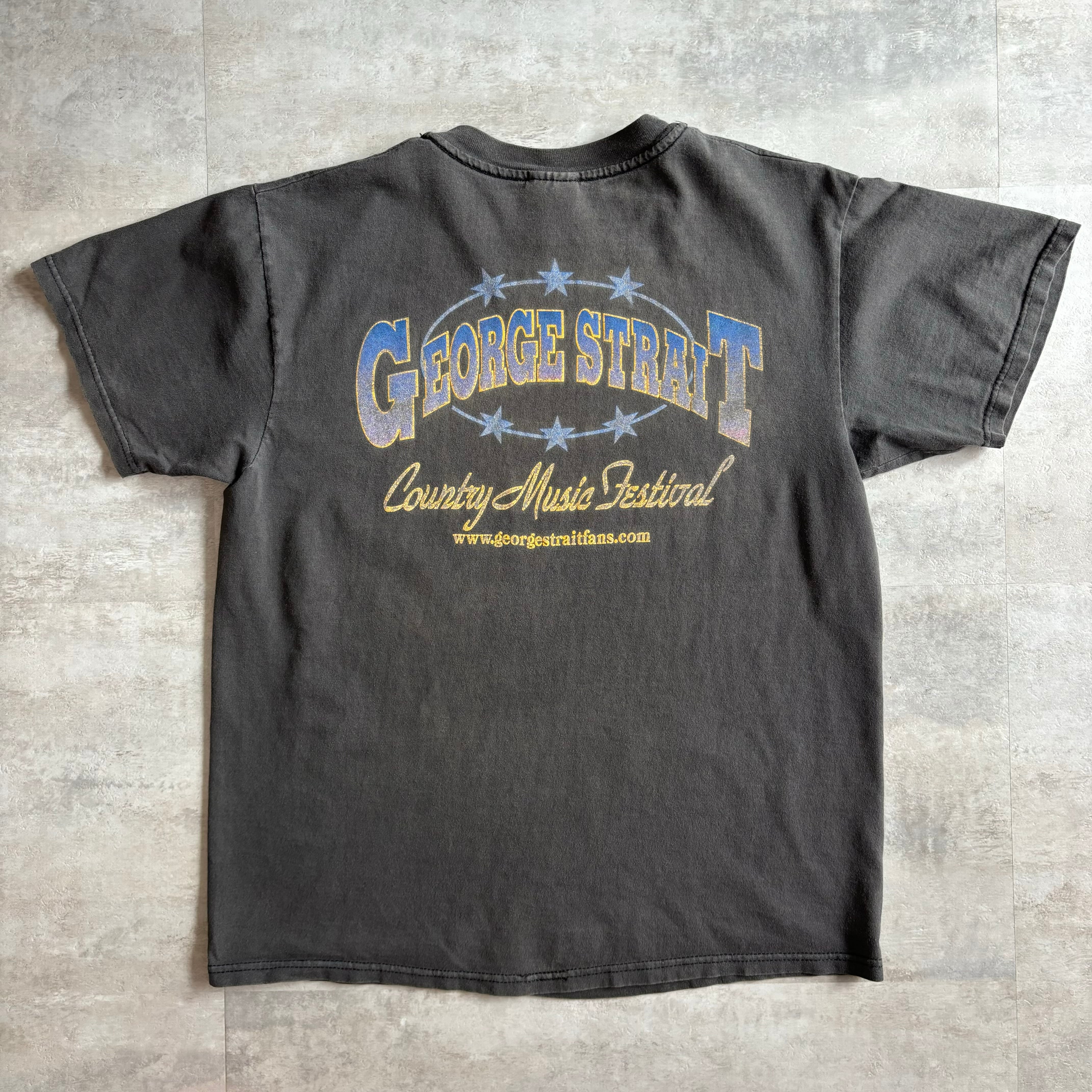 《Mサイズ》HANES GEORGE STRAIT USA製 バンド Tシャツ フェード ブラック no.3013