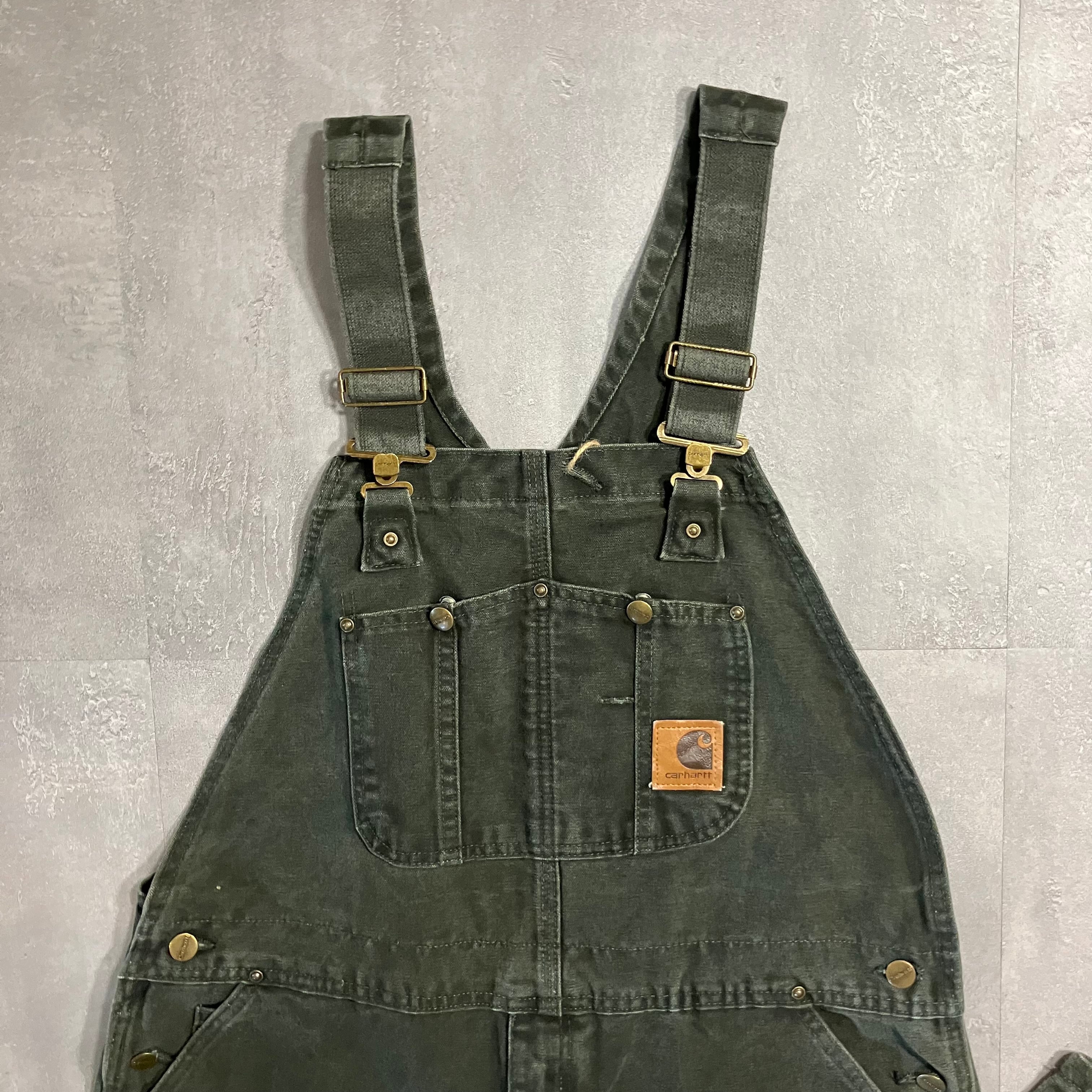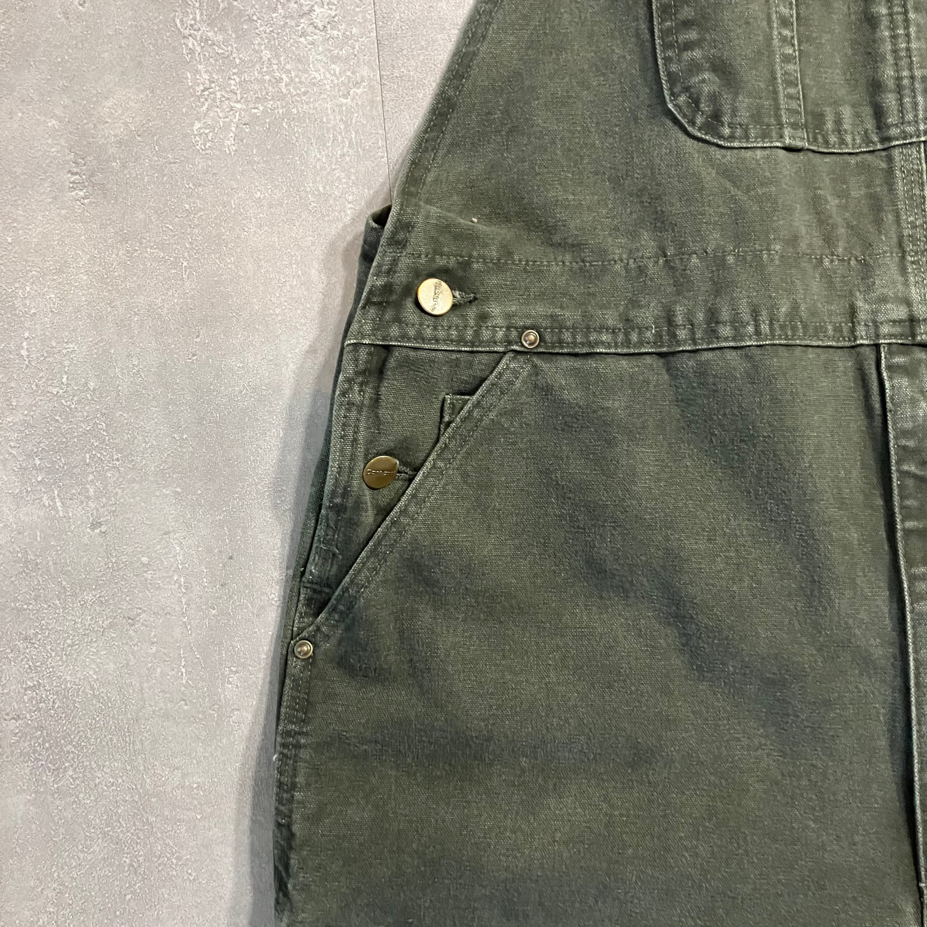 《実寸w40l29》Carhartt カーハート オーバーオール モスグリーン ダック No.3672