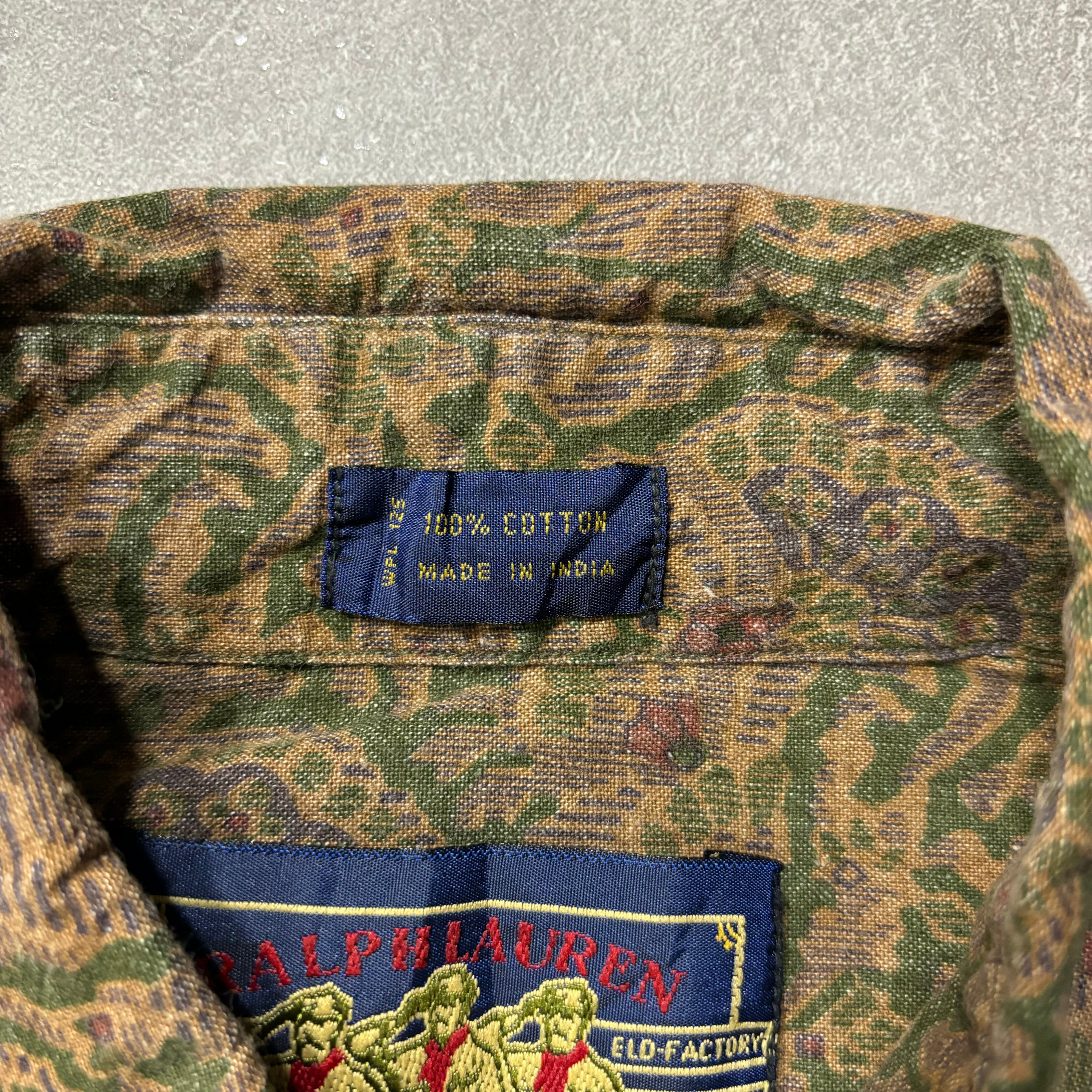 《M》Ralph Lauren CHAPS ラルフローレン チャップス 総柄 長袖シャツ ワインレッド グリーン no.4031