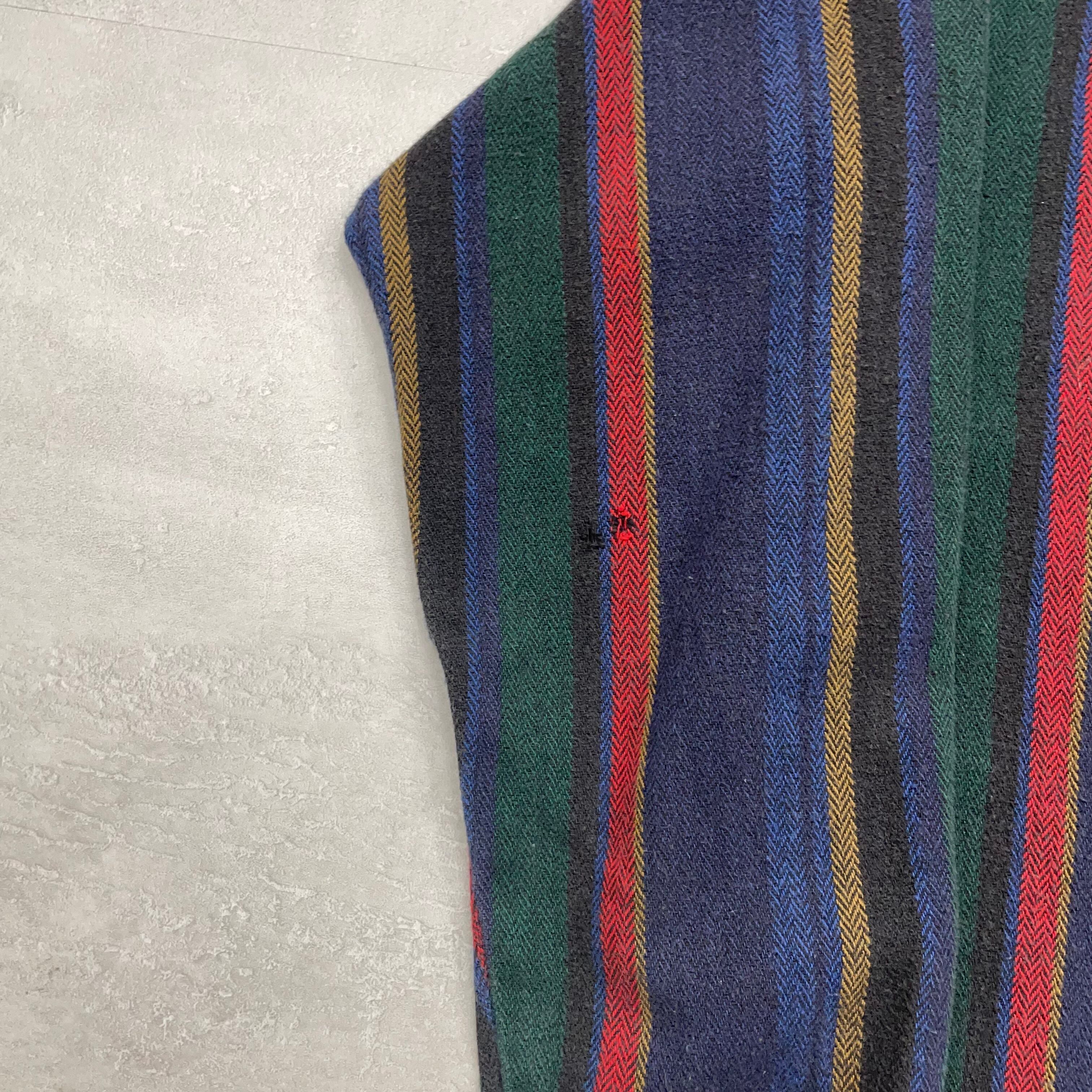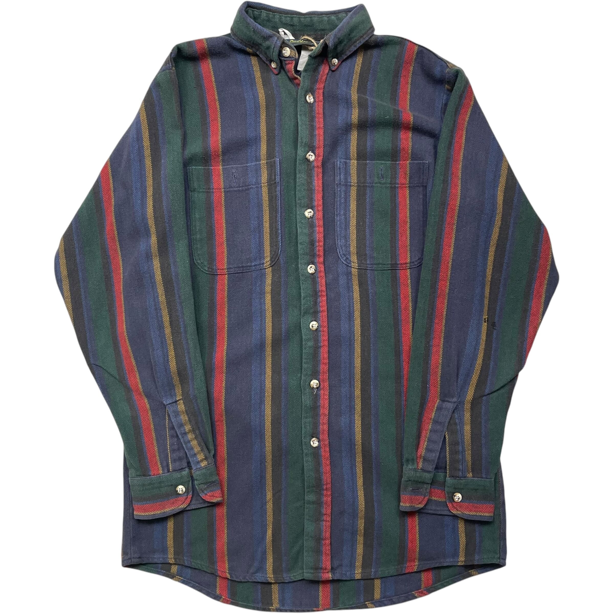 《L》OSH KOSH オシュ コシュ ヘビーネルシャツ ストライプ 80年代 no.5202
