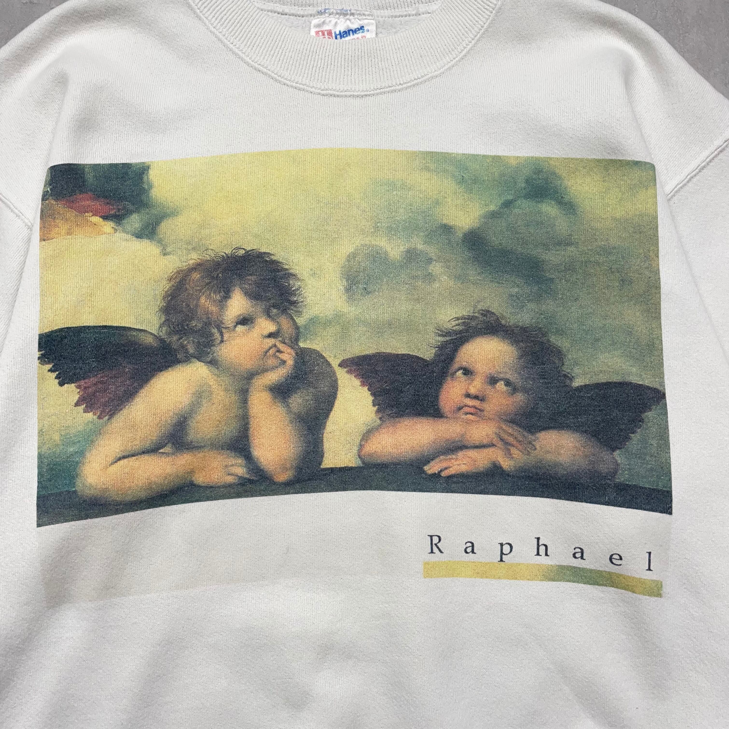 《M》 Hanes ヘインズ スウェット ラファエル 天使 プリント ホワイト USA製 90年代 vintage no.5320